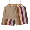 Camiseta básica europea y americana de cuello redondo pequeño con forro polar de manga larga para mujer, nueva primavera 2024, de color sólido, ajustada y adelgazante.