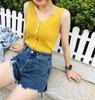 Camisola de verano para mujer, de punto, con escote en V, espalda descubierta y botones, de seda helada, ajustada, para uso exterior