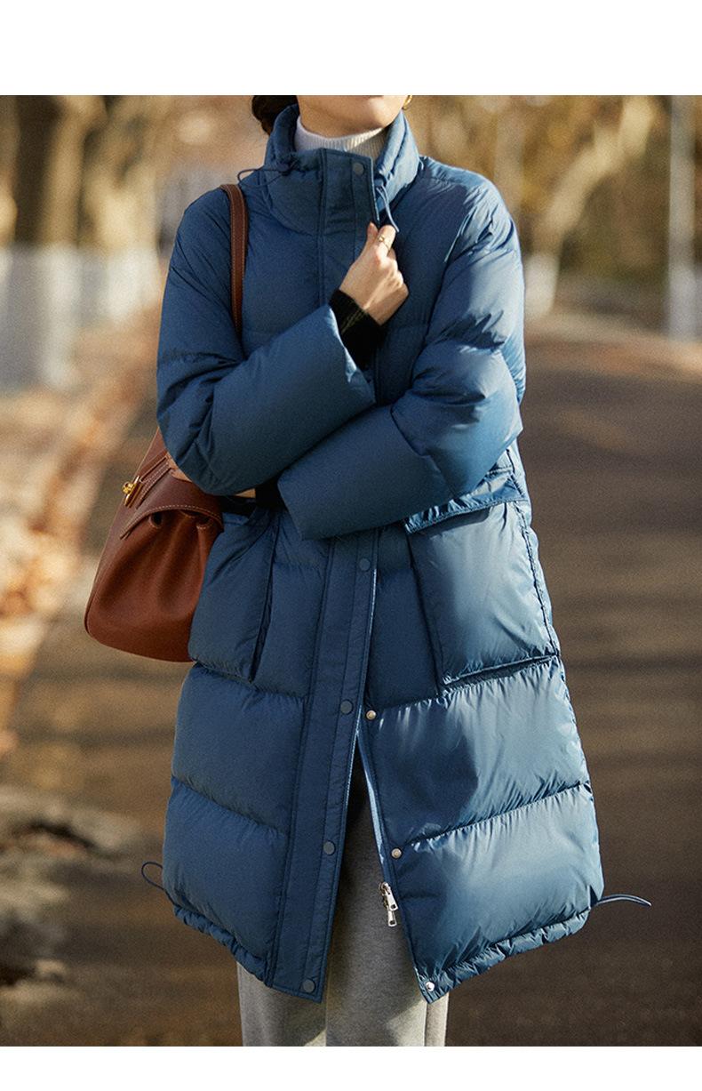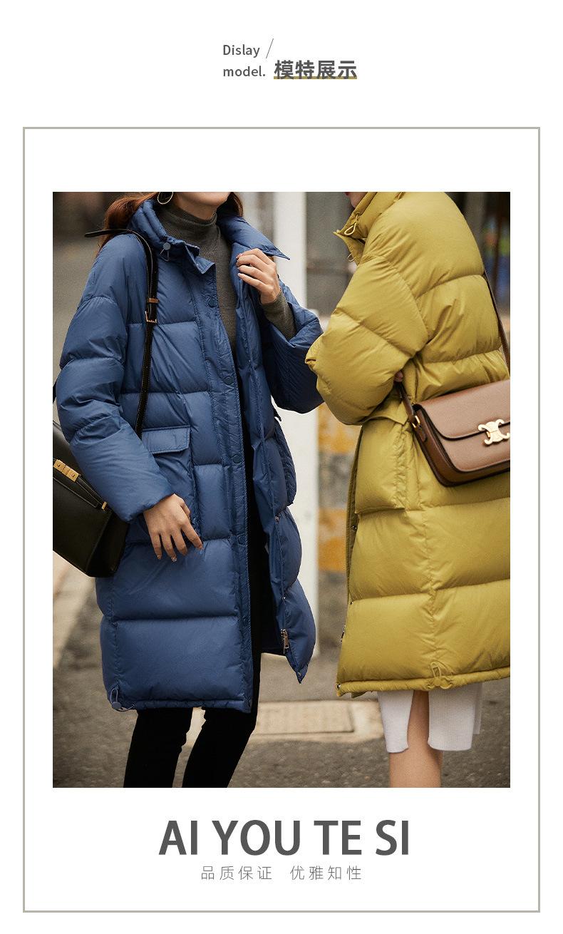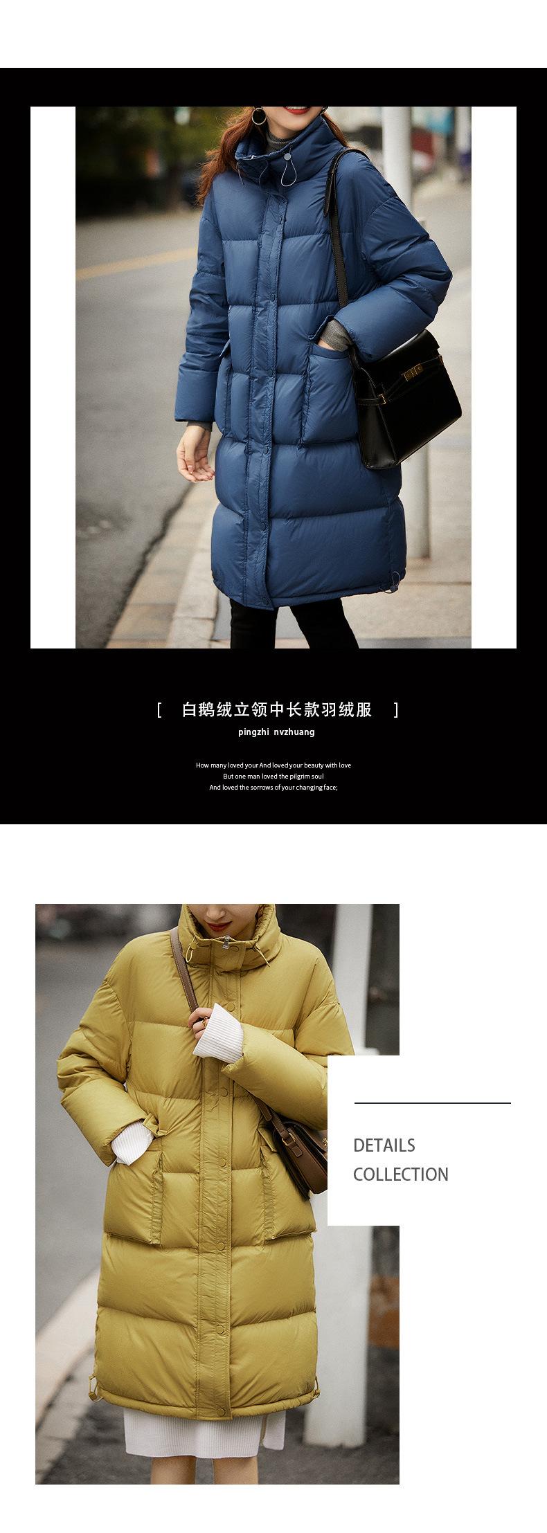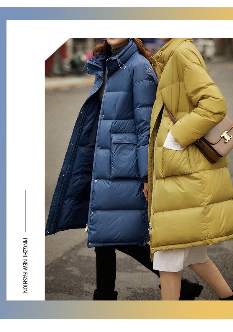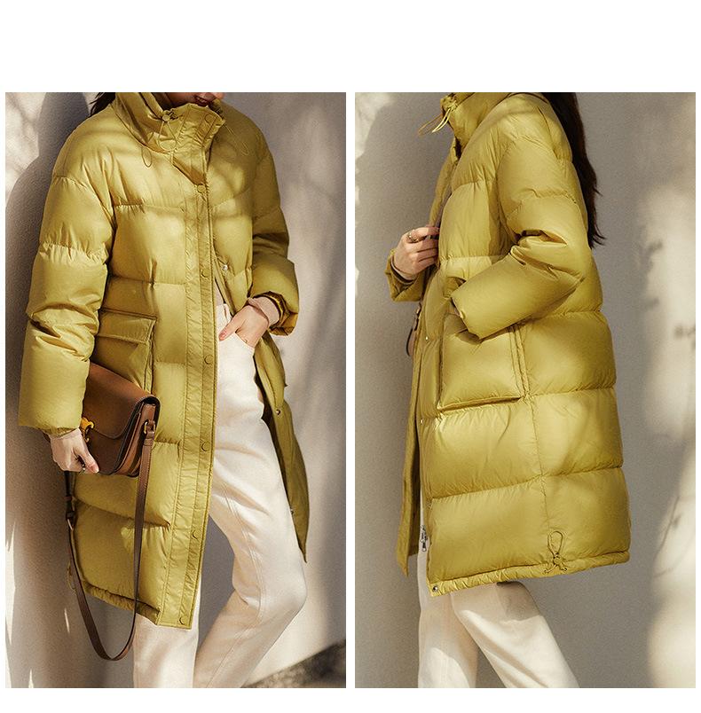 Chaqueta de plumón de ganso ligera y suave de alta gama, cuello de plumón de ganso blanco 90, chaqueta de plumón de trabajo de longitud media, chaqueta de invierno para mujer Pinghu