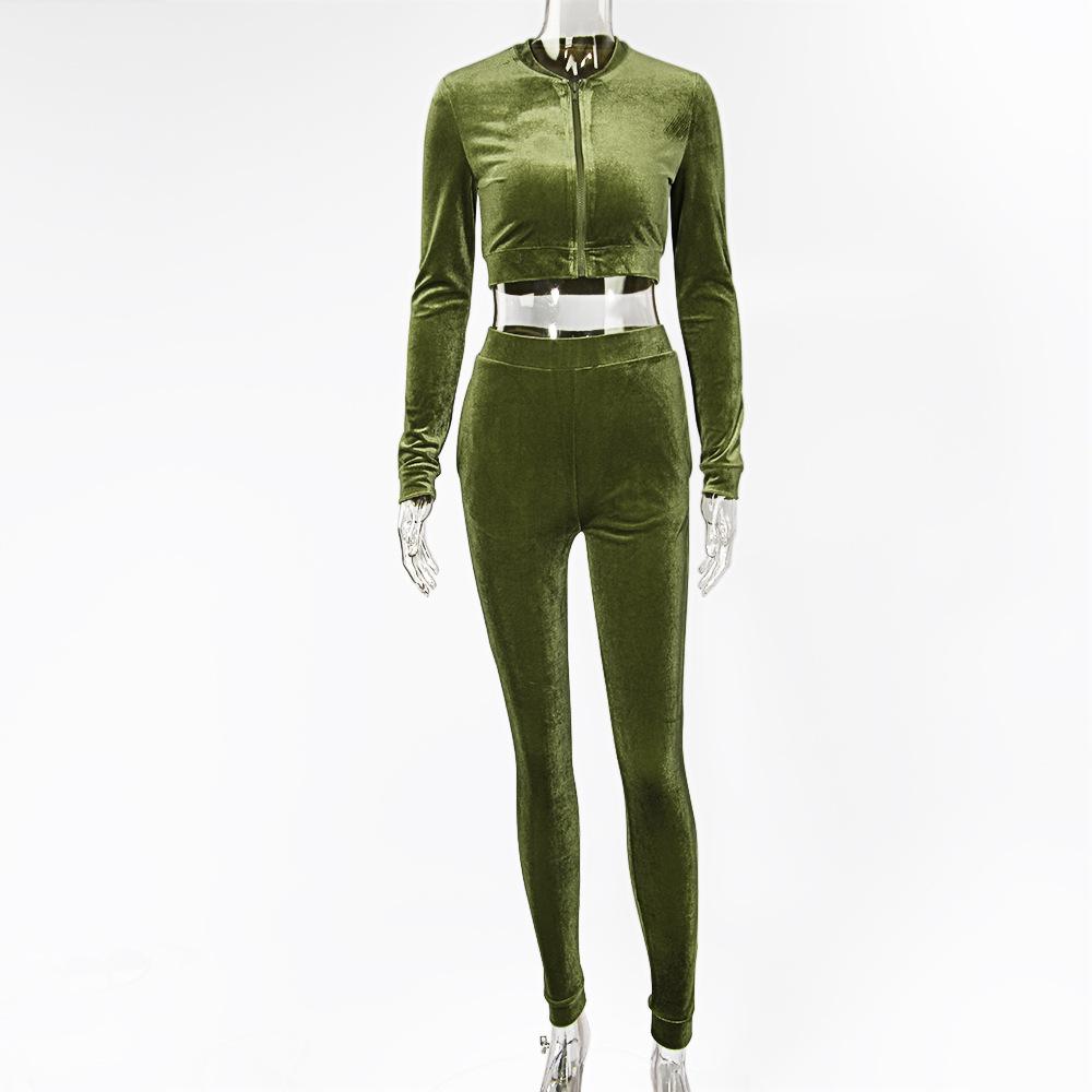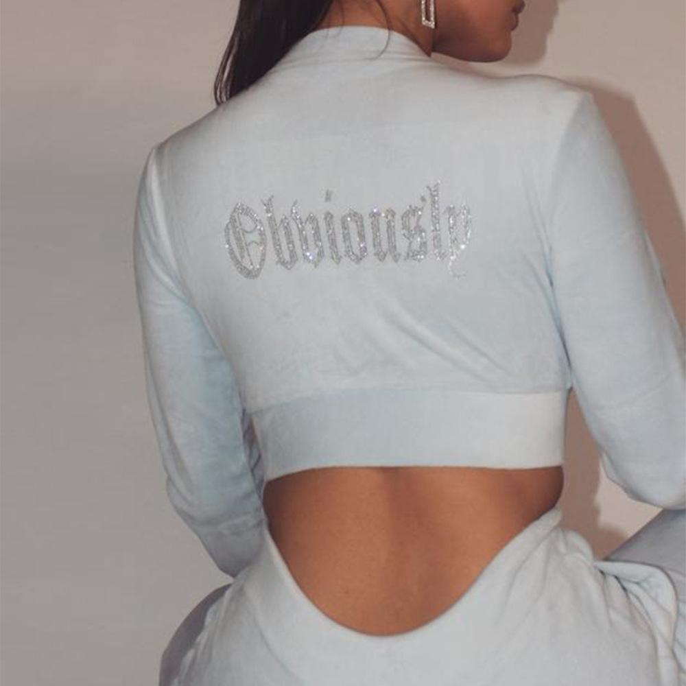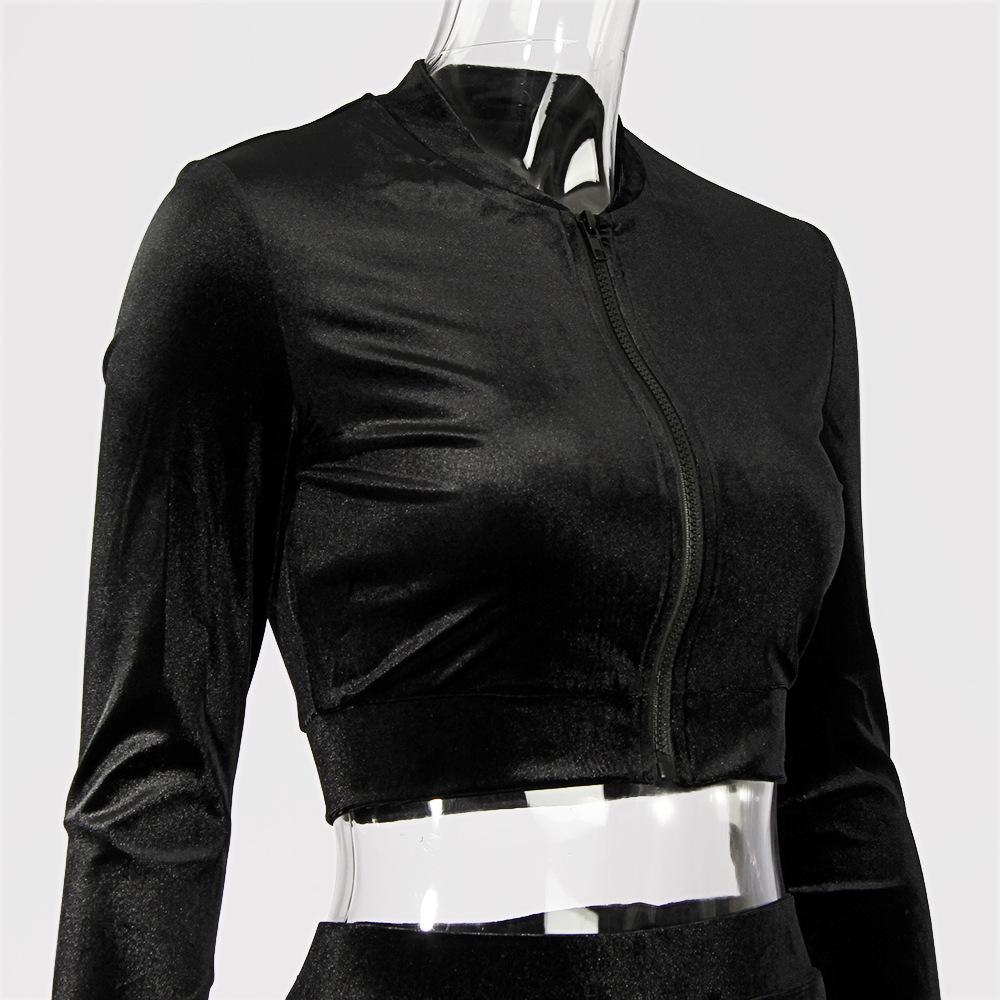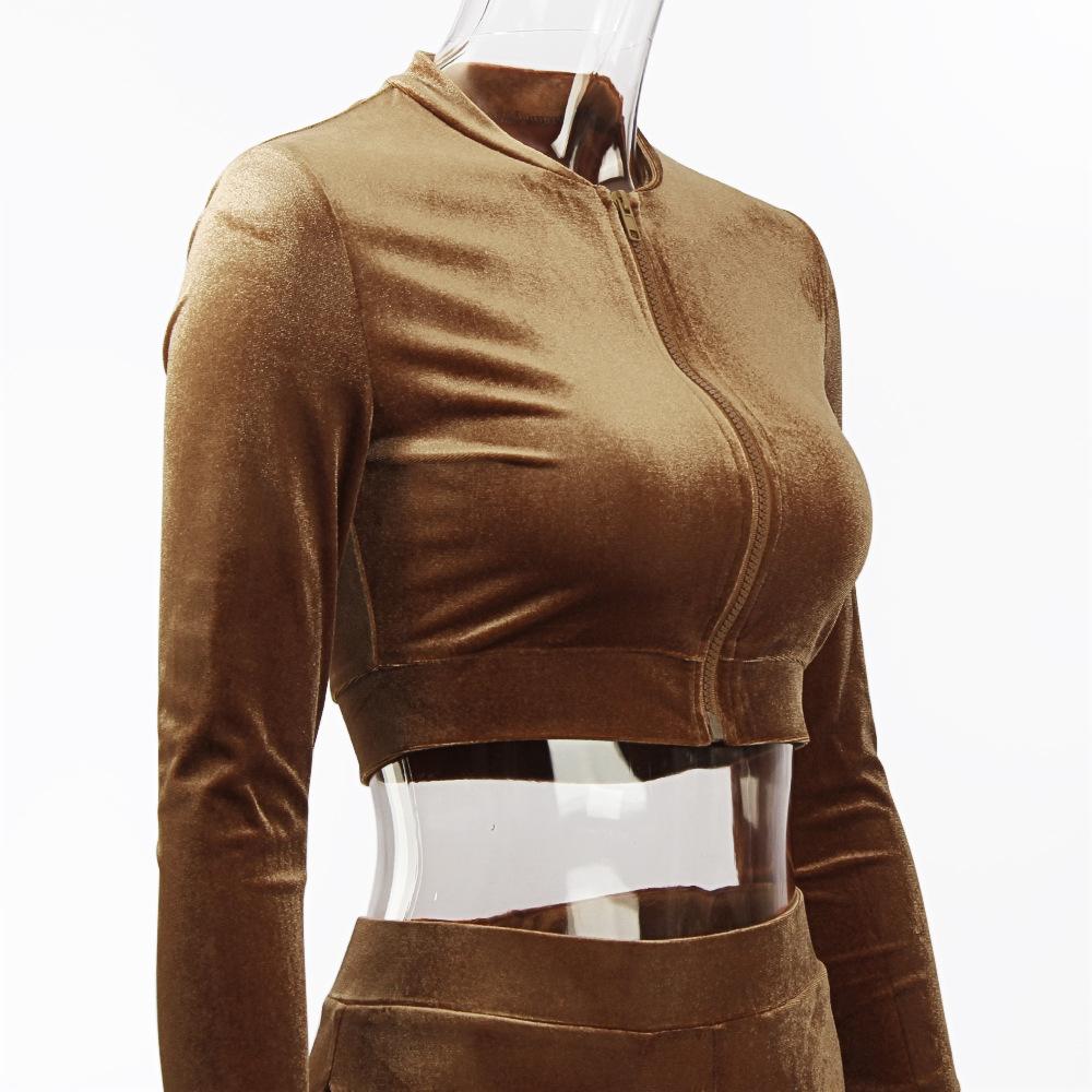 Suéter sexy de dos piezas con perforación en caliente para deportes de otoño e invierno para mujer, estilo europeo y americano, de terciopelo dorado, para comercio exterior