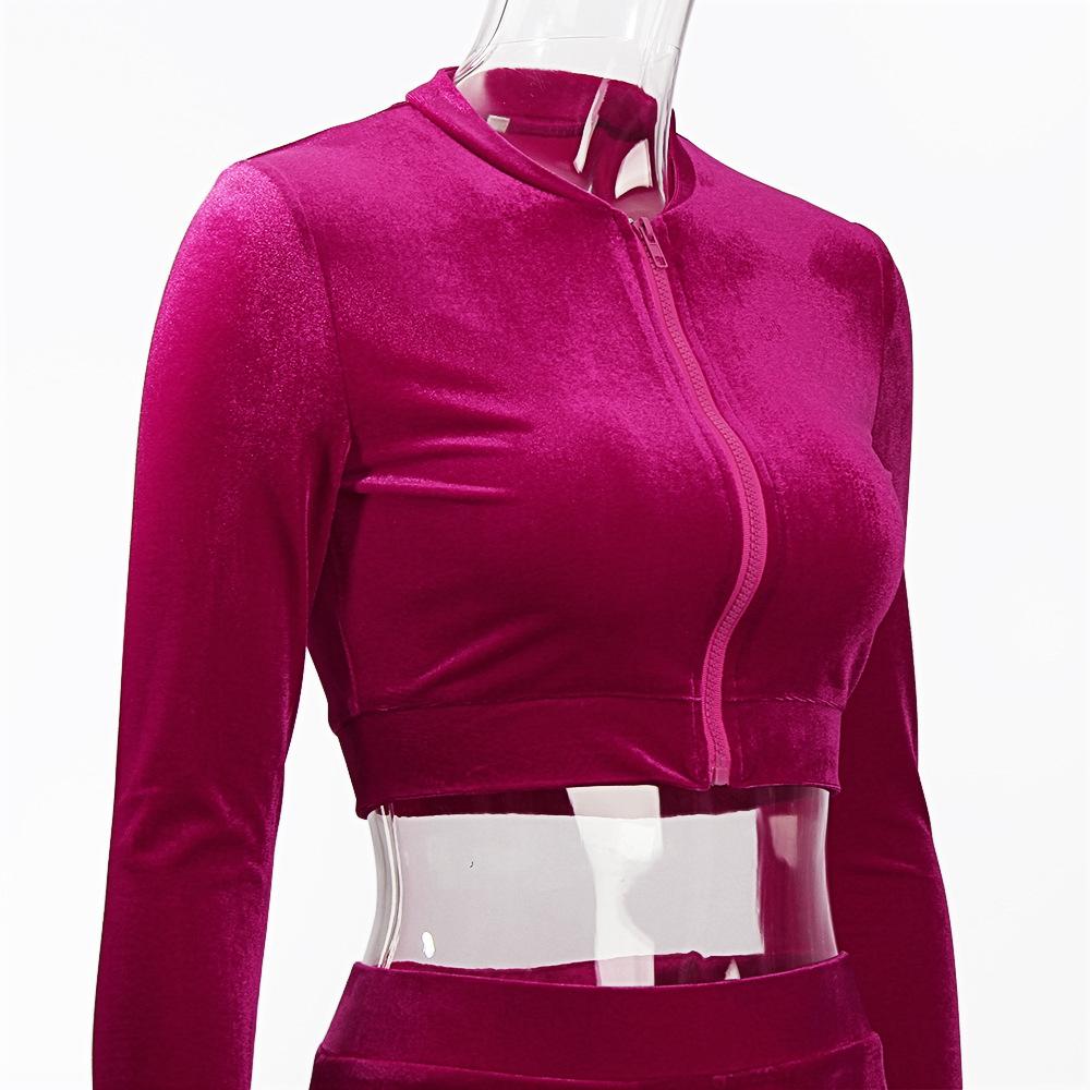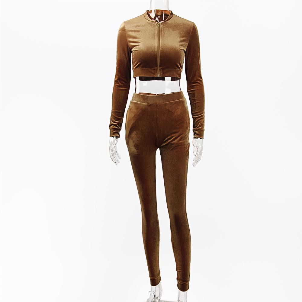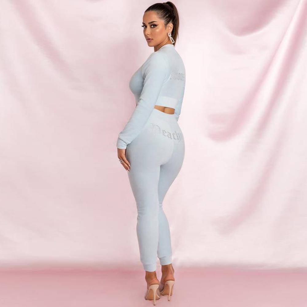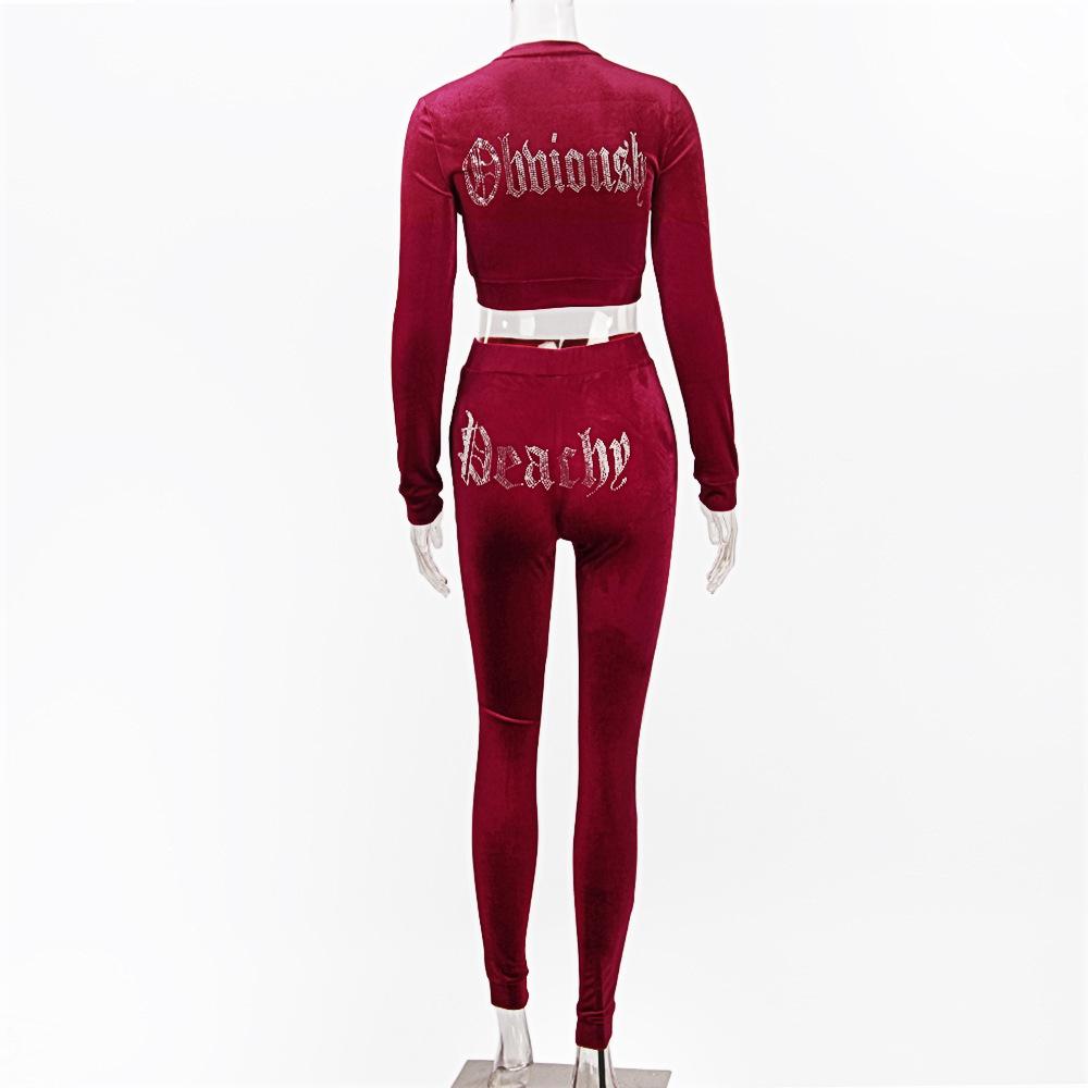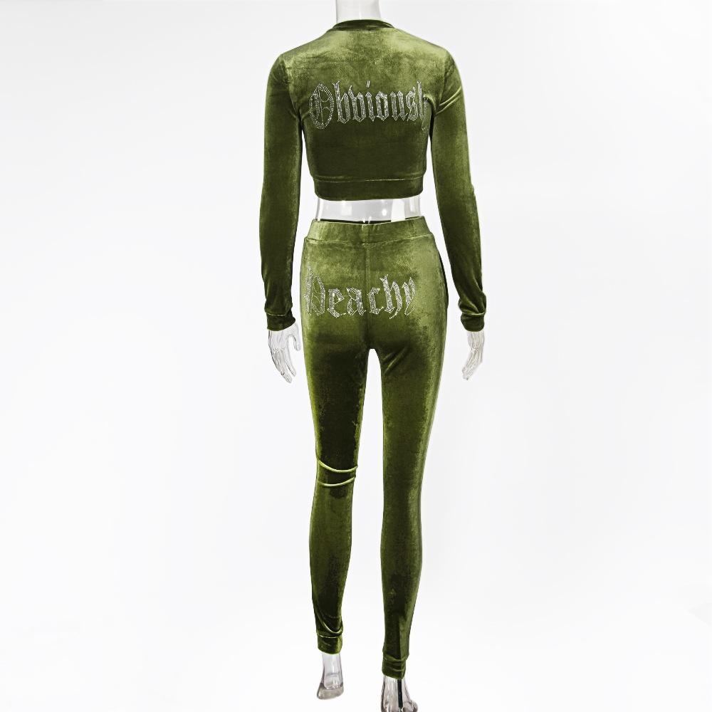 Suéter sexy de dos piezas con perforación en caliente para deportes de otoño e invierno para mujer, estilo europeo y americano, de terciopelo dorado, para comercio exterior