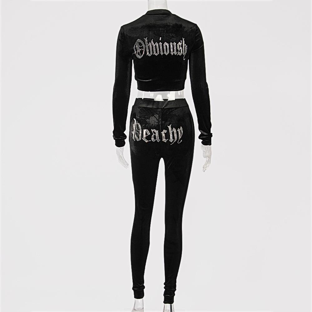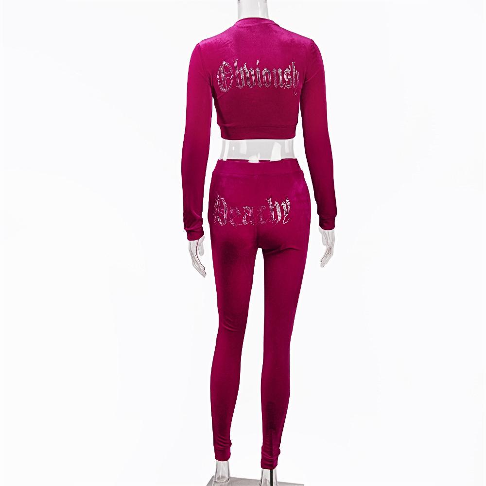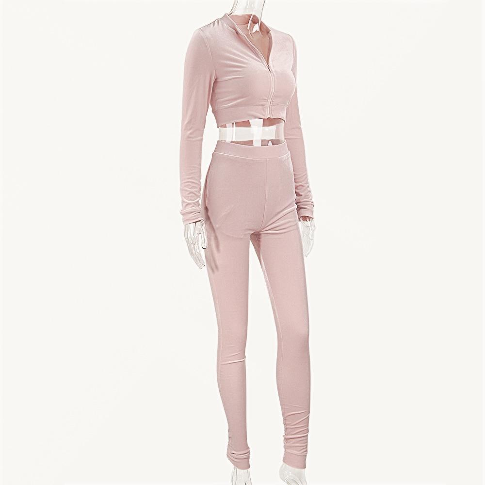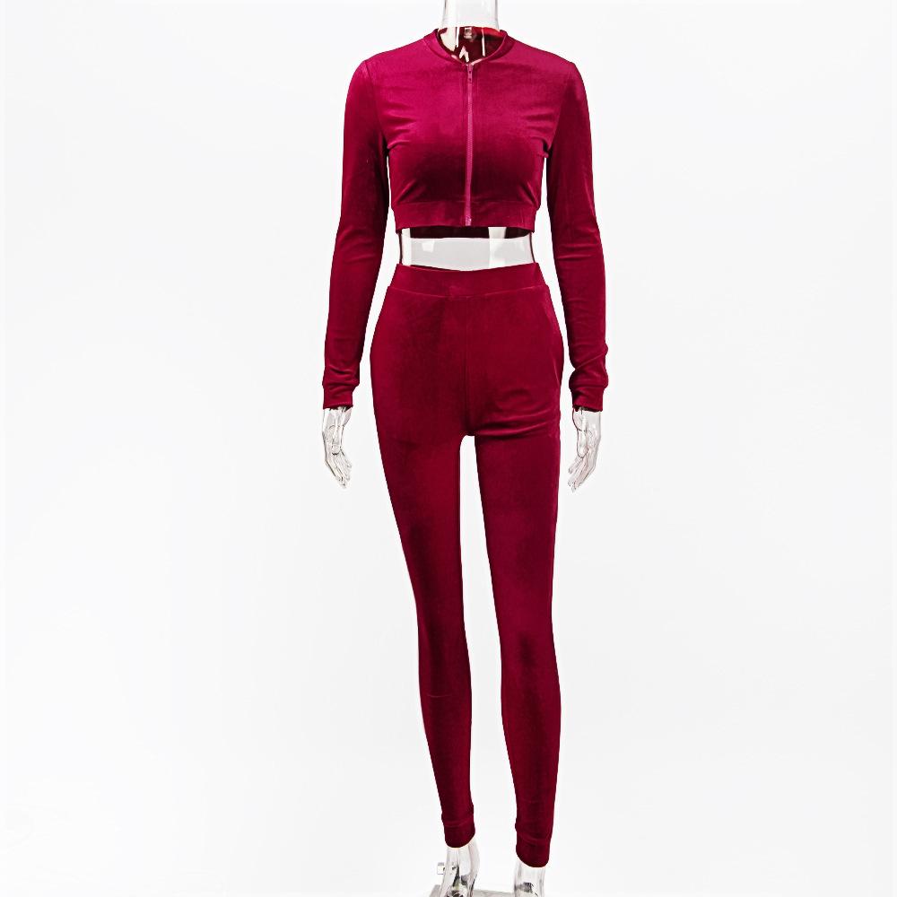 Suéter sexy de dos piezas con perforación en caliente para deportes de otoño e invierno para mujer, estilo europeo y americano, de terciopelo dorado, para comercio exterior