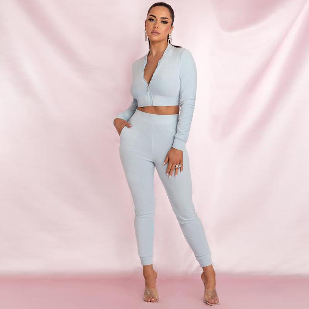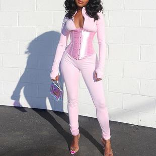 Mono de manga larga para mujer transfronterizo de alta calidad, pantalón corsé ajustado, traje de dos piezas moderno y sexy, traje europeo y americano