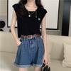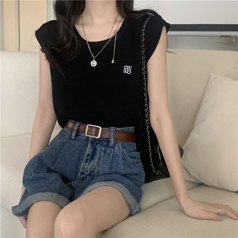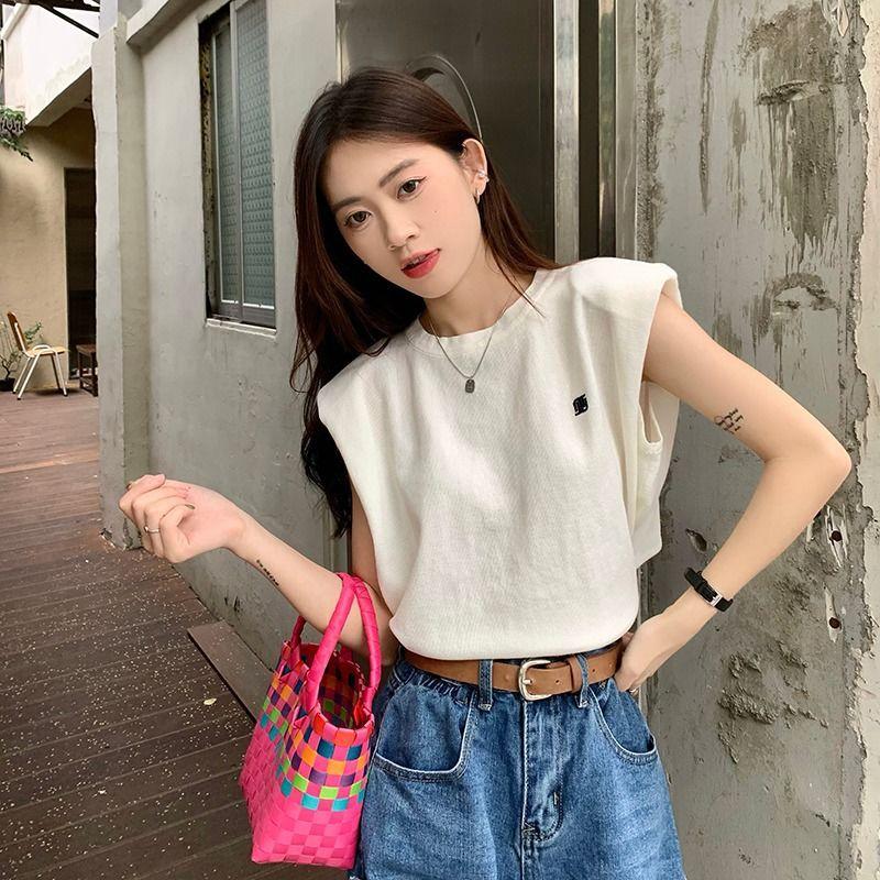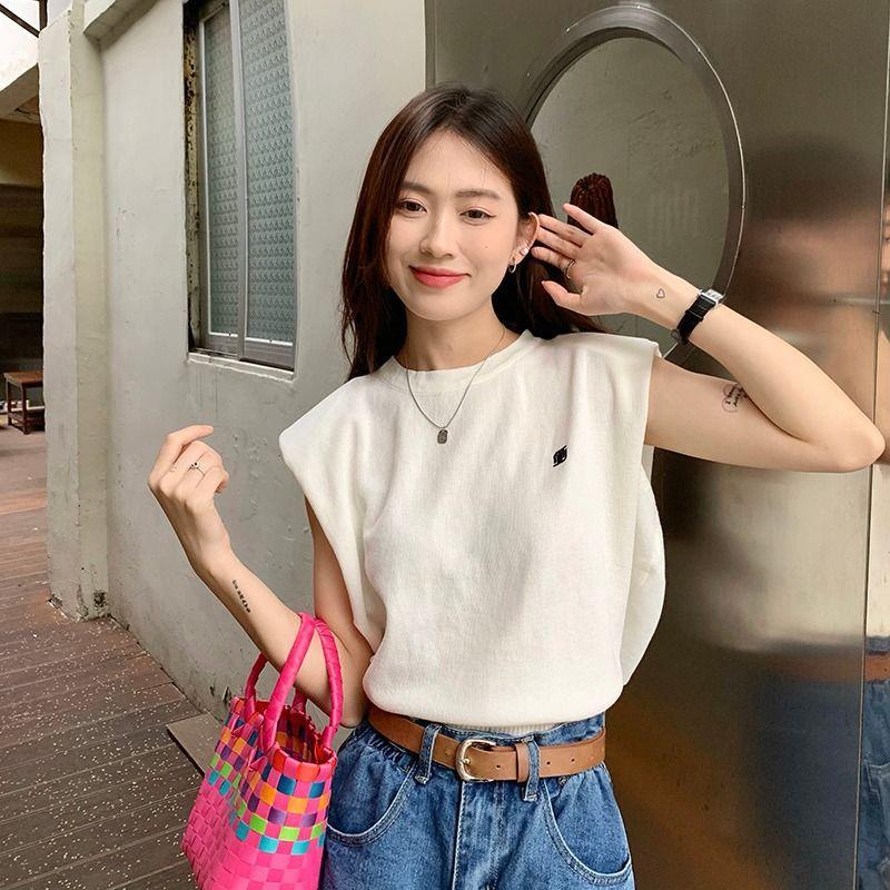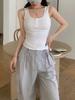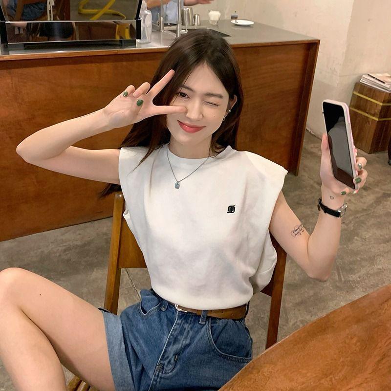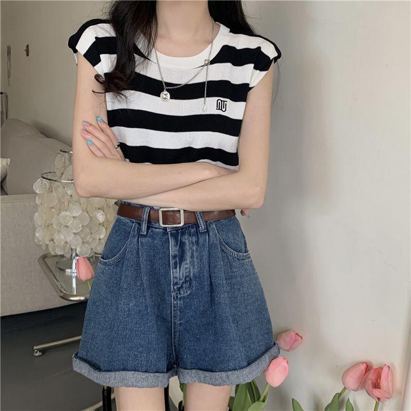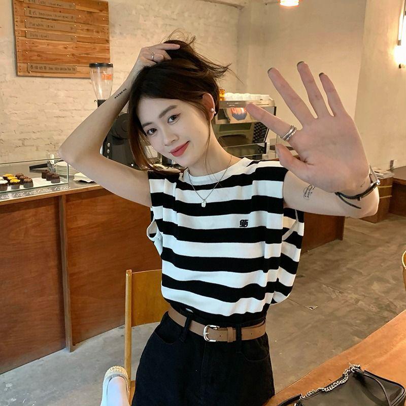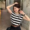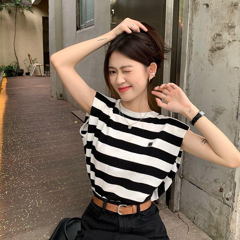 Camiseta sin mangas de rayas blancas y negras para mujer, diseño moderno de verano, estilo informal, holgada y con cuello redondo.