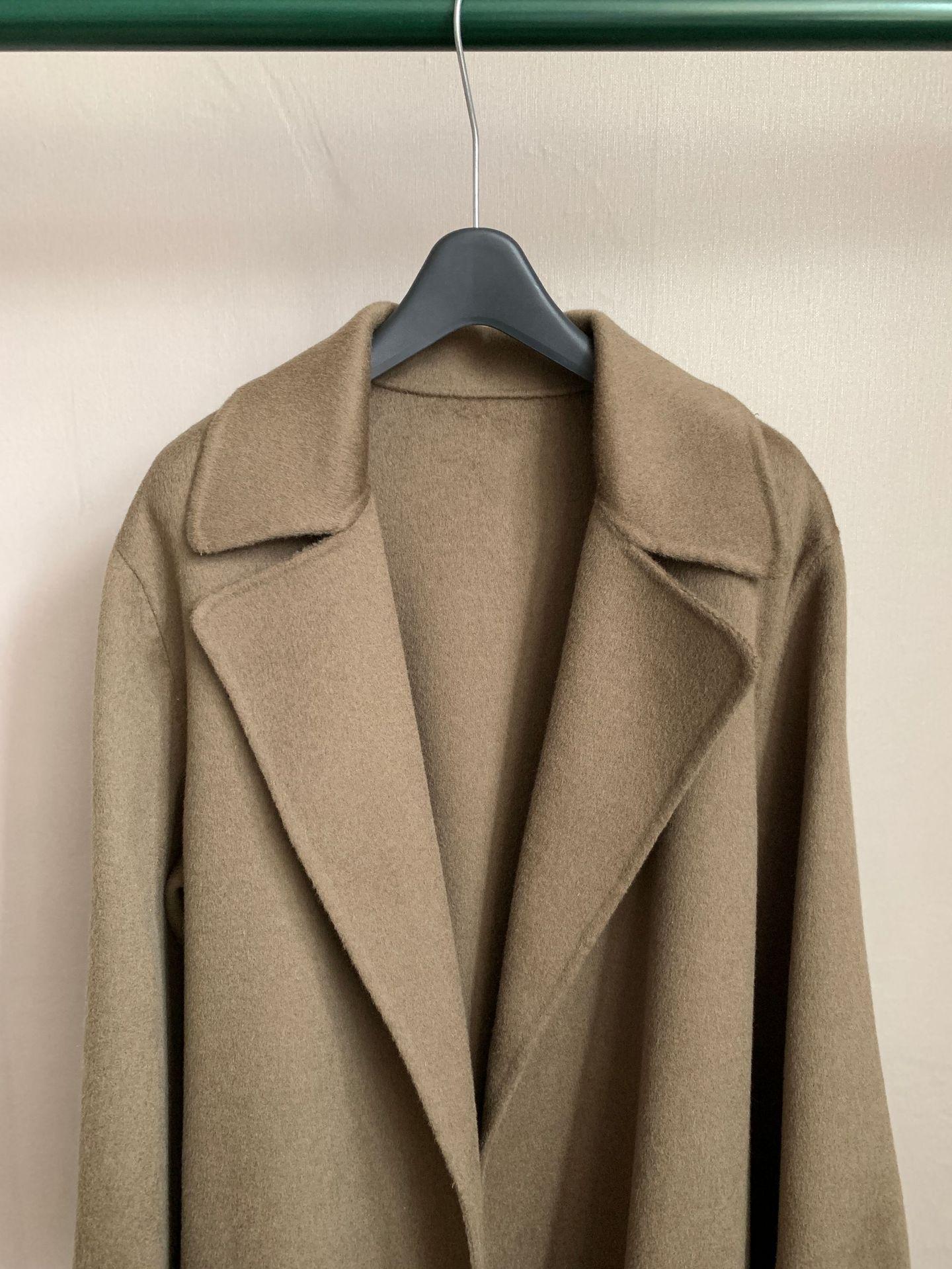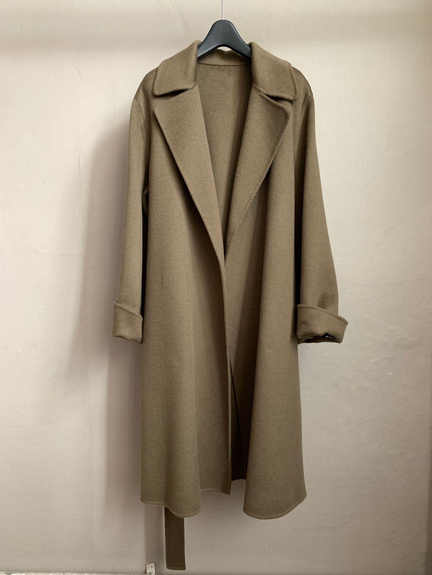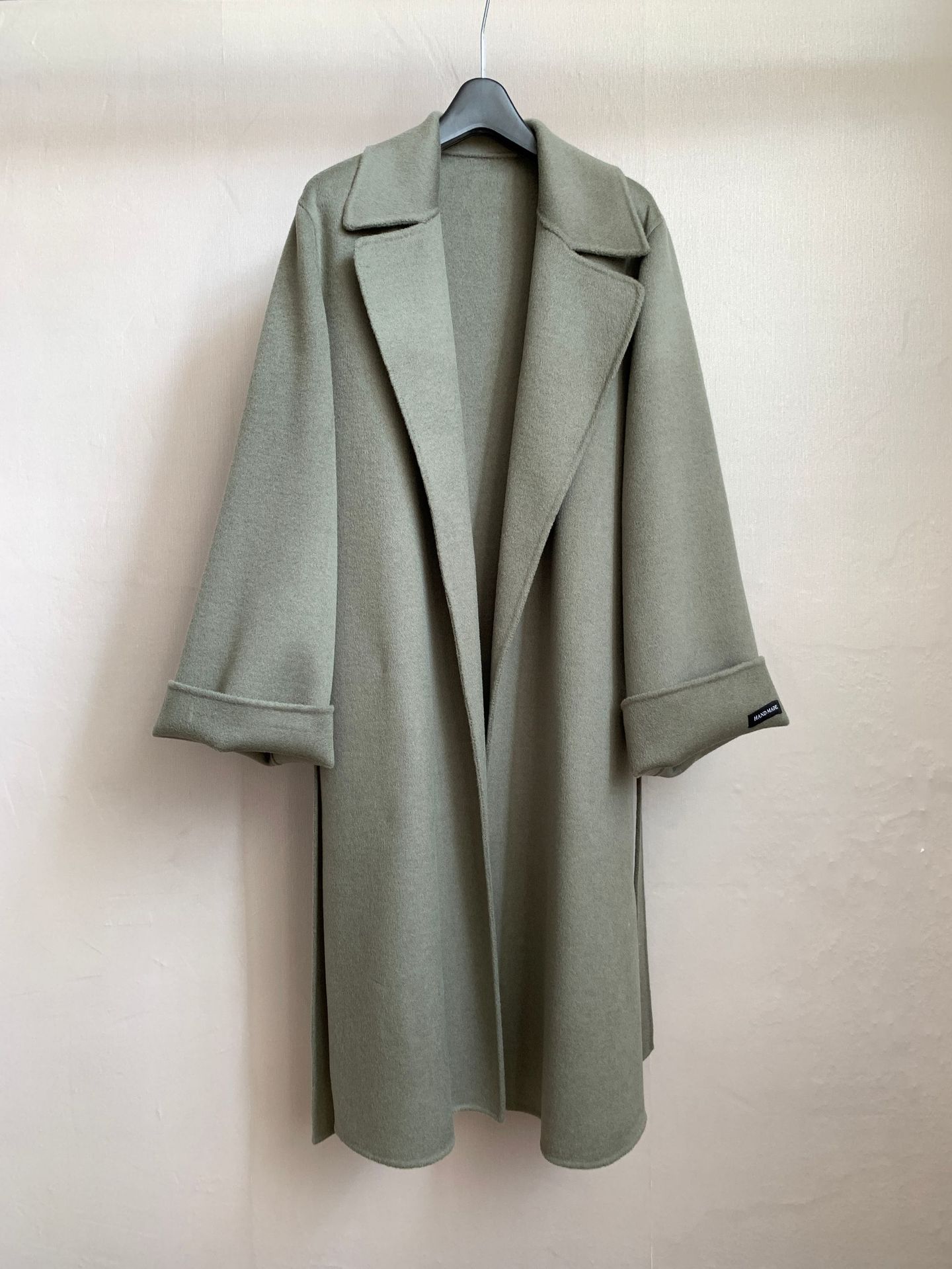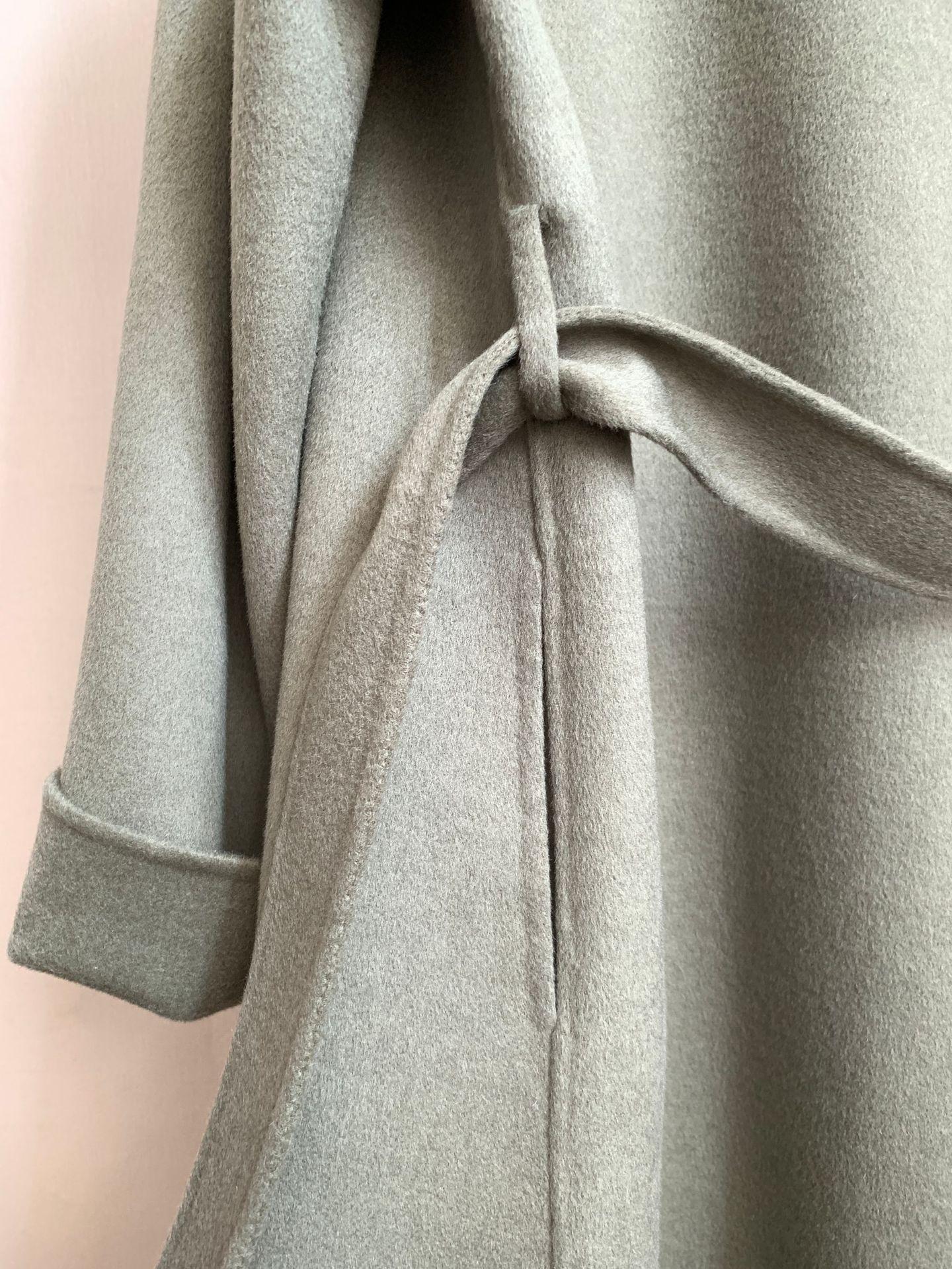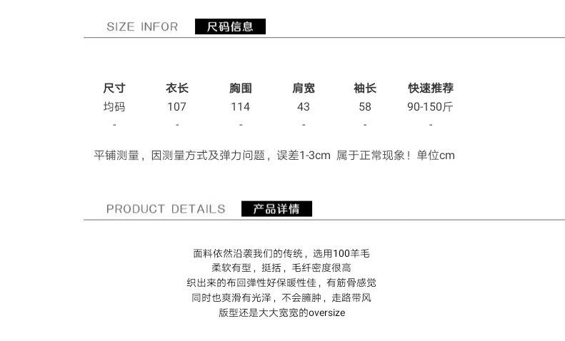 Dalian 25 Otoño e Invierno Largo con Cordones Estilo Coreano Mangas Holgadas Doble Cara Cachemira Lana Chaqueta Exterior para Mujer