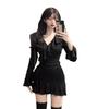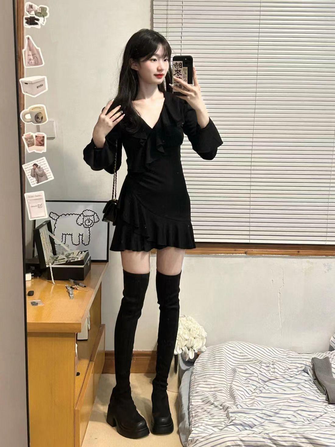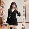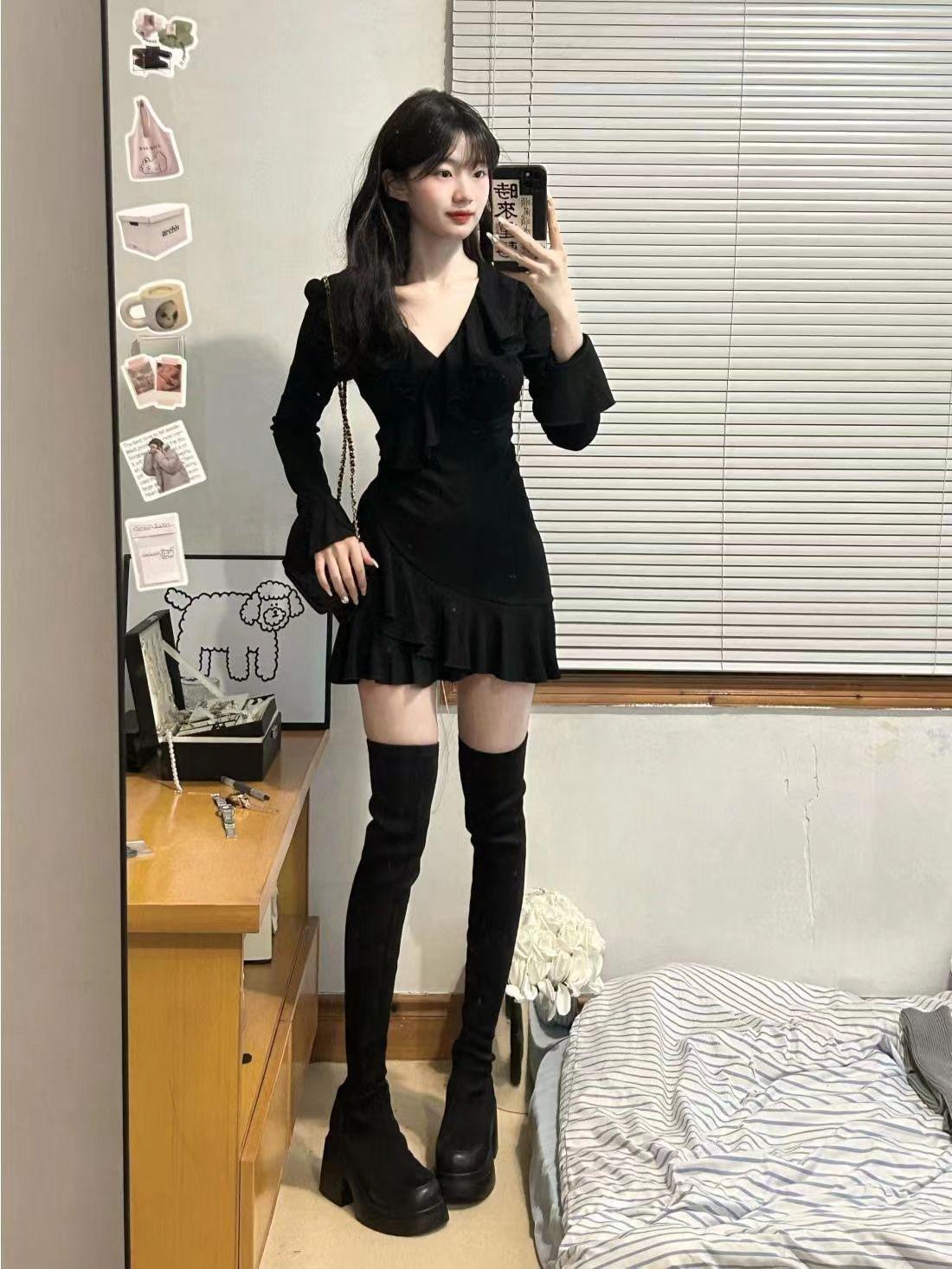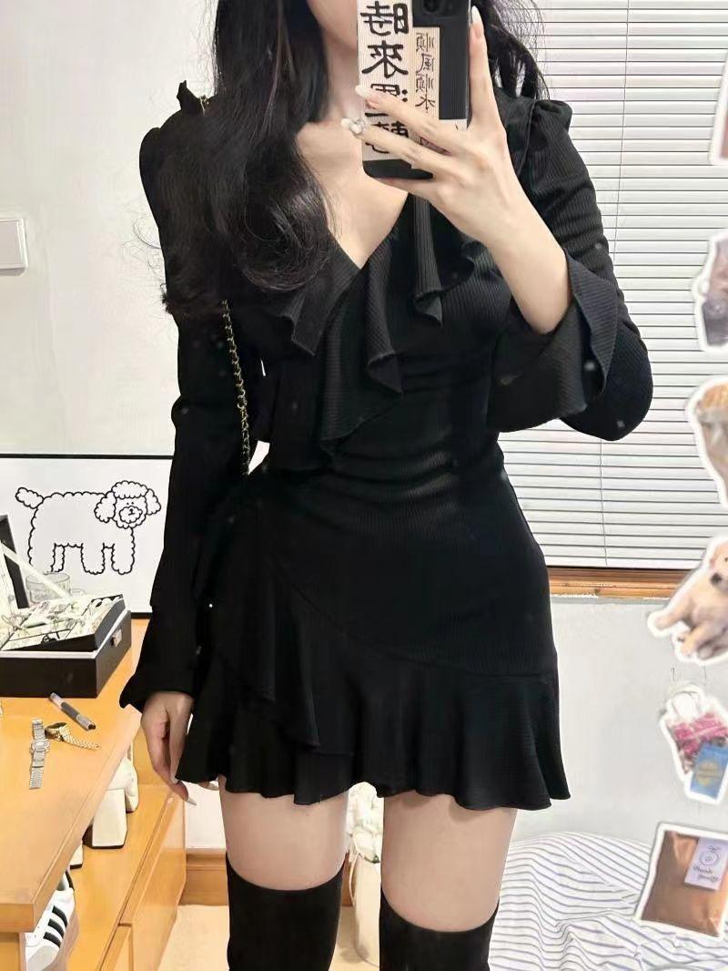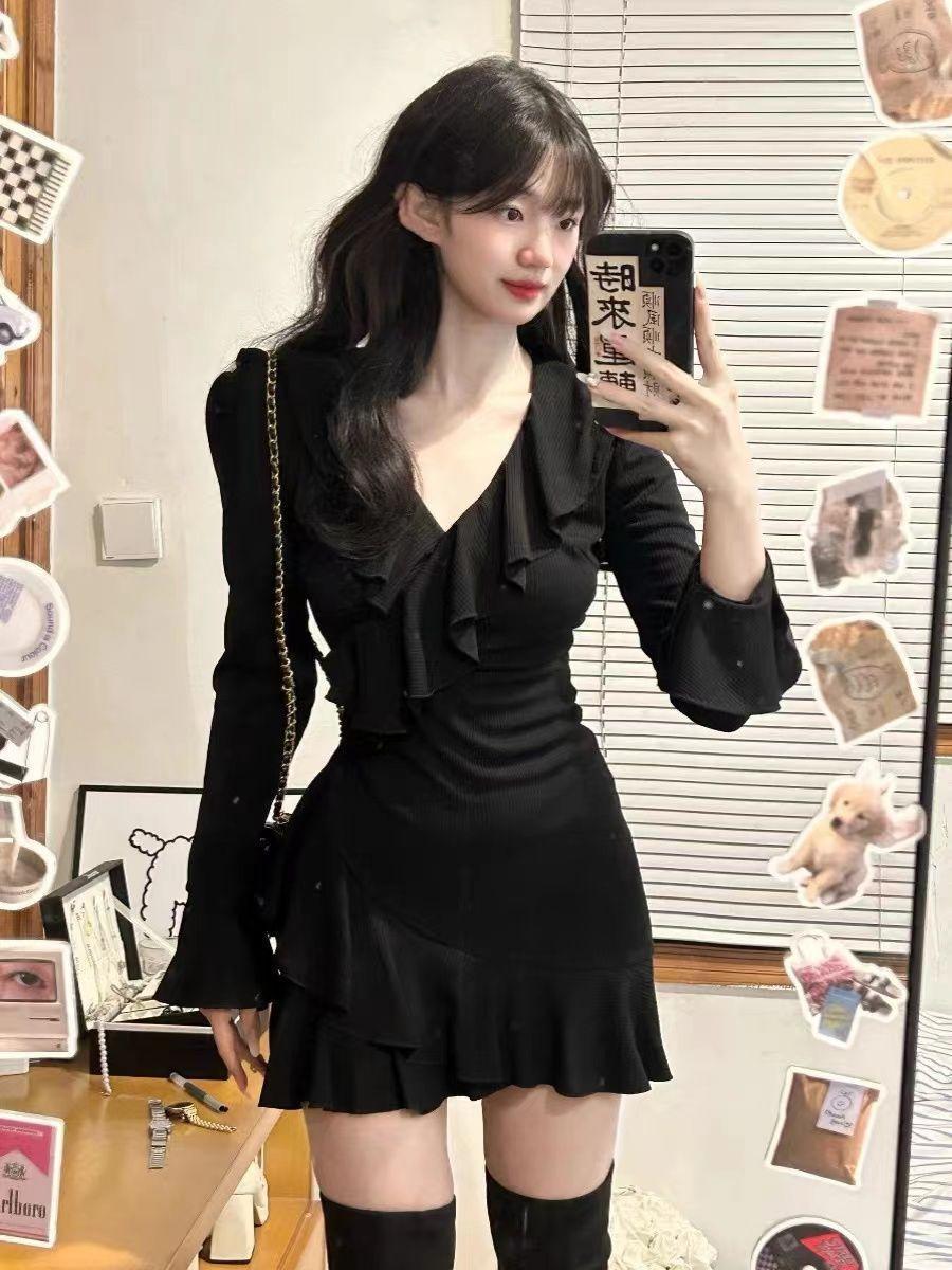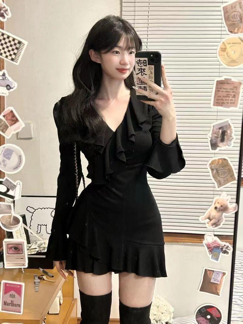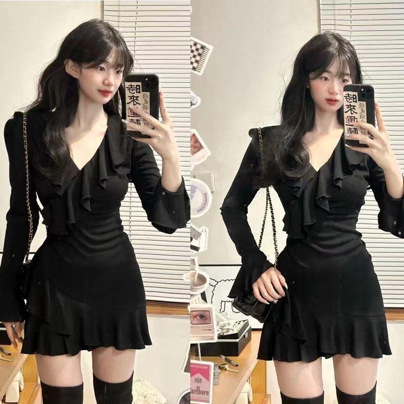 Vestido de chica sexy con escote en V de puro deseo, estilo francés elegante, dulce y picante, ajustado, de primavera y verano, con falda corta ajustada a la cintura