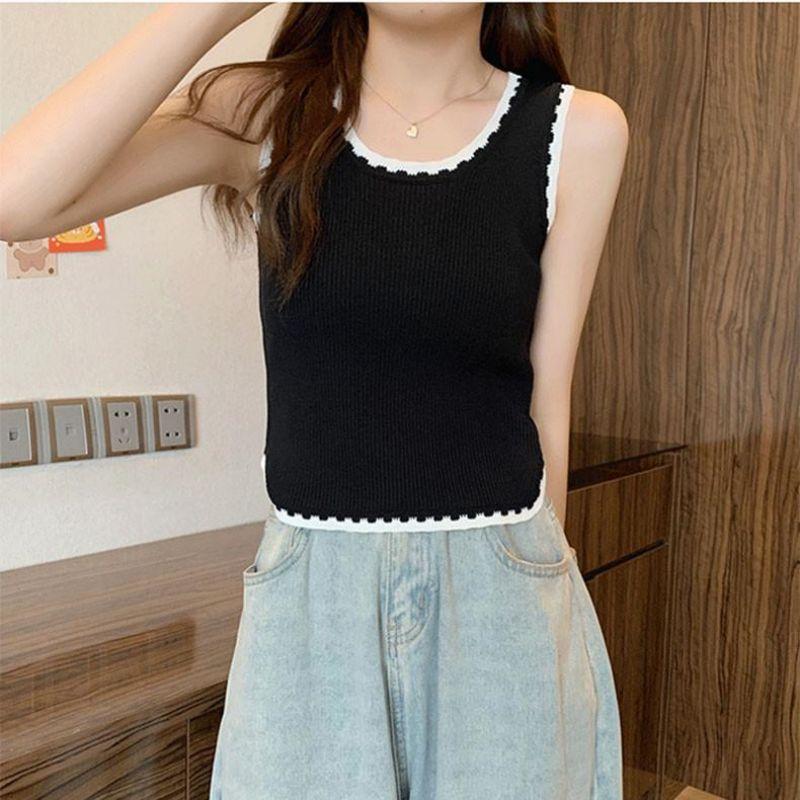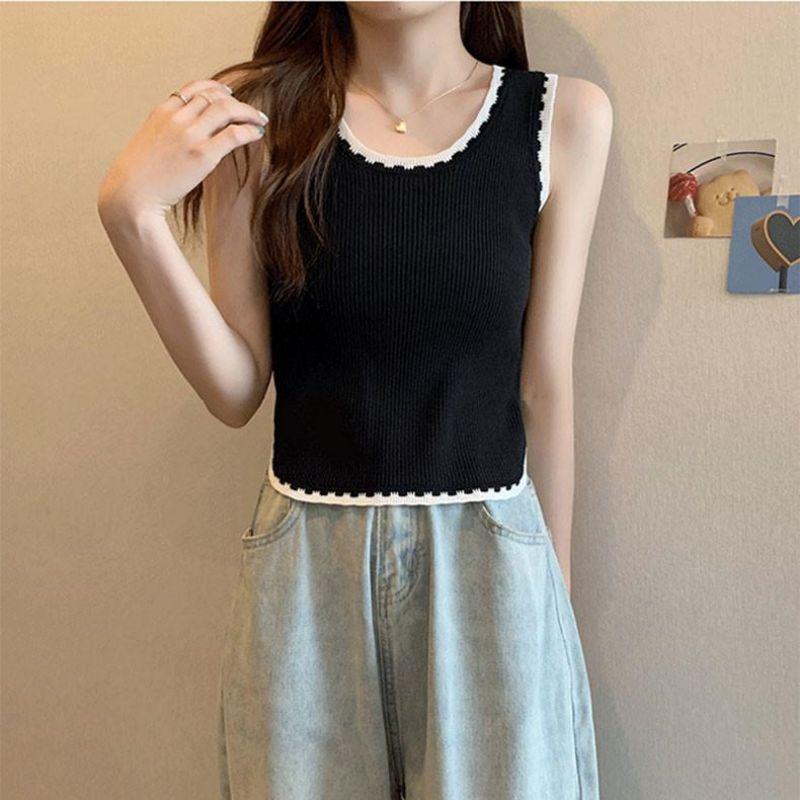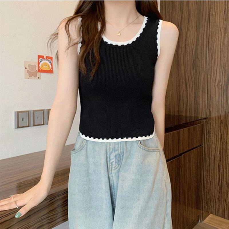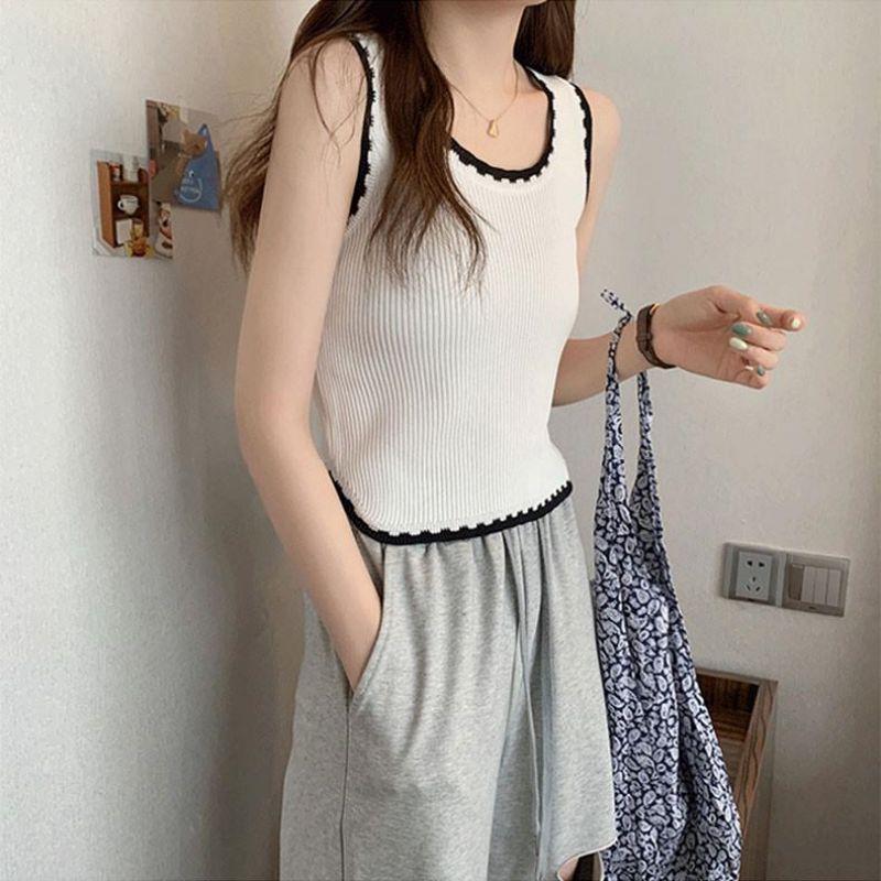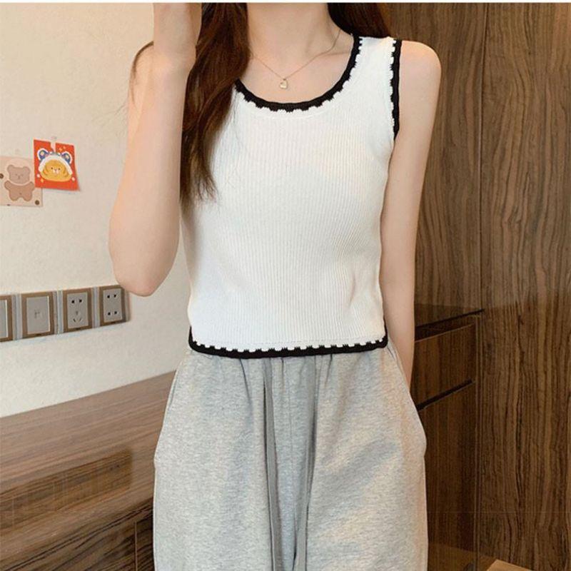 Camisola pequeña de punto elegante para mujer, camisa interior de verano, top dulce y atractivo, pantalones cortos que combinan con todo para mujer