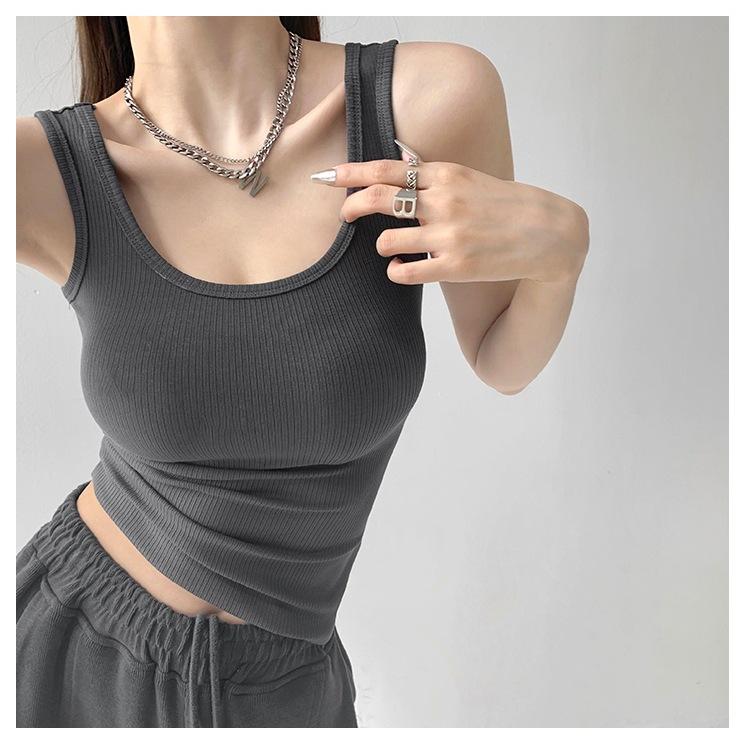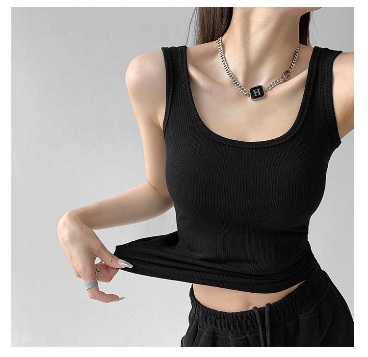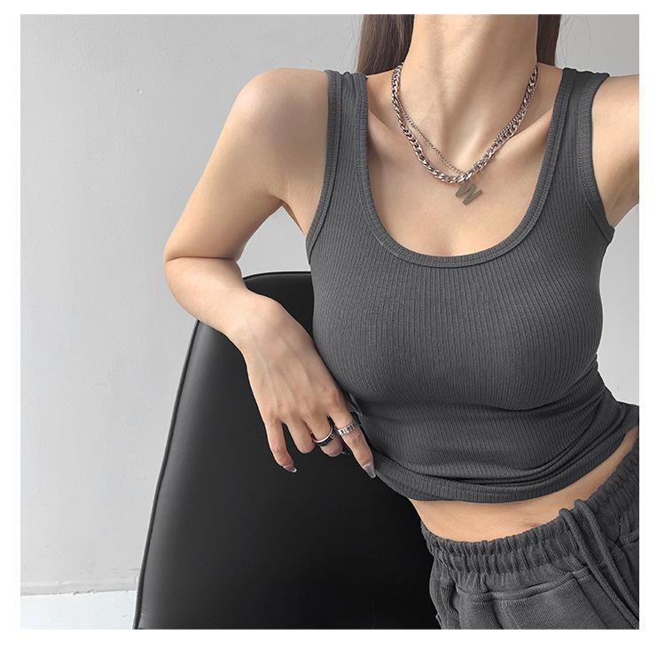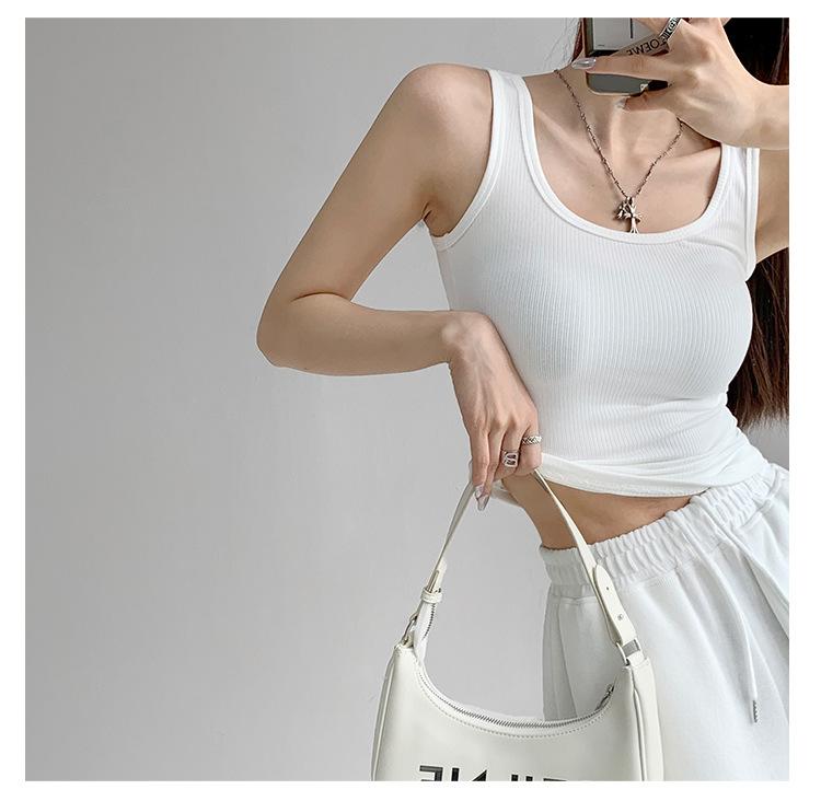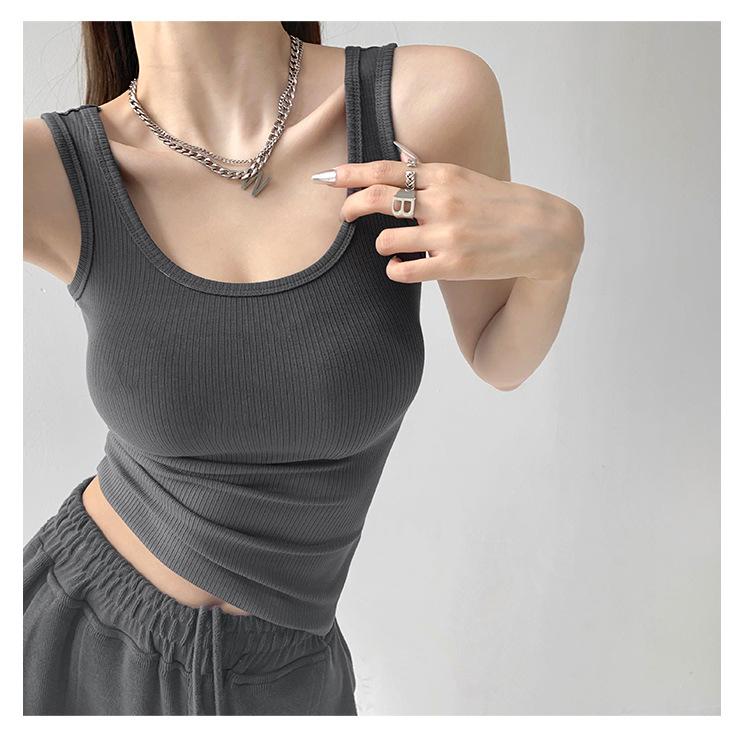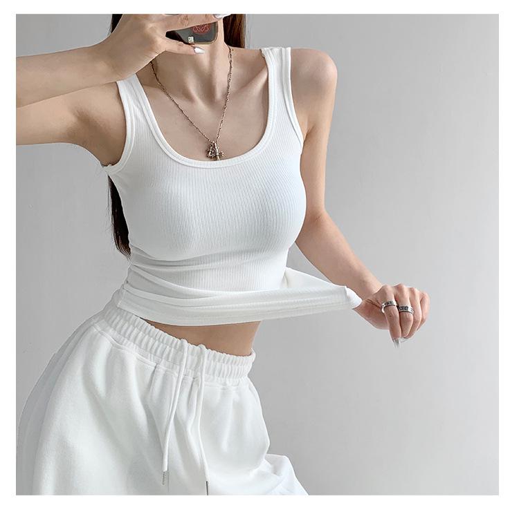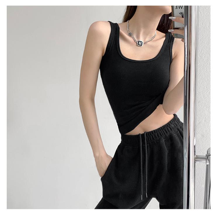 Chaleco deportivo sexy ajustado con cuello en U de algodón de alta elasticidad para mujer, prenda exterior de verano, top sin mangas ajustado estilo Spice Girl