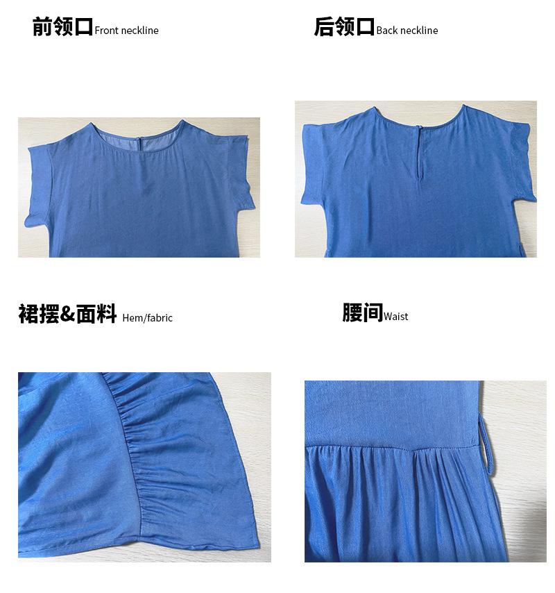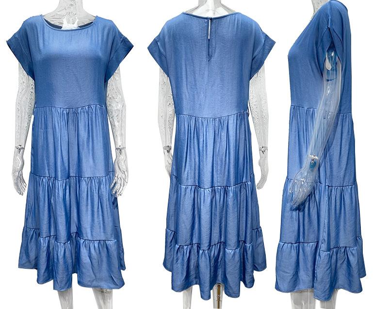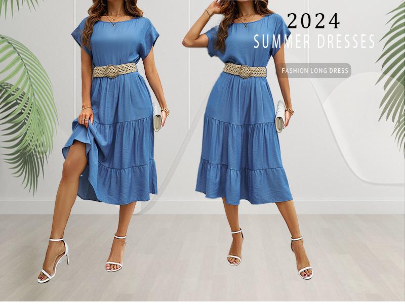 Compra Moda casual de verano europea y americana transfronteriza, color sólido, simple, cuello redondo, manga corta, vestido midi para mujer sin cinturón al por mayor en Joom.pro
