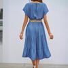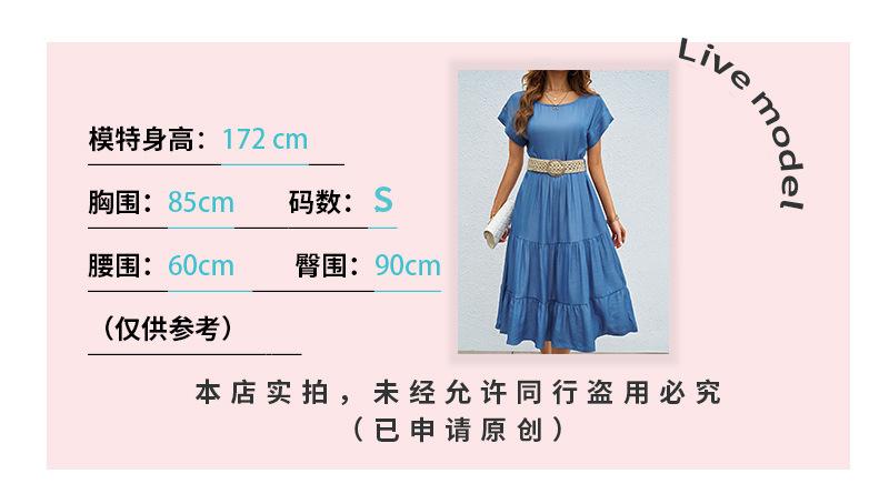Moda casual de verano europea y americana transfronteriza, color sólido, simple, cuello redondo, manga corta, vestido midi para mujer sin cinturón