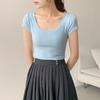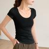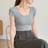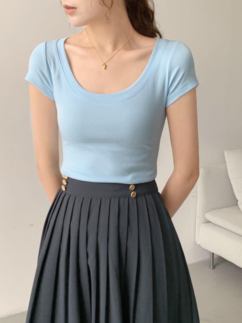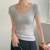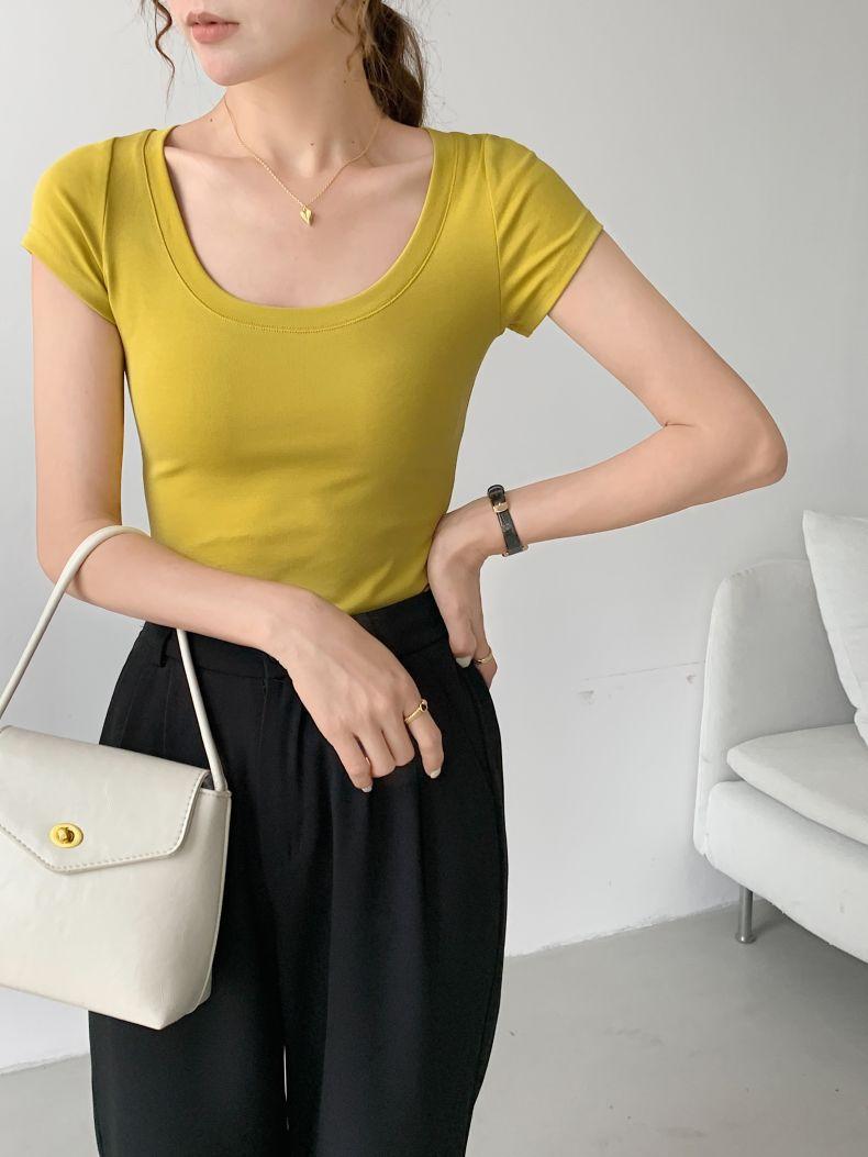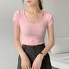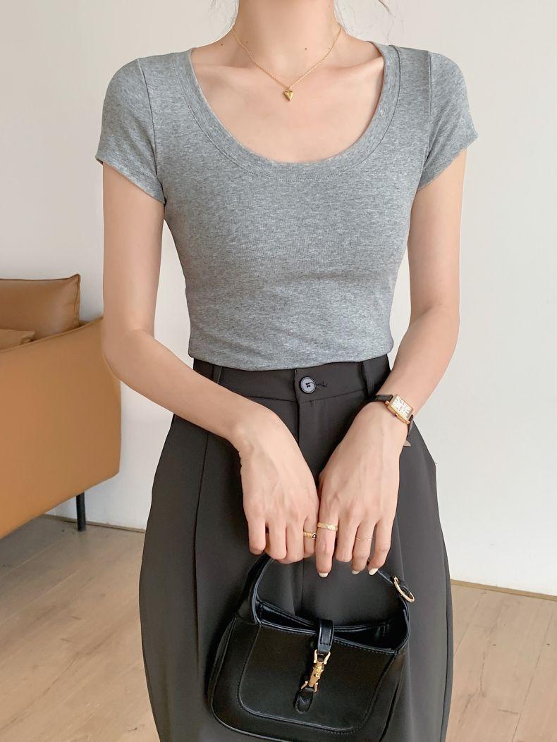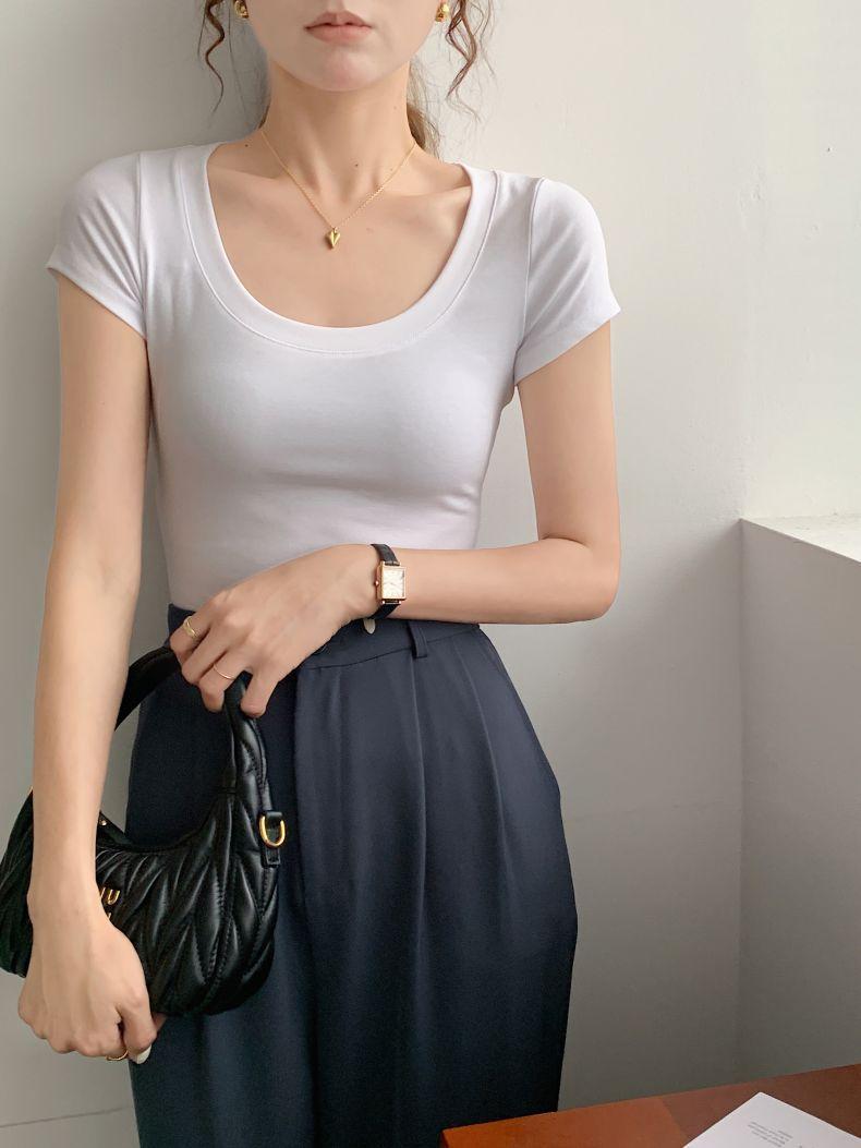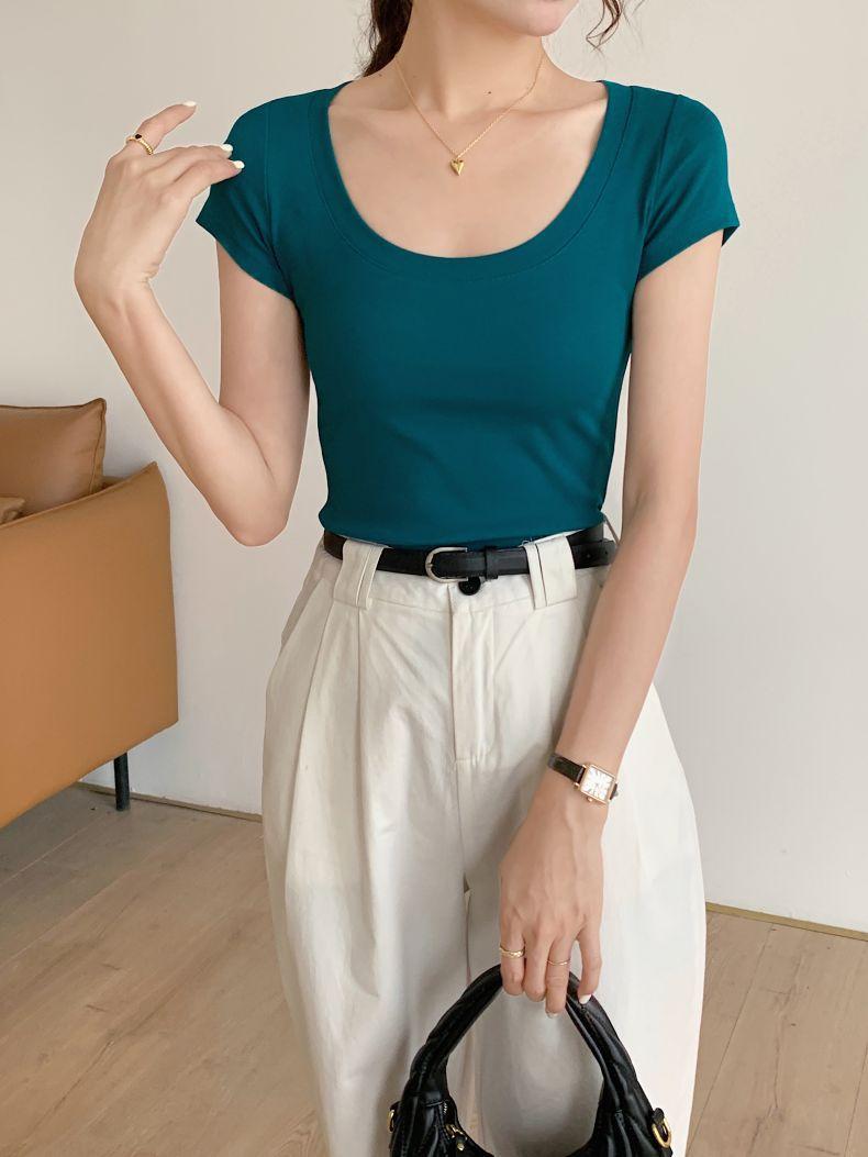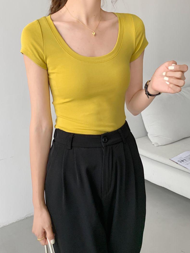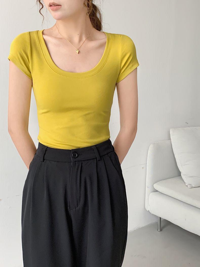 Compra Camiseta de algodón de alta calidad para mujer, de manga corta, ajustada, con cuello redondo, sexy, ajustada, nueva camiseta de verano 2025, color liso. al por mayor en Joom.pro