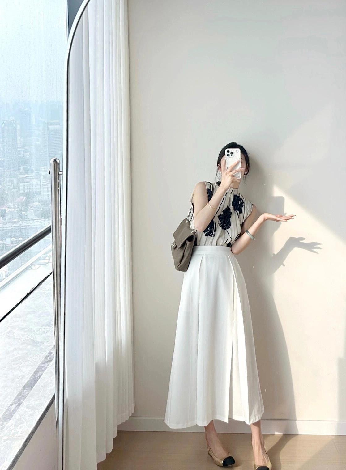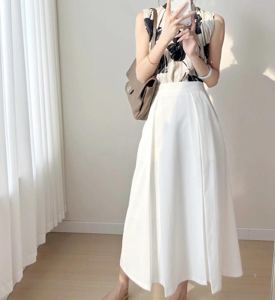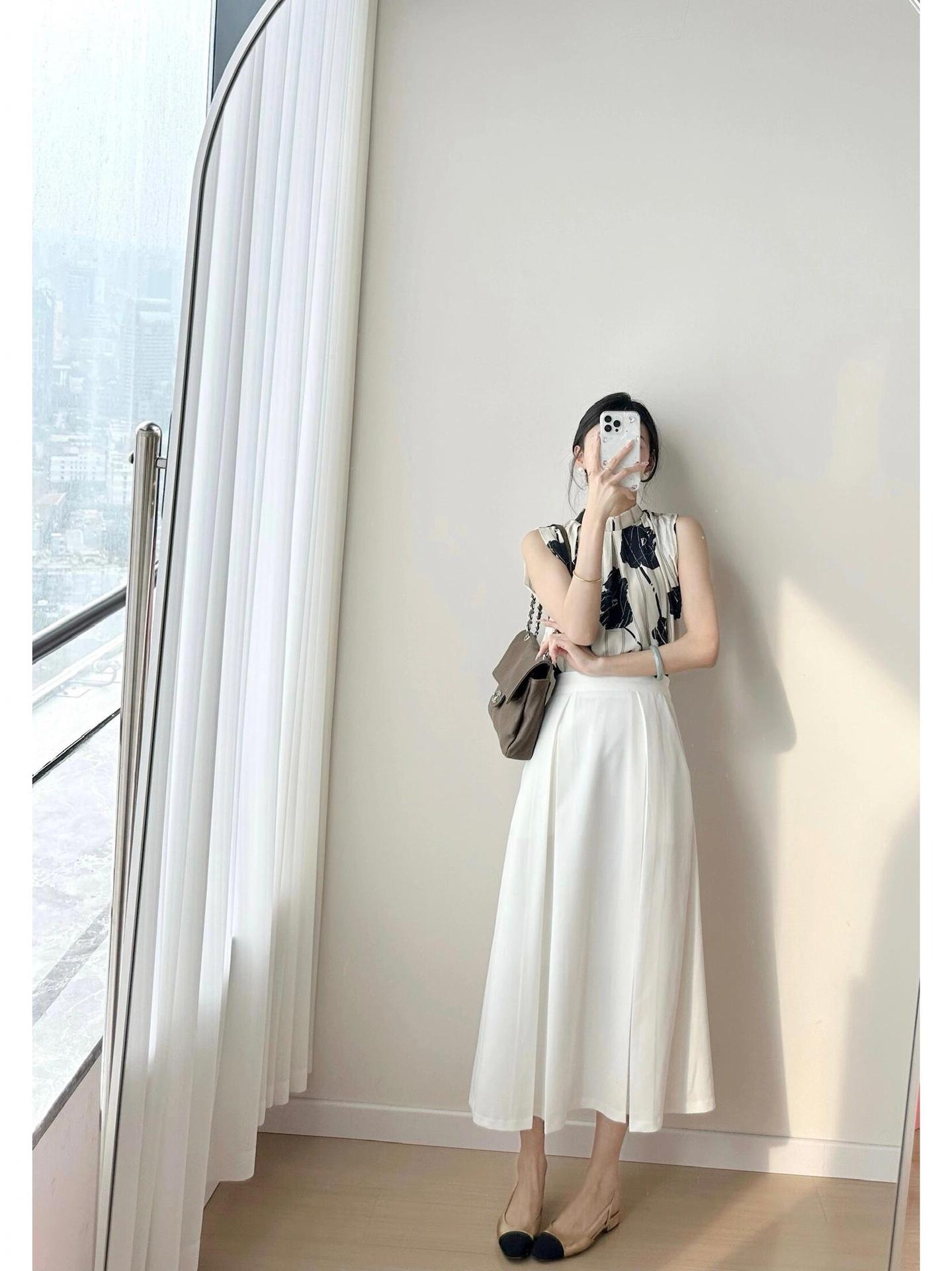 Compra Conjunto de dos piezas para mujer, estilo verano 2025, nuevo estilo, camisa chaleco sin mangas con estampado francés + falda plisada blanca midi al por mayor en Joom.pro