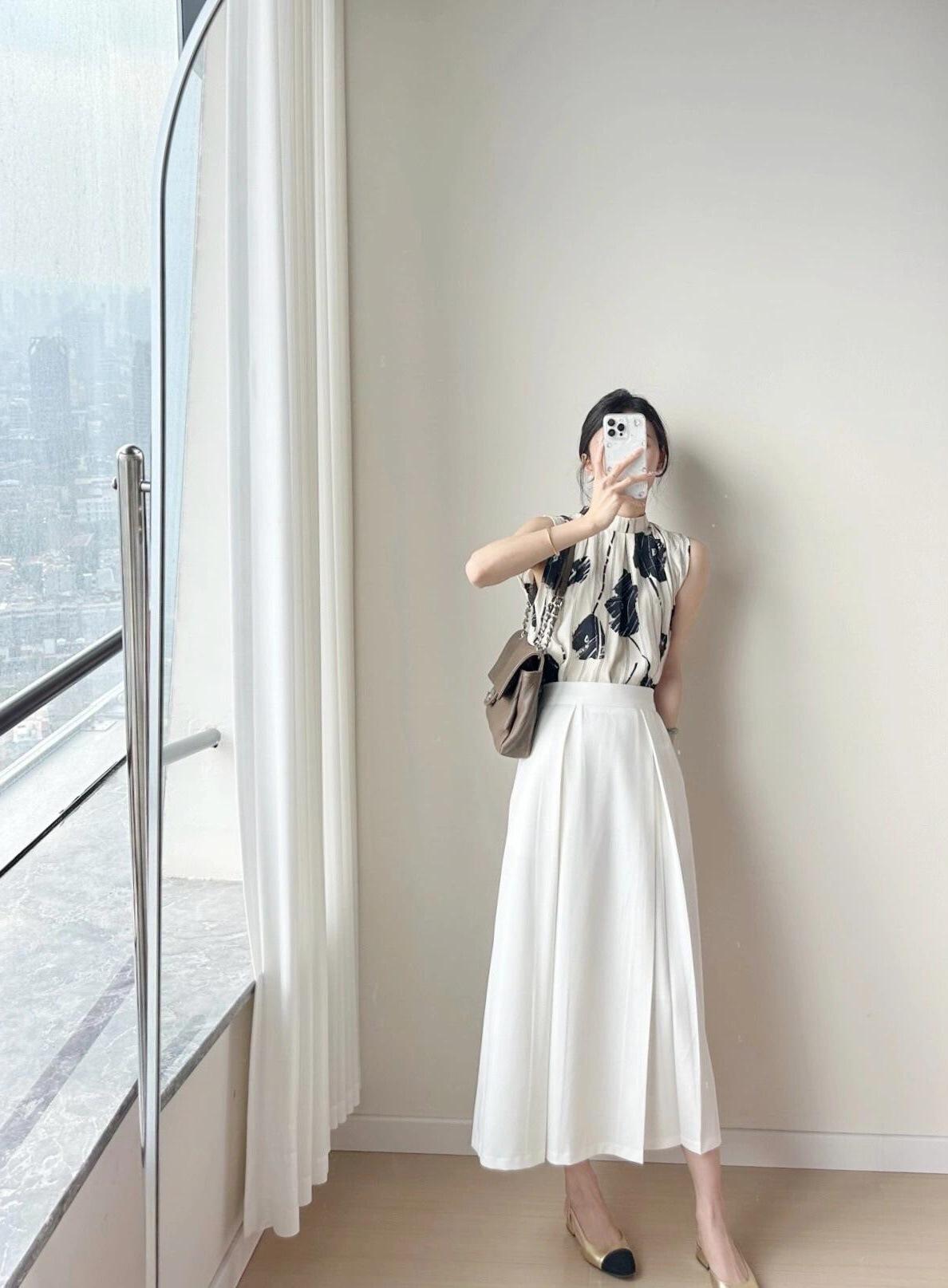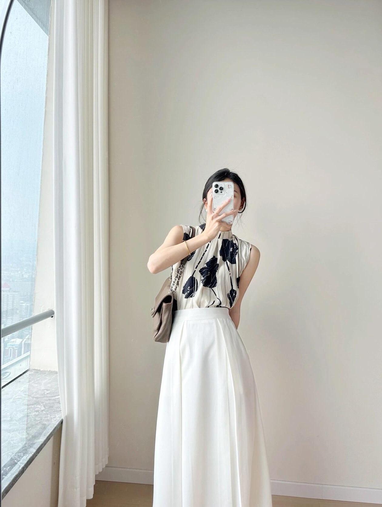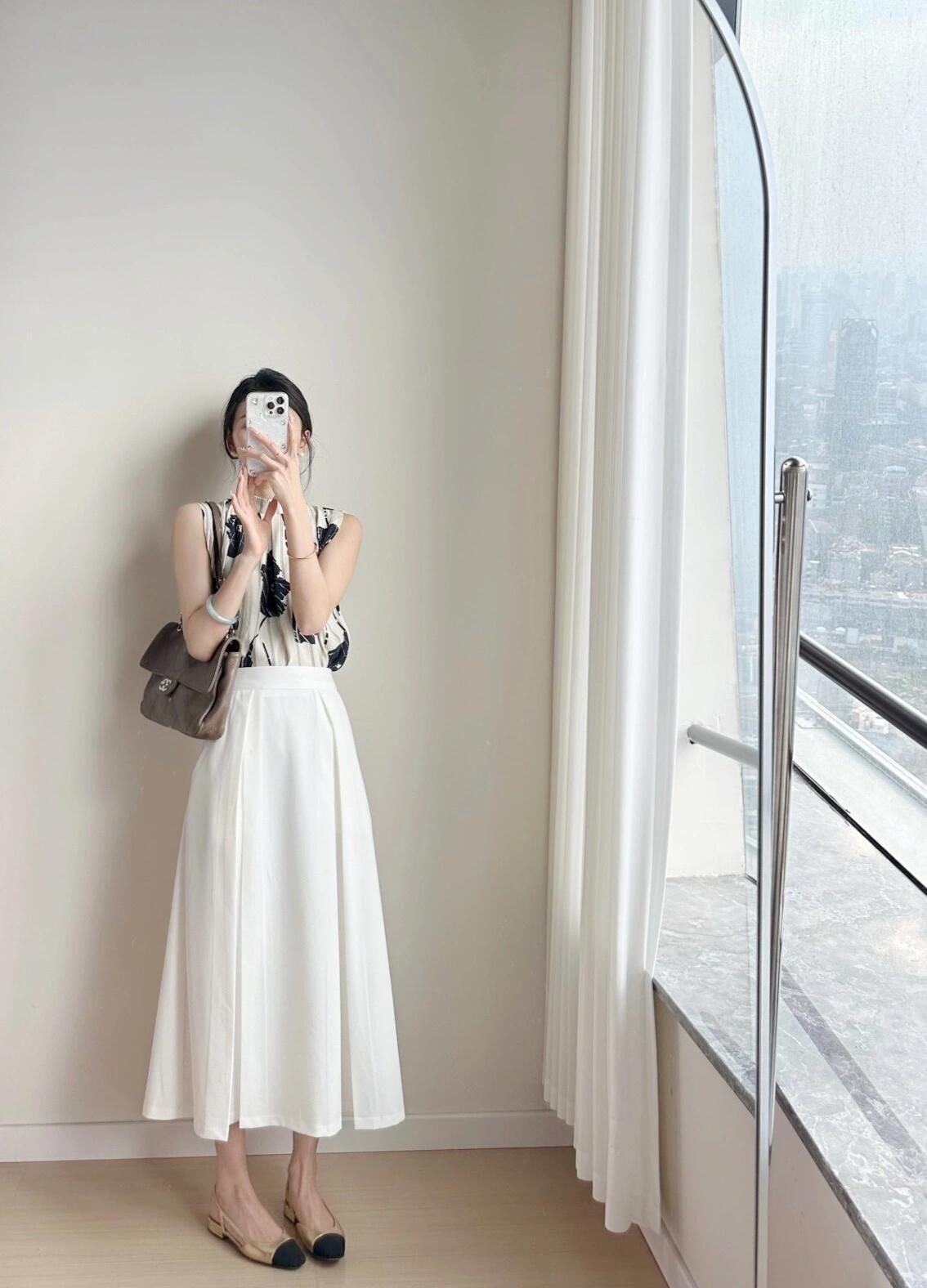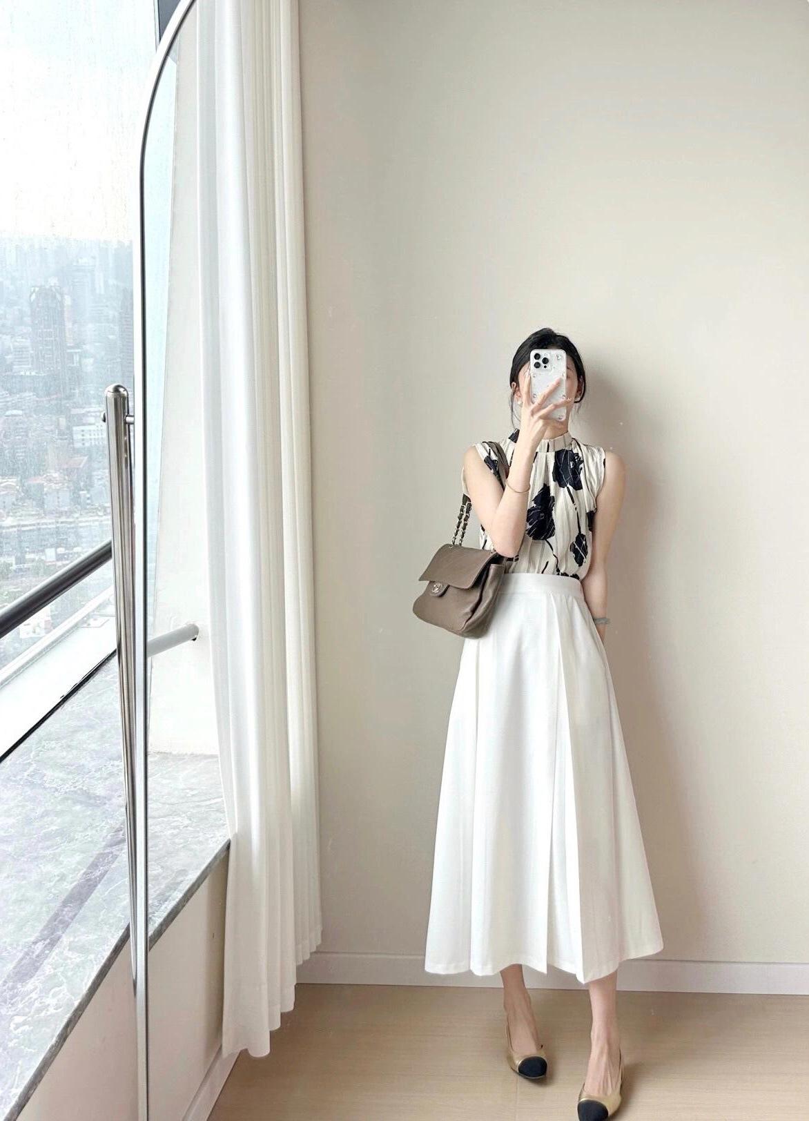 Compra Conjunto de dos piezas para mujer, estilo verano 2025, nuevo estilo, camisa chaleco sin mangas con estampado francés + falda plisada blanca midi al por mayor en Joom.pro
