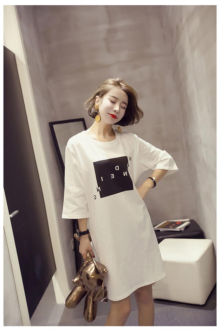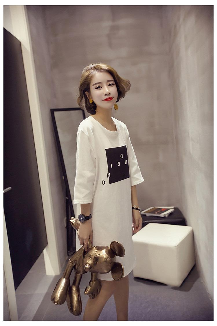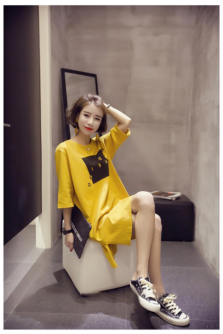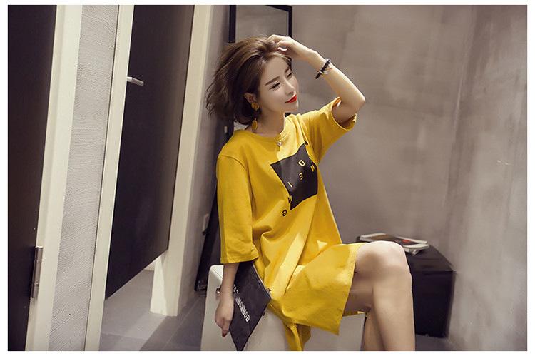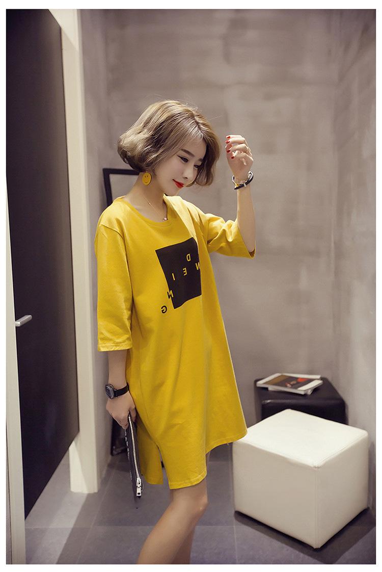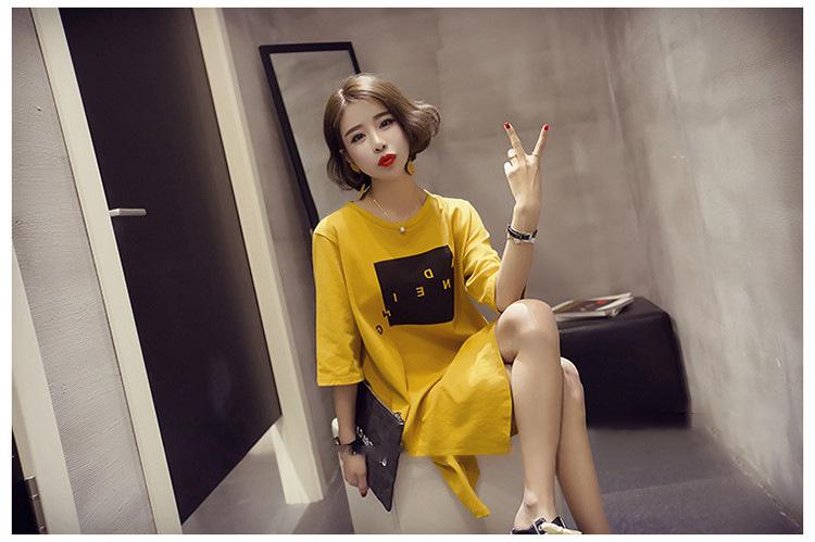 2025 Verano Nuevo Estilo Coreano Suelto Largo Medio Manga Corta Abertura Vestido Camiseta de Estudiante de Media Manga para Mujer Top de Mujer