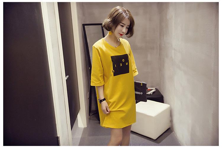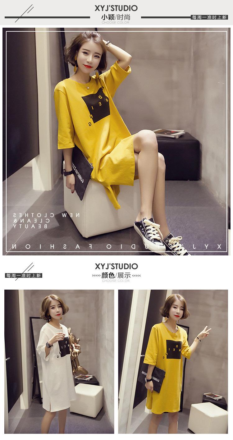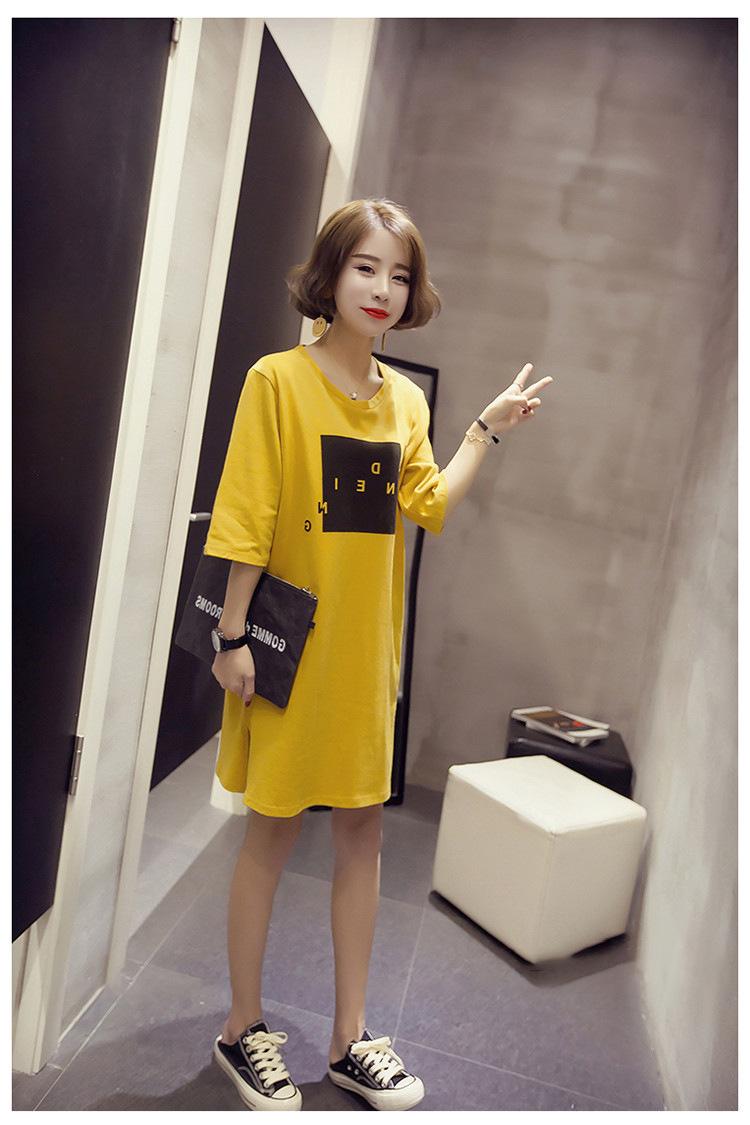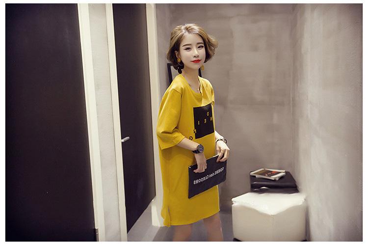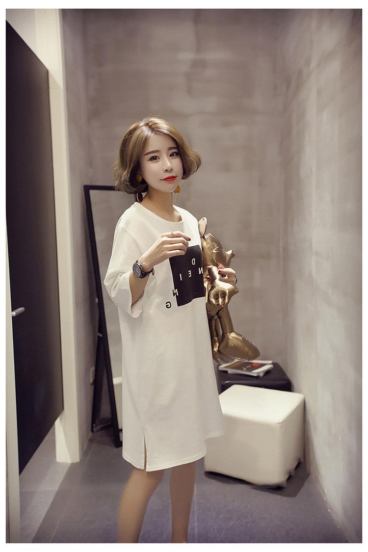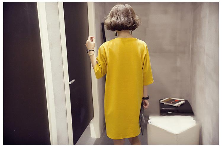 2025 Verano Nuevo Estilo Coreano Suelto Largo Medio Manga Corta Abertura Vestido Camiseta de Estudiante de Media Manga para Mujer Top de Mujer