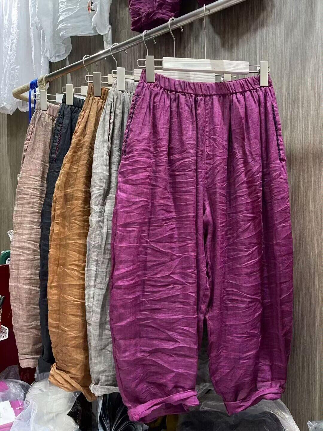 Pantalones de ramio ligeros y finos para mujer, pantalón holgado, de pierna ancha, adelgazante, combina con todo, cintura holgada, estilo farol, informales, para verano, 2024