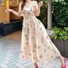 2025 Otoño Nuevo Moda Transfronteriza Europea y Americana Casual Bloque de Color Estampado Patchwork Plisado Entallado Vestido Largo para Mujer