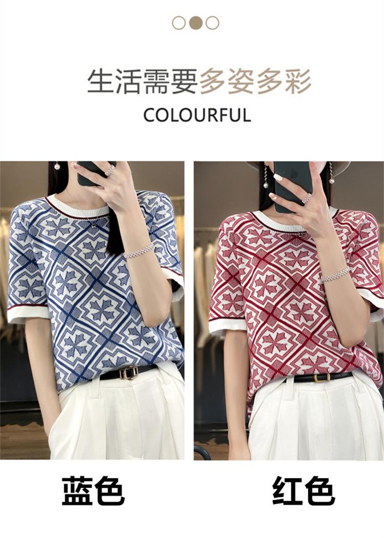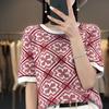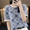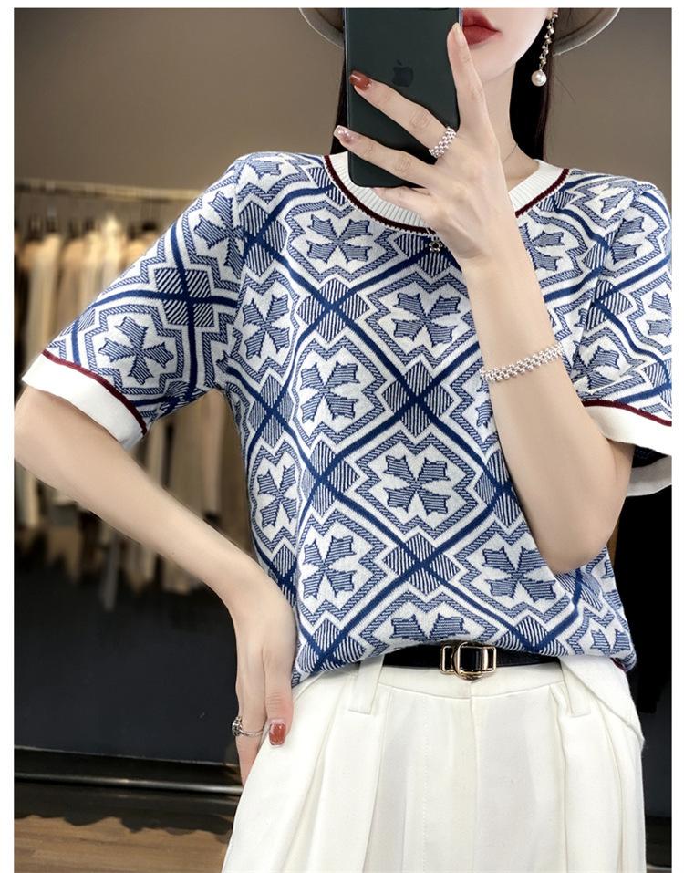 Camisa de manga corta de algodón con estampado geométrico para mujer, camiseta transpirable de verano a juego con colores, ropa para mujer, 2023