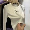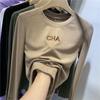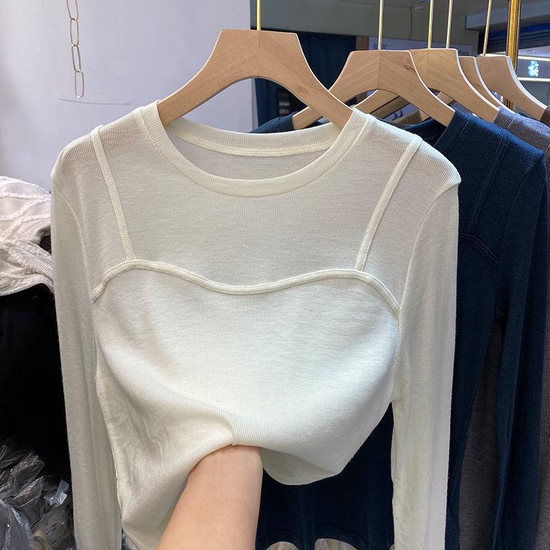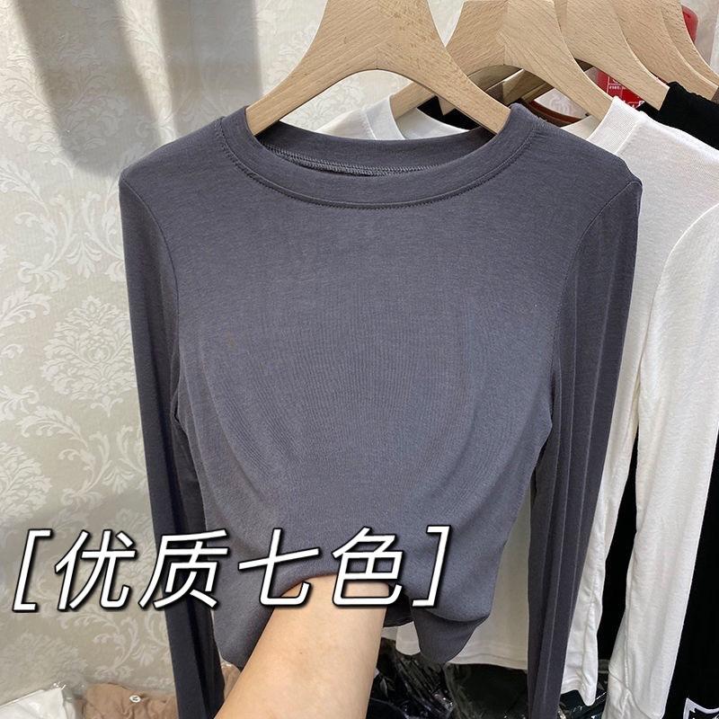 | Playera de algodón de alta calidad de cuello redondo y manga larga para mujer, corte ajustado y ropa delgada para otoño, nuevo estilo color sólido versión coreana camisa básica ins para mujer |