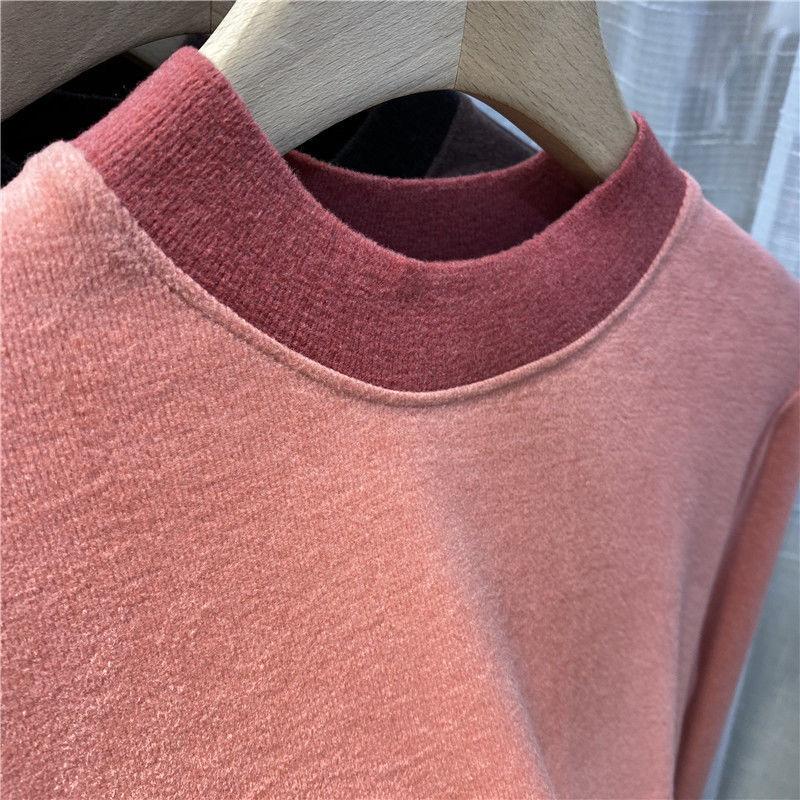 | Camiseta básica de terciopelo cepillado para mujer 2021 otoño e invierno nuevo estilo elegante cuello alto interior de manga larga camiseta cálida |