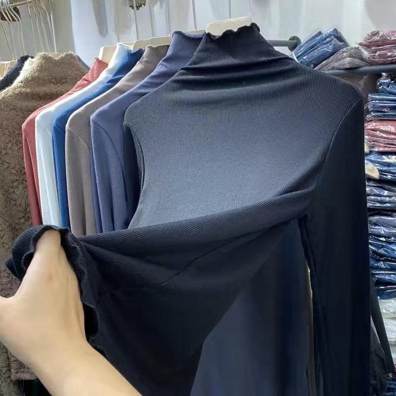 | Productos coreanos pedido enorme camisa de fondo suave 2021 otoño nuevo cuello alto corte ajustado manga larga camiseta tops para mujer |