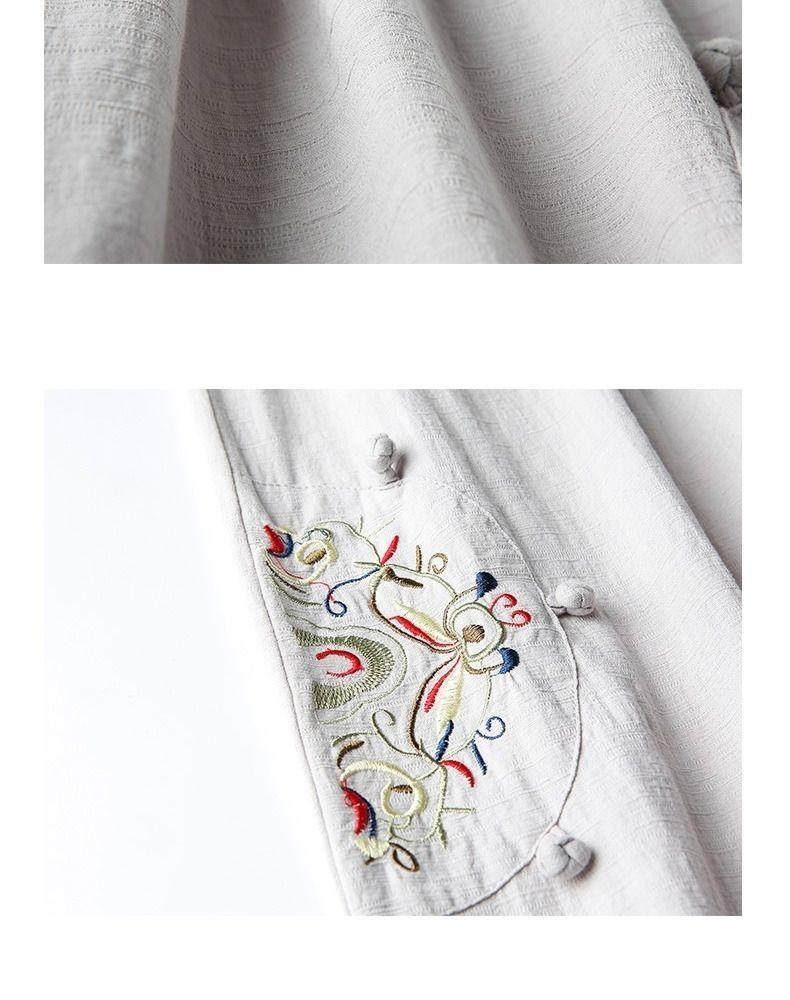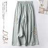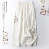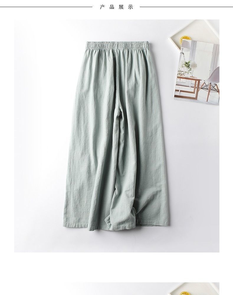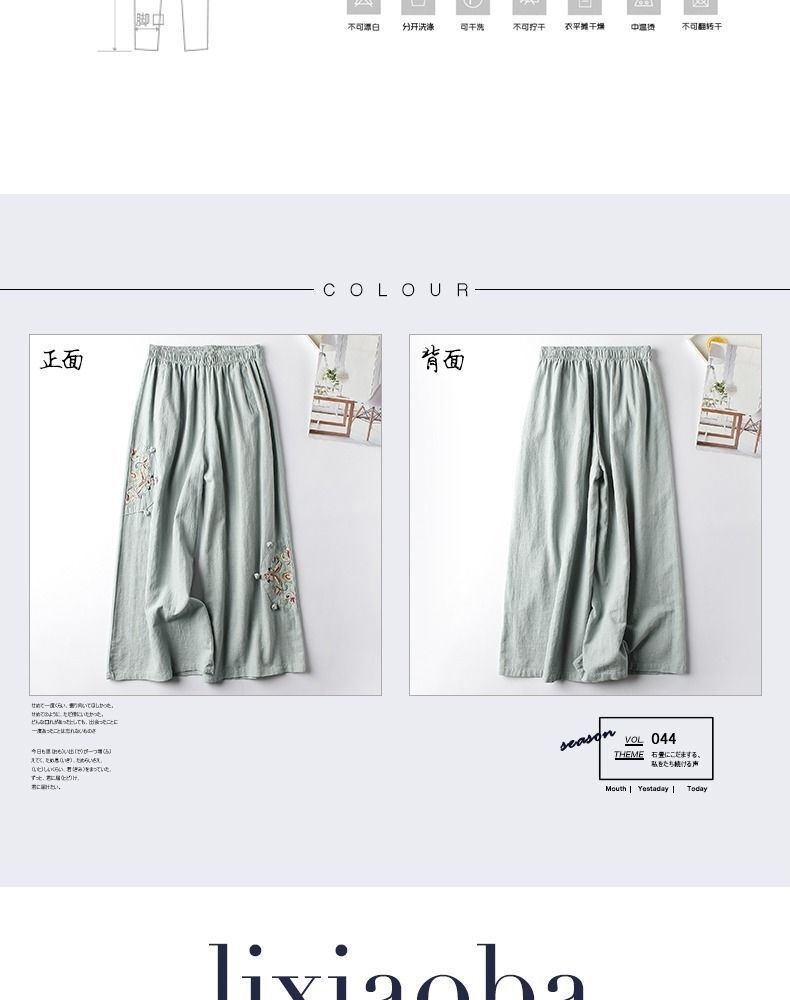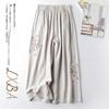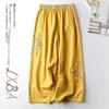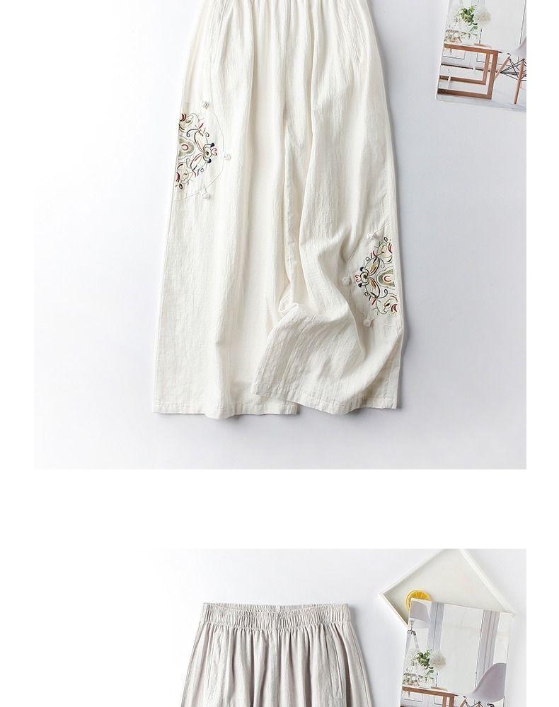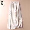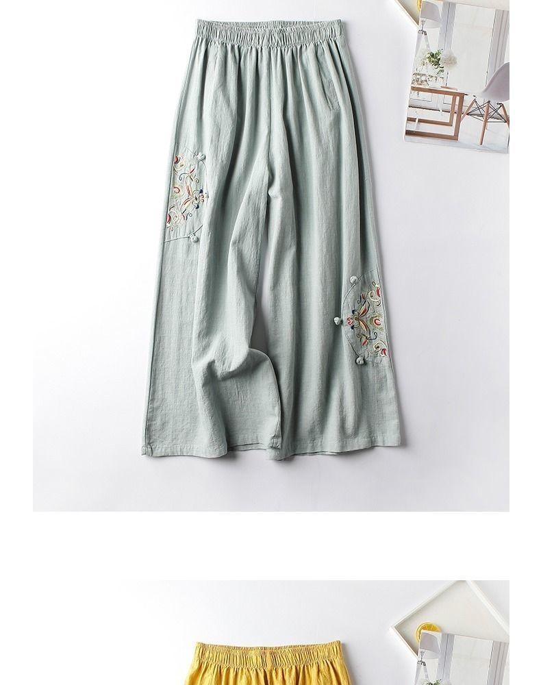 Pantalones Casuales de Algodón y Lino de Verano 2025 para Mujer, Delgados, Estilo Étnico Retro, Bordados, de Pierna Ancha, Más Fáciles de Combinar, Adelgazantes, Pantalones Nueve Puntos