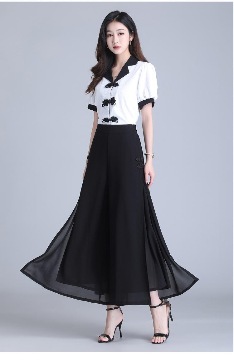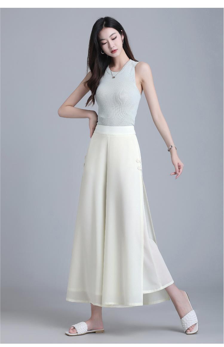 Pantalones de Pierna Ancha con Hebilla Adelgazante Retro a la Moda para Mujer 2025 Verano Nuevo Estilo Coreano Casual Suelto Recortado Pantalones Casuales