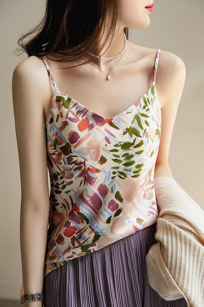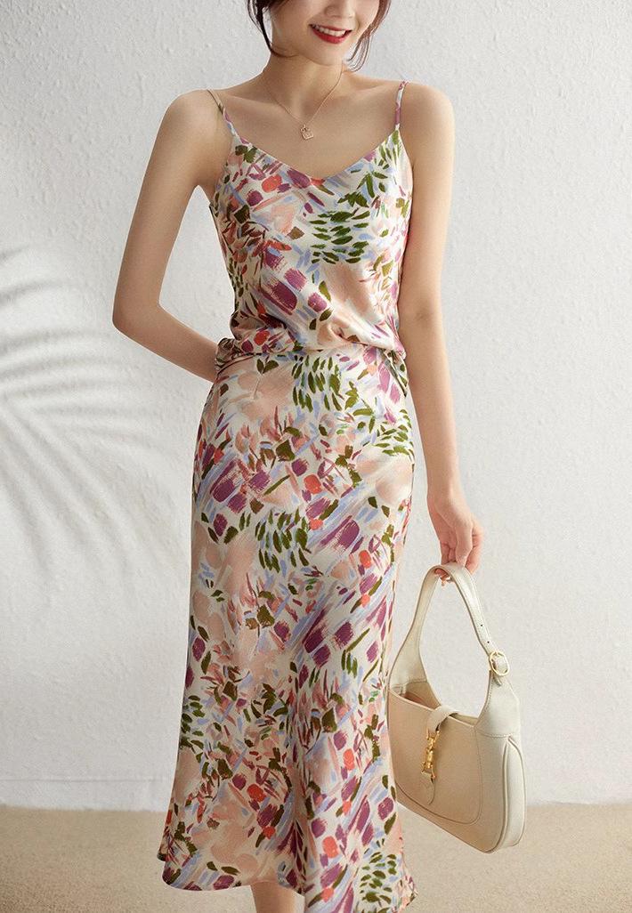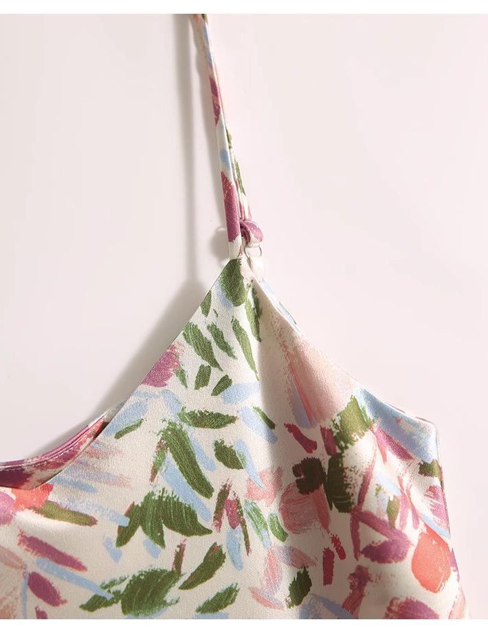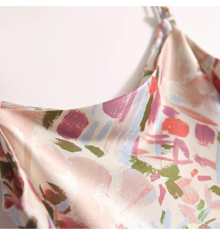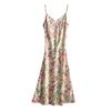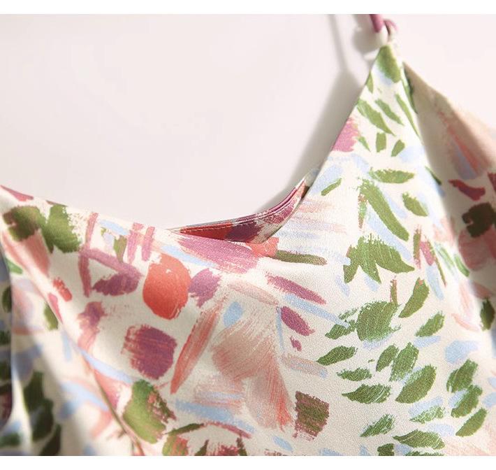Vestido floral de acetato con tirantes de nuevo estilo/top con tirantes/falda cuello en V sin mangas para mujer