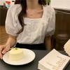 Camisa de encaje con mangas abullonadas plisadas, de un solo pecho, estilo retro francés, estilo coreano, primavera y otoño