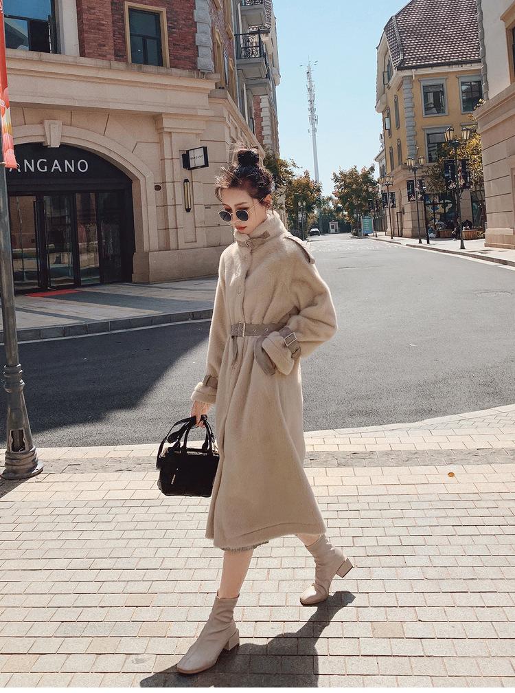 Compra Abrigo de Invierno para Mujer 2024 Nuevo Estilo Coreano Suelto Versátil Largo Medio con Cinturón Abrigo de Lana con un Aspecto Elegante y Profesional al por mayor en Joom.pro