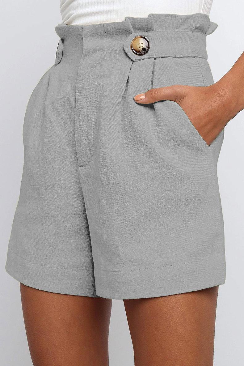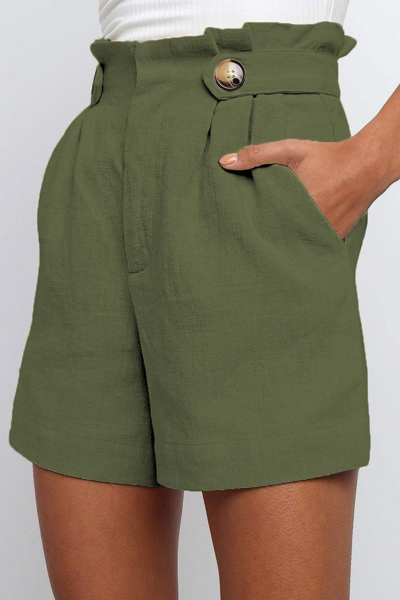 Pantalones cortos casuales de Amazon para mujer, novedad de verano 2024, pantalones rectos sueltos con volantes de cintura alta de color sólido europeo y americano