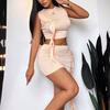 Conjunto de dos piezas formado por jersey y chaleco, sexy, de color sólido, con falda y volantes en la cadera, para Europa y América, venta al por mayor