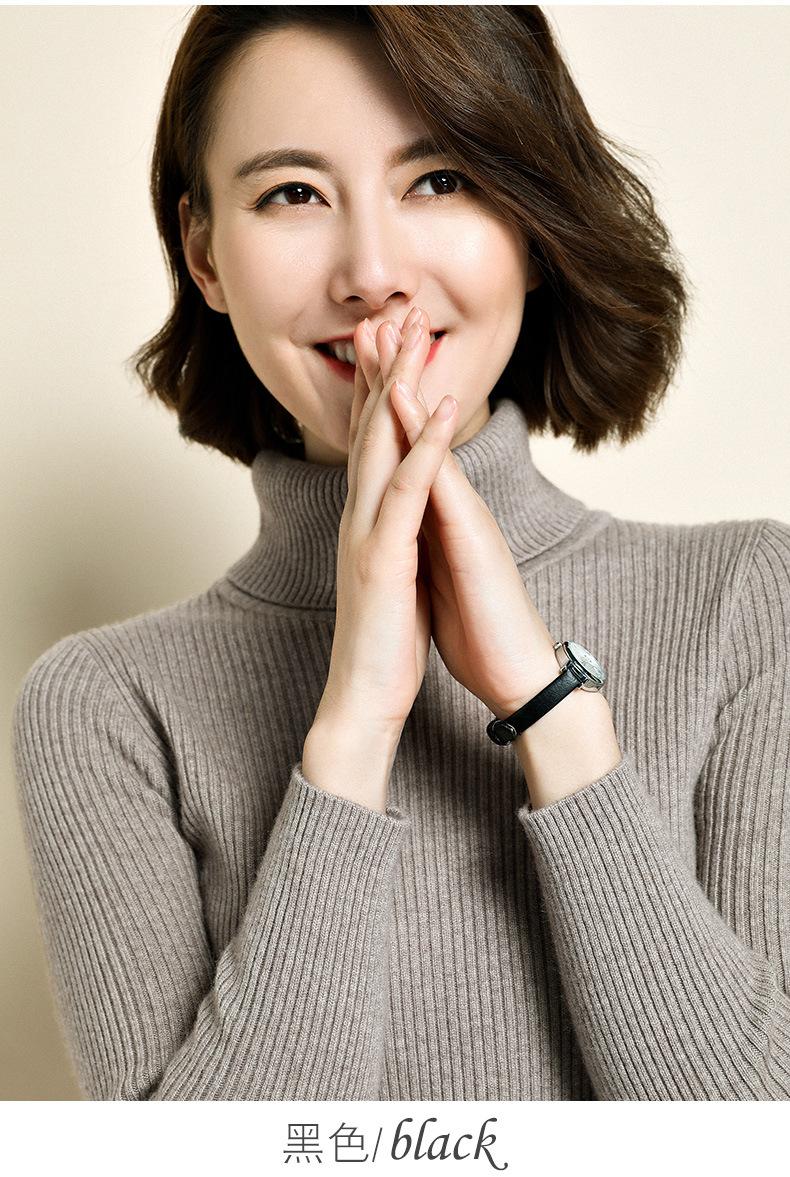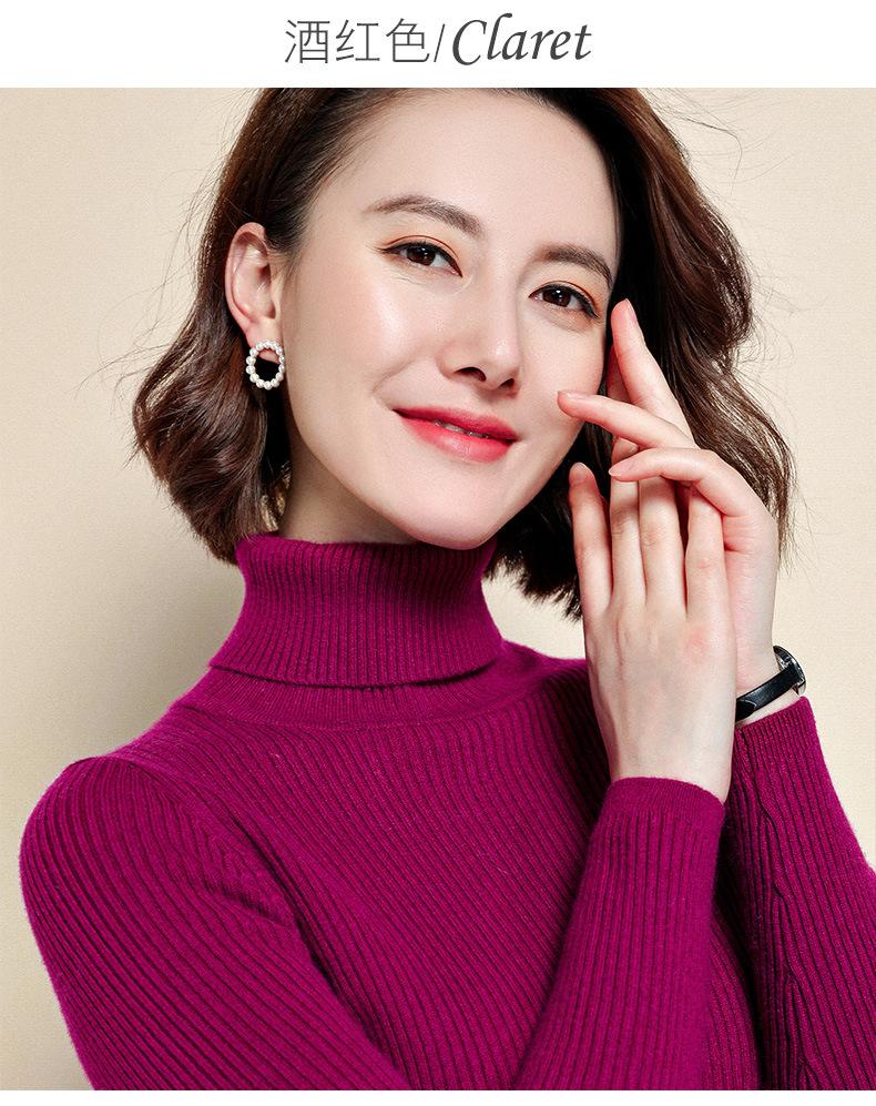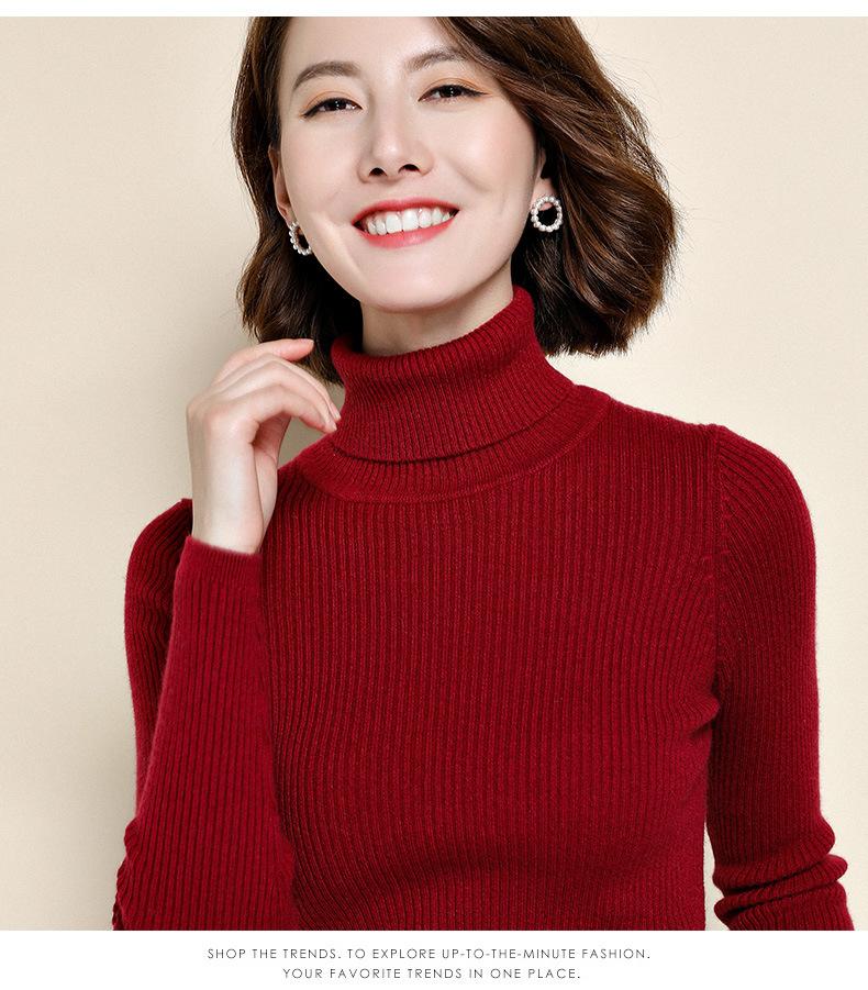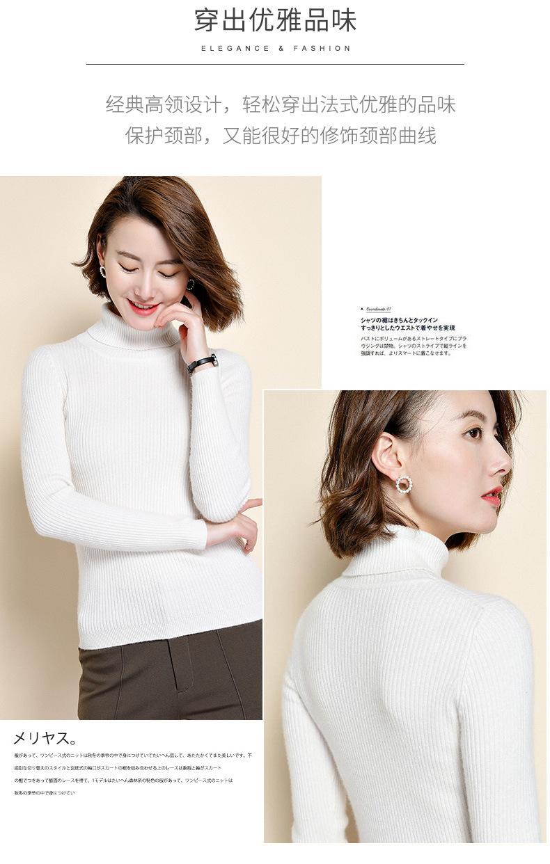 Versión coreana 2021 de jersey de mujer, camisa de cuello alto, suéter de punto de moda ajustado de color sólido, suéter de cuello de pila delgado para mujer