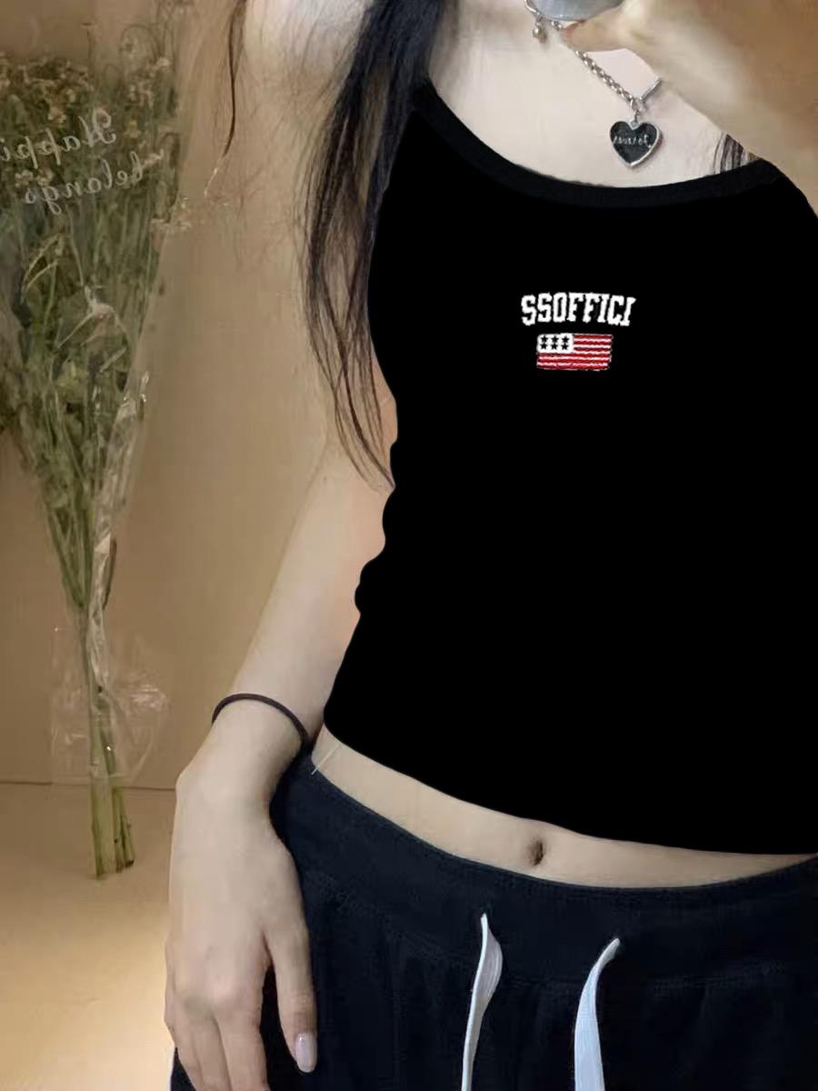 Camisola pequeña y fresca para mujer, interior de verano 2023, nueva prenda interior sin mangas Spice Girl, top con letras bordadas