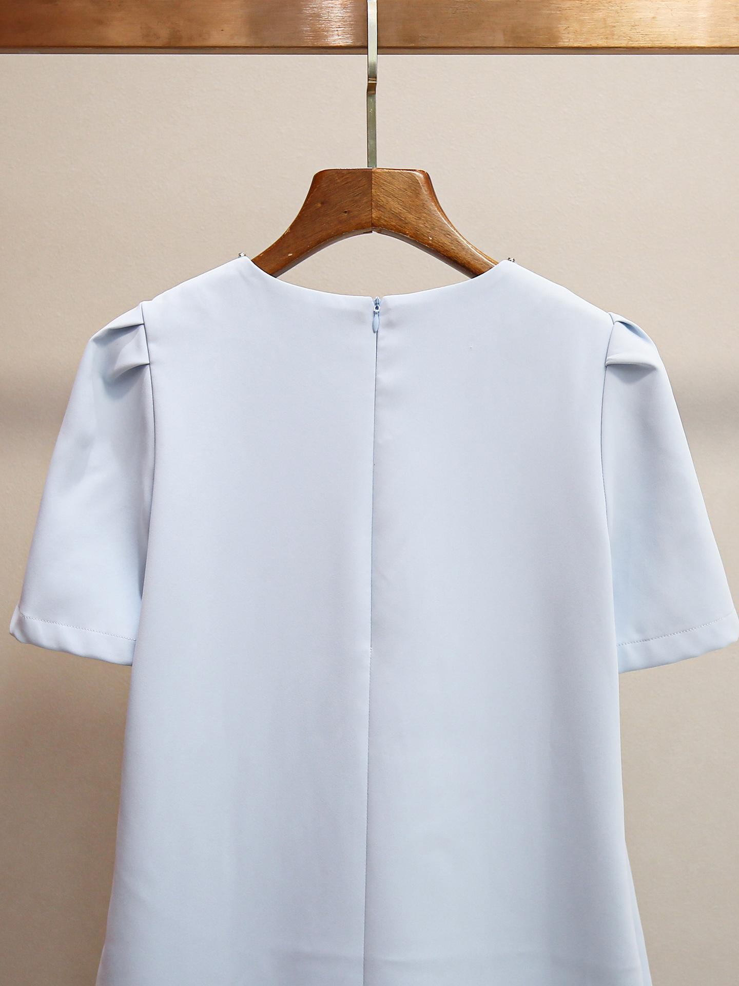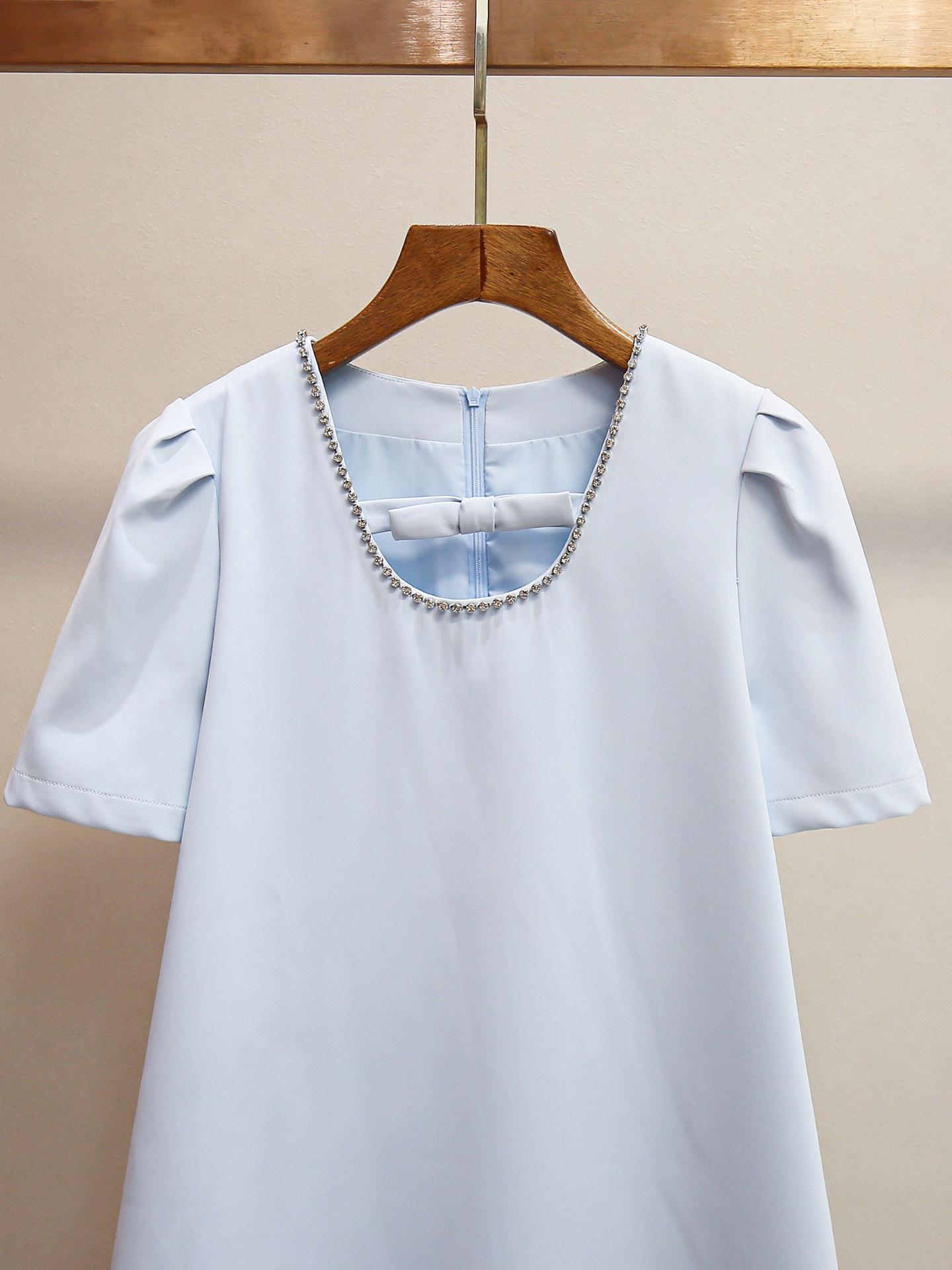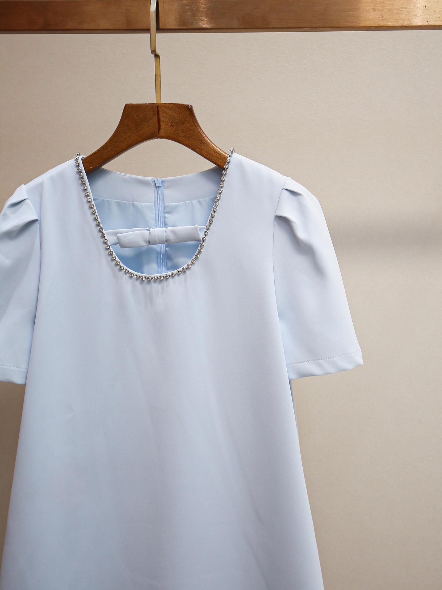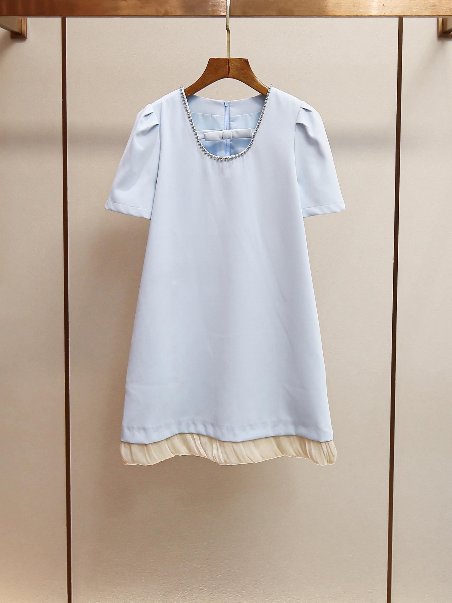 Ropa Elegante para Mujer Shenzhen Nanyou Verano Nuevo Estilo Casual de Socialité Francés con Cuentas Recorte Cuello en U Vestido para Mujer