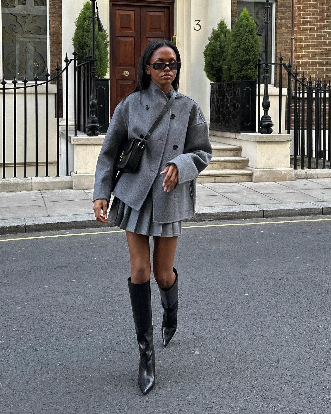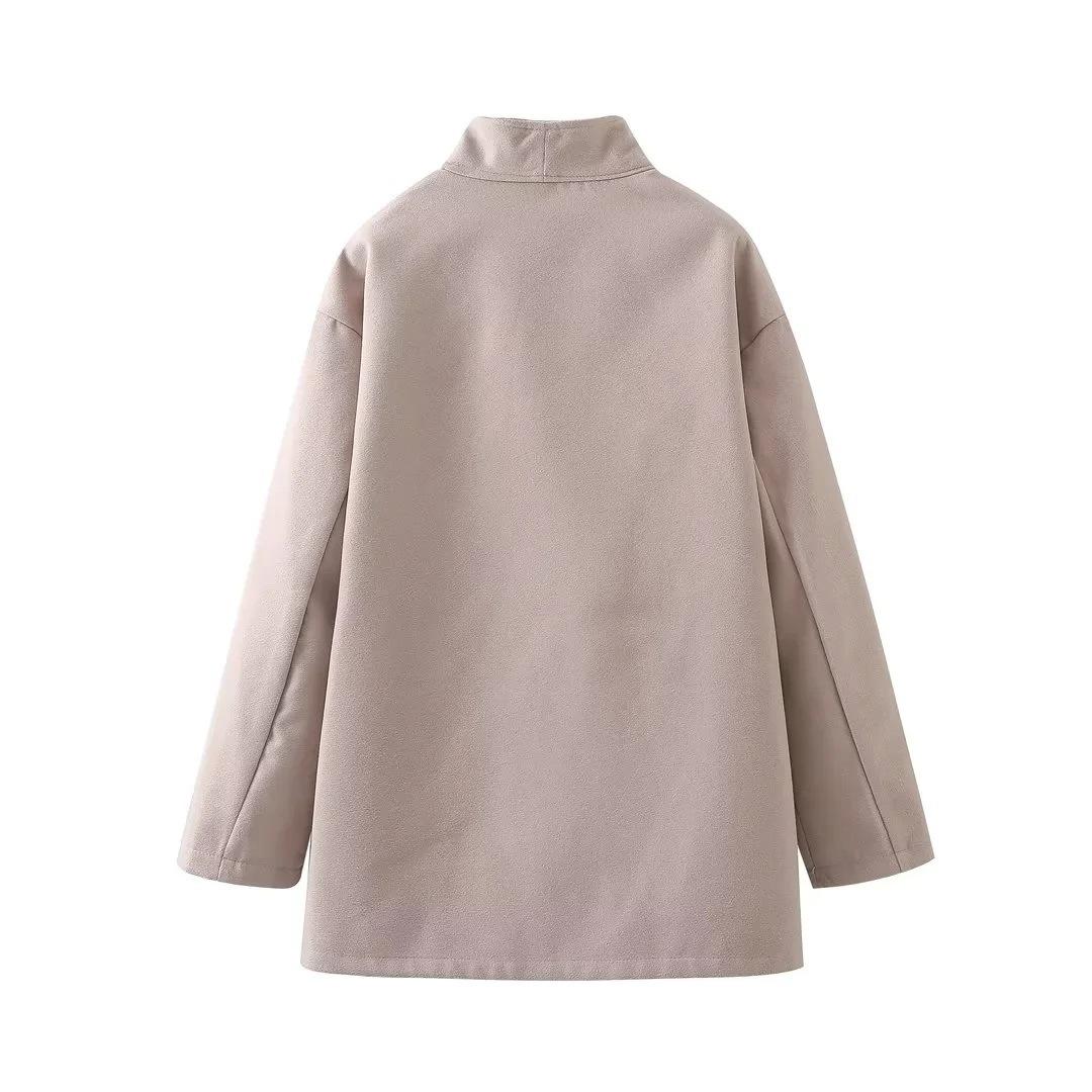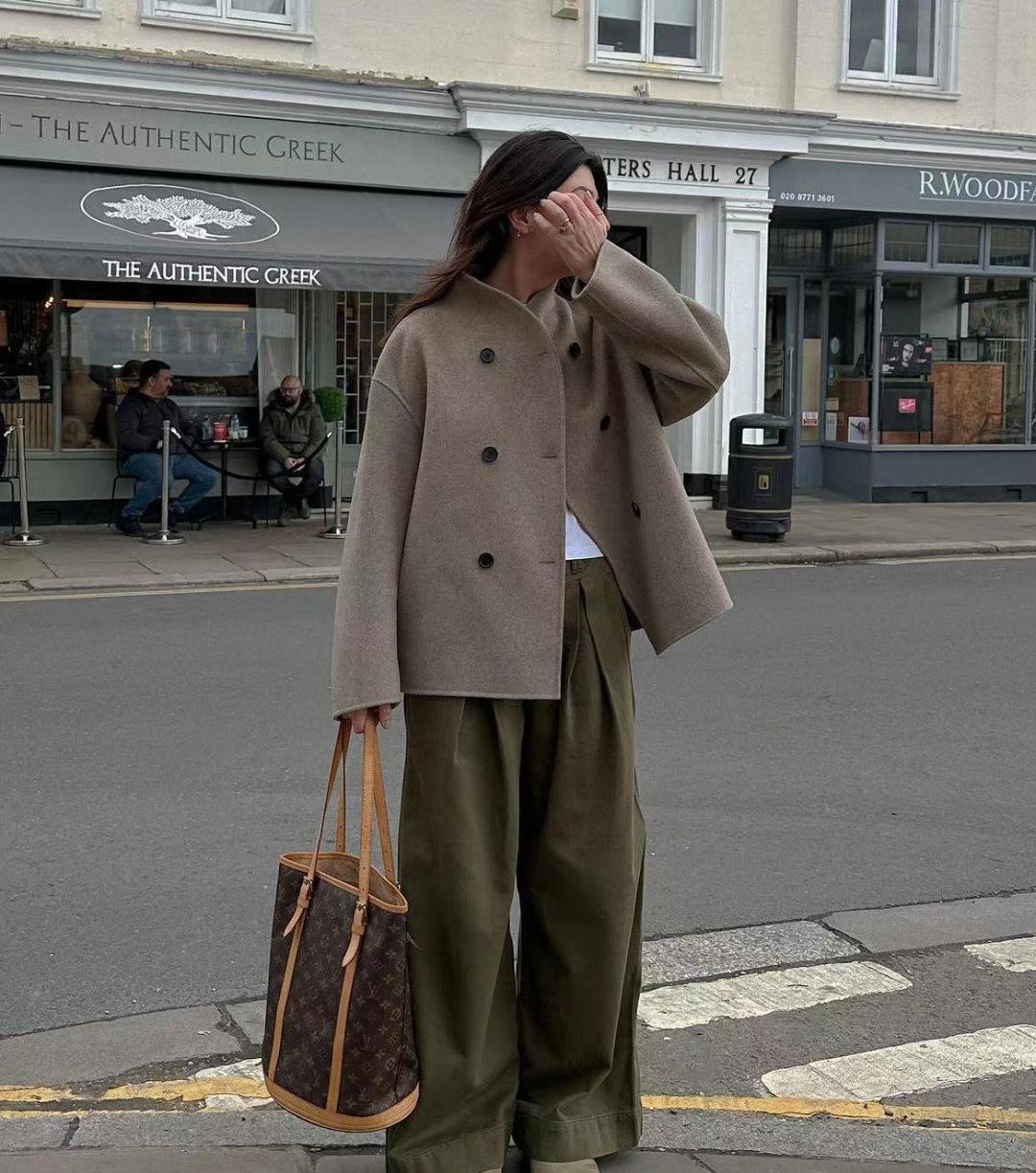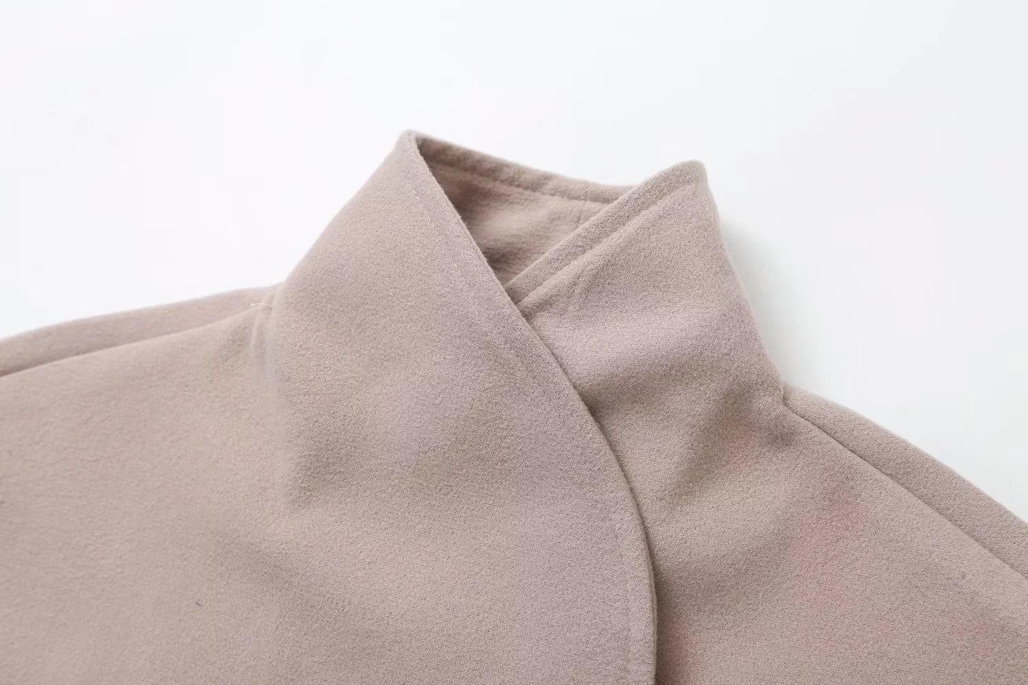 Abrigo corto cruzado europeo y americano para comercio transfronterizo, de lana de color sólido, con un elegante estilo británico en colores helado y mangas largas a la moda