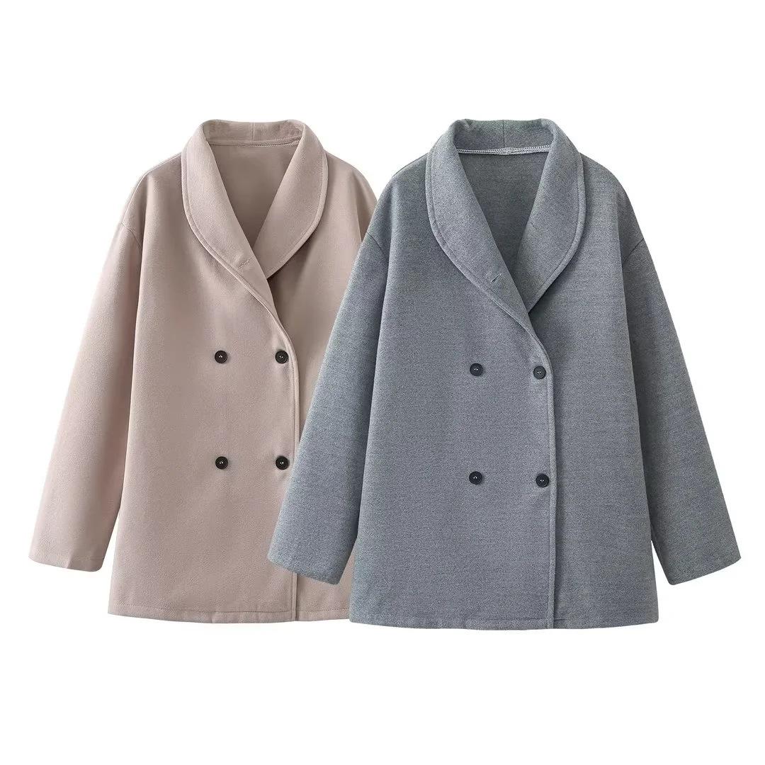 Abrigo de lana corto cruzado de doble botonadura de color sólido para comercio exterior transfronterizo europeo y americano, chaqueta de temperamento casual, estilo británico, tops combinables