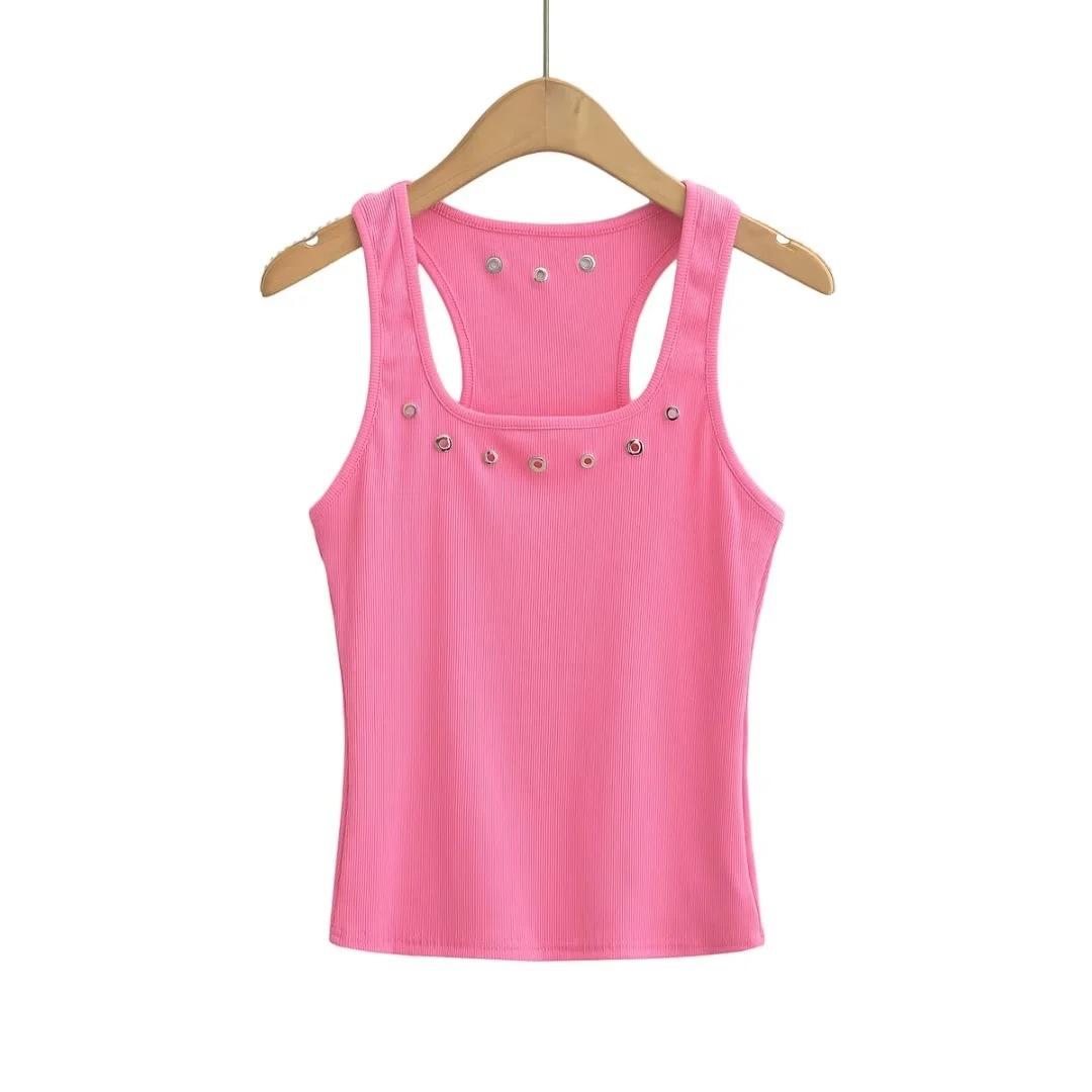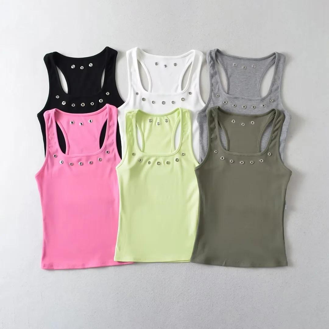 Camiseta interior sexy y transpirable para mujer de Spice Girls, estilo europeo y americano, de verano 2023, con tirantes de hilo de color sólido.