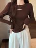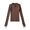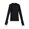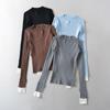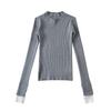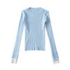 Suéter de manga larga con costuras de color en contraste en los puños para mujer 2024, nuevo diseño, camiseta de cuello redondo ajustada para chica sexy