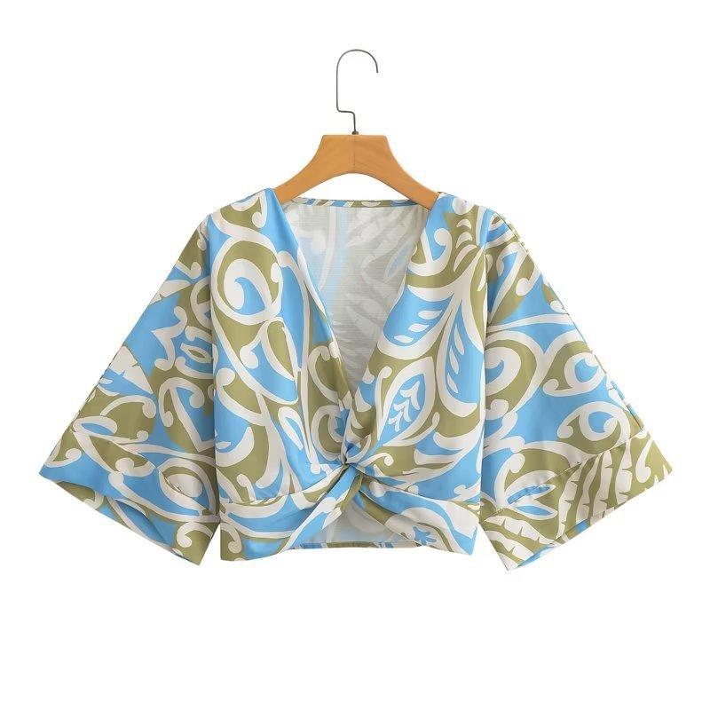 Ropa de mujer de comercio exterior estilo europeo y americano 2023 verano nueva moda retro decoración de nudo top estampado traje de falda