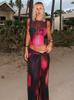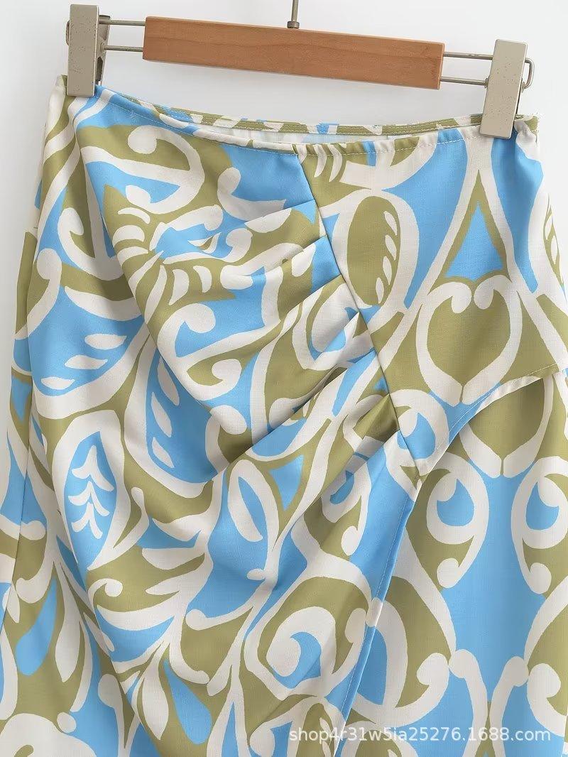 Ropa de mujer de comercio exterior estilo europeo y americano 2023 verano nueva moda retro anudado estampado top falda traje