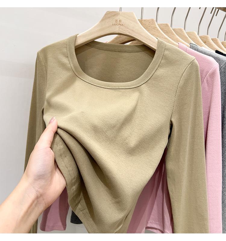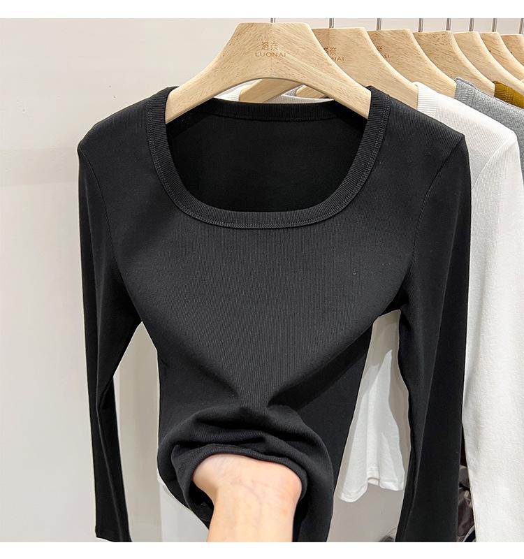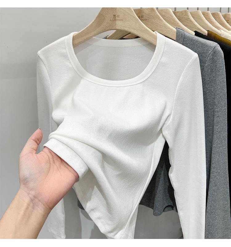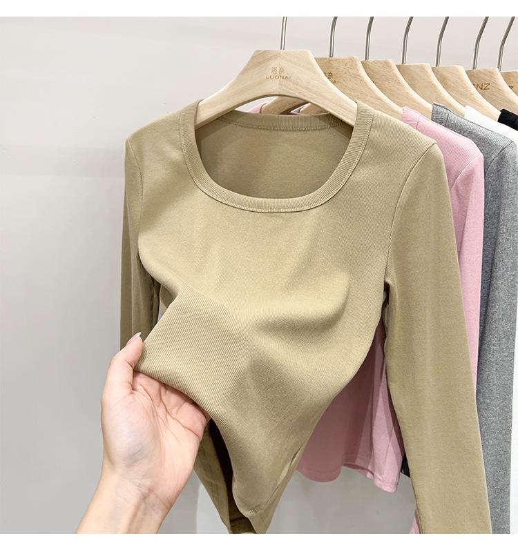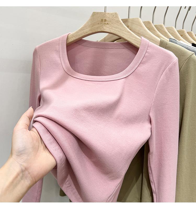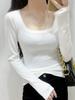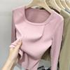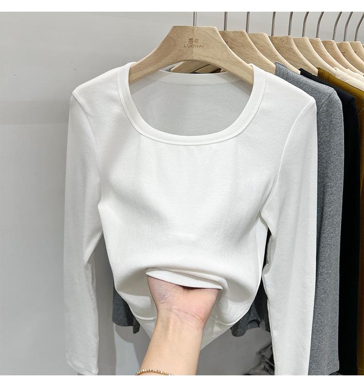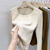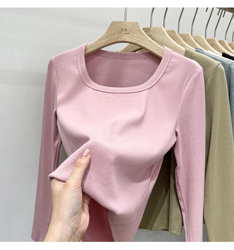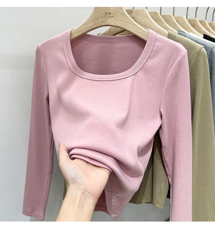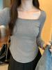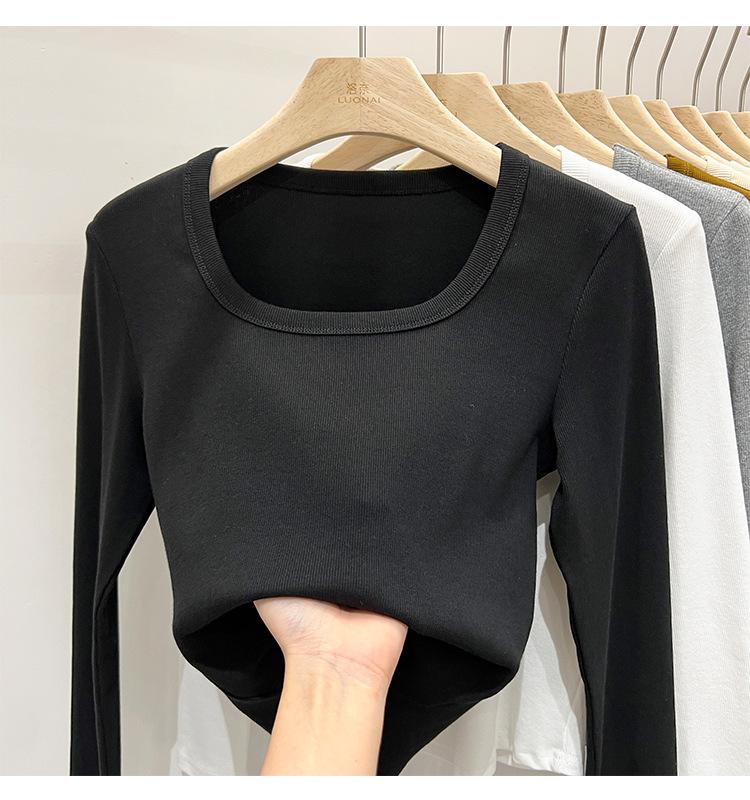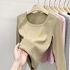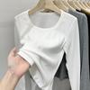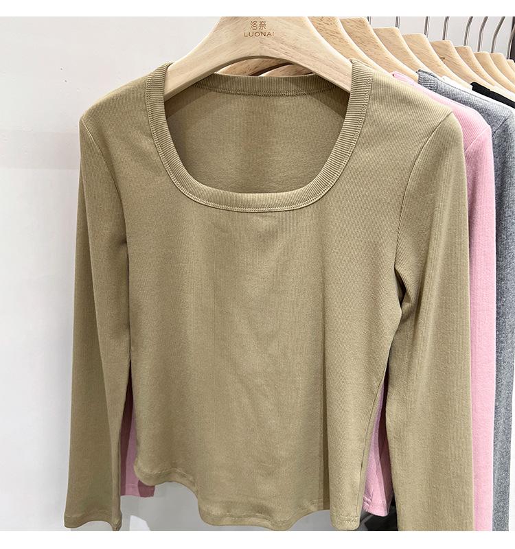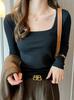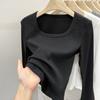 Playera Sexy de Cuello Cuadrado y Manga Larga 2023 Nuevo Diseño Slim Corta Interior Color Puro Camiseta Básica para Mujer