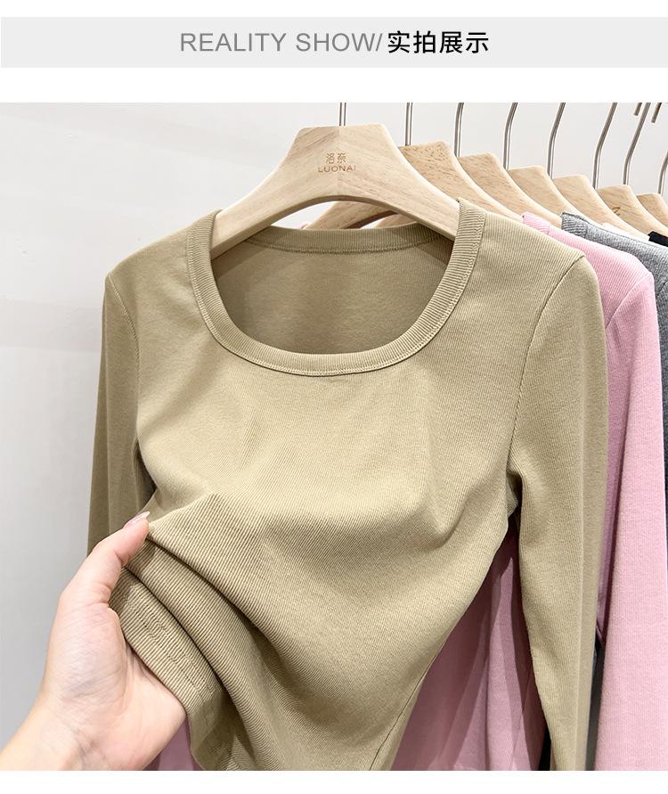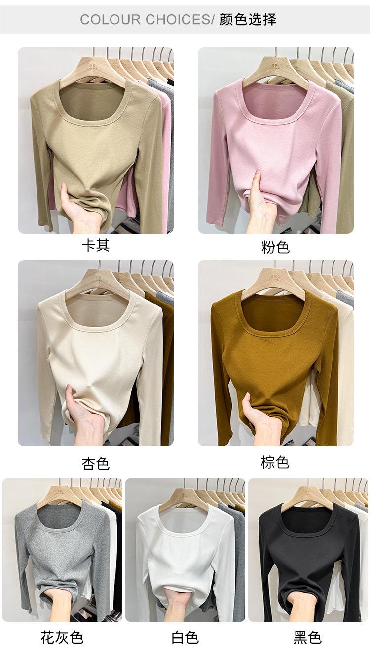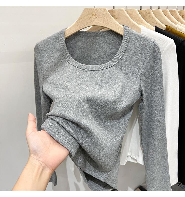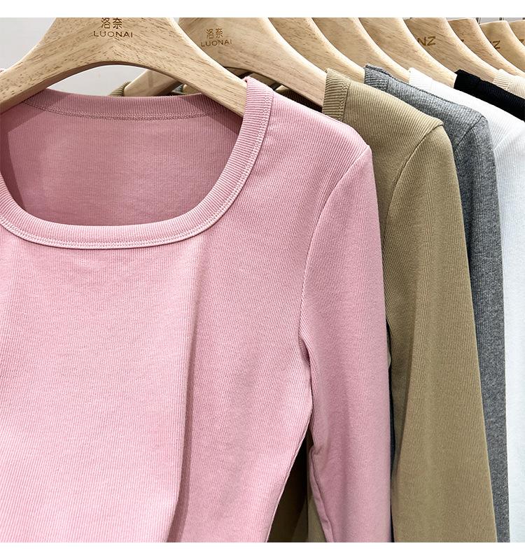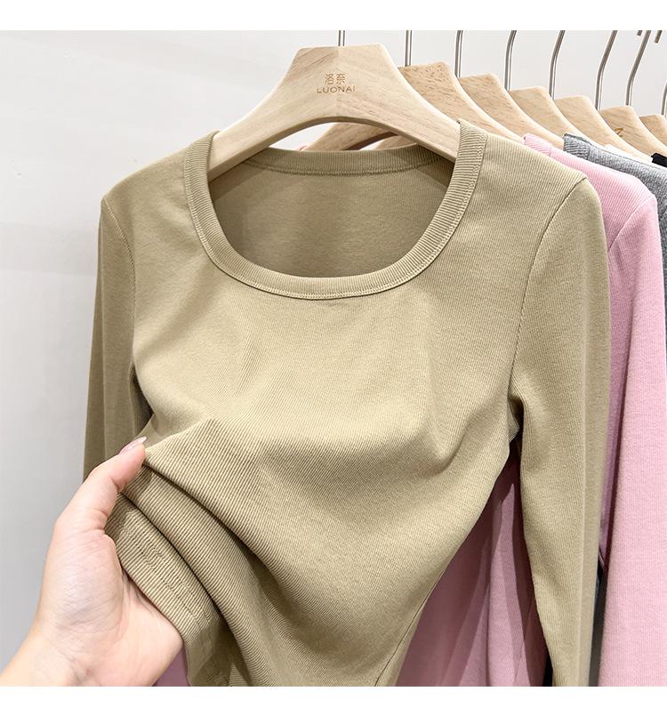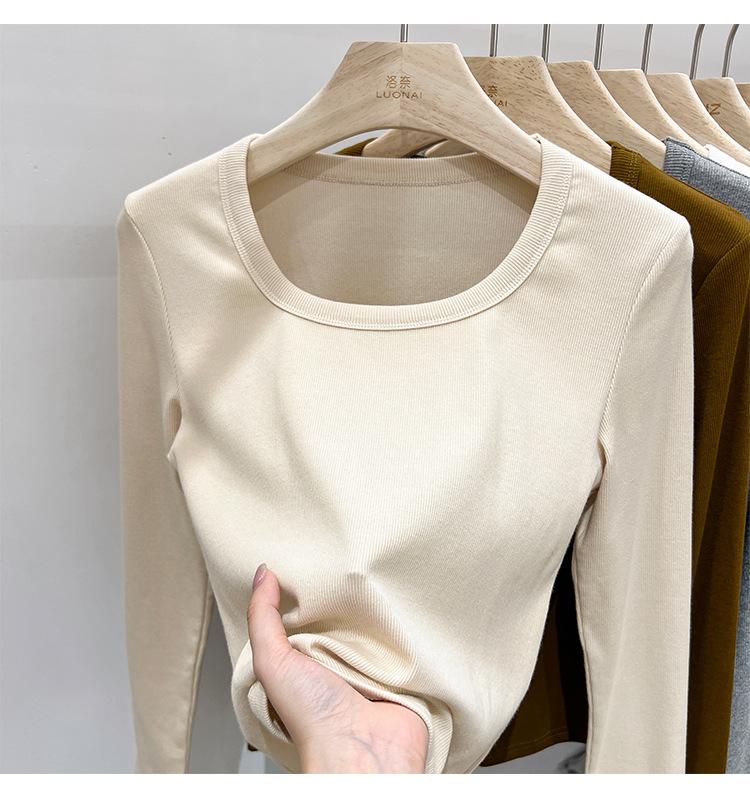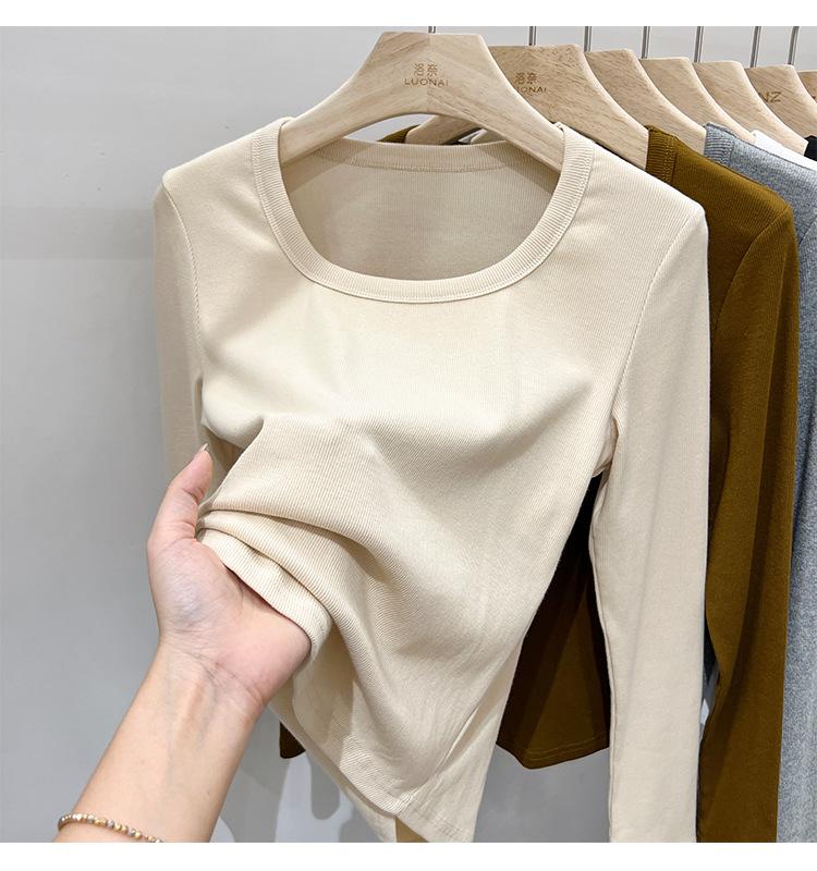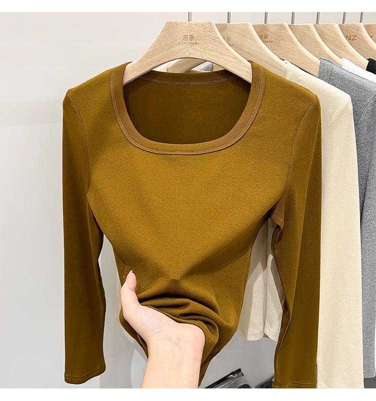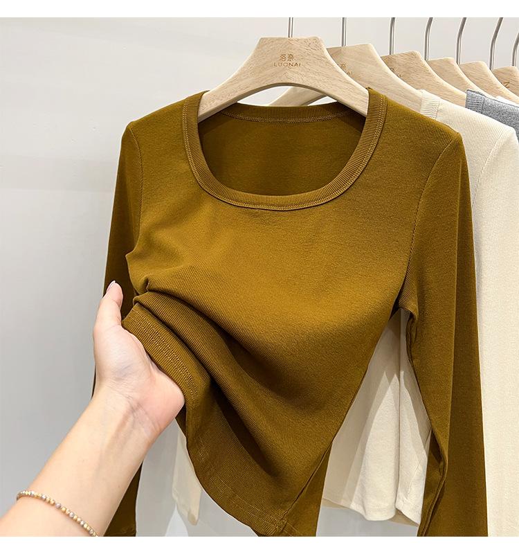 Playera Sexy de Cuello Cuadrado y Manga Larga 2023 Nuevo Diseño Slim Corta Interior Color Puro Camiseta Básica para Mujer