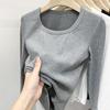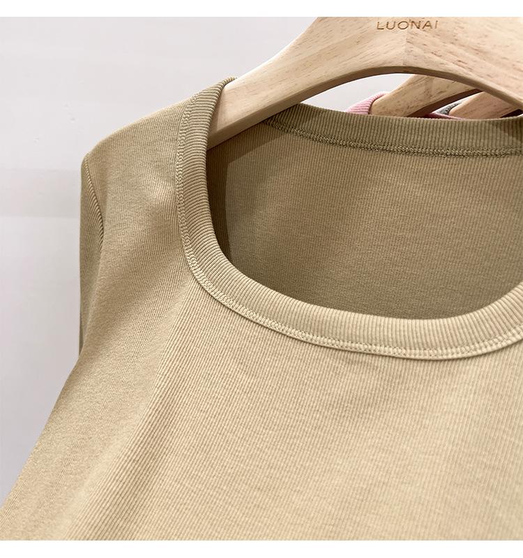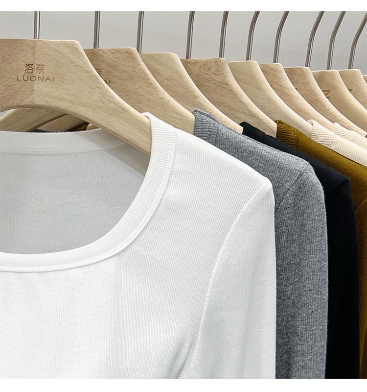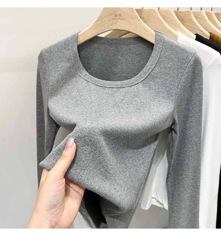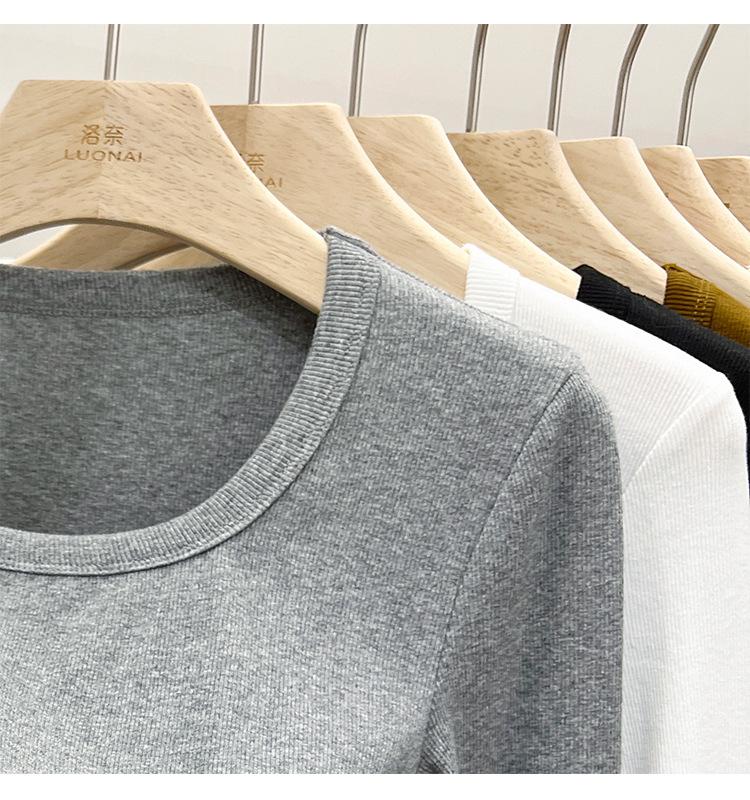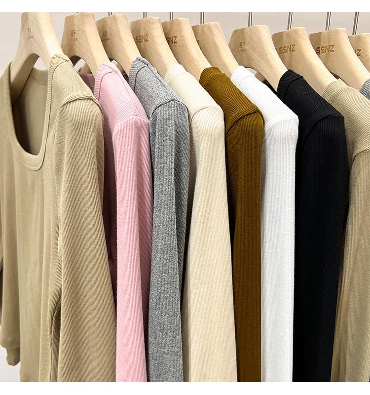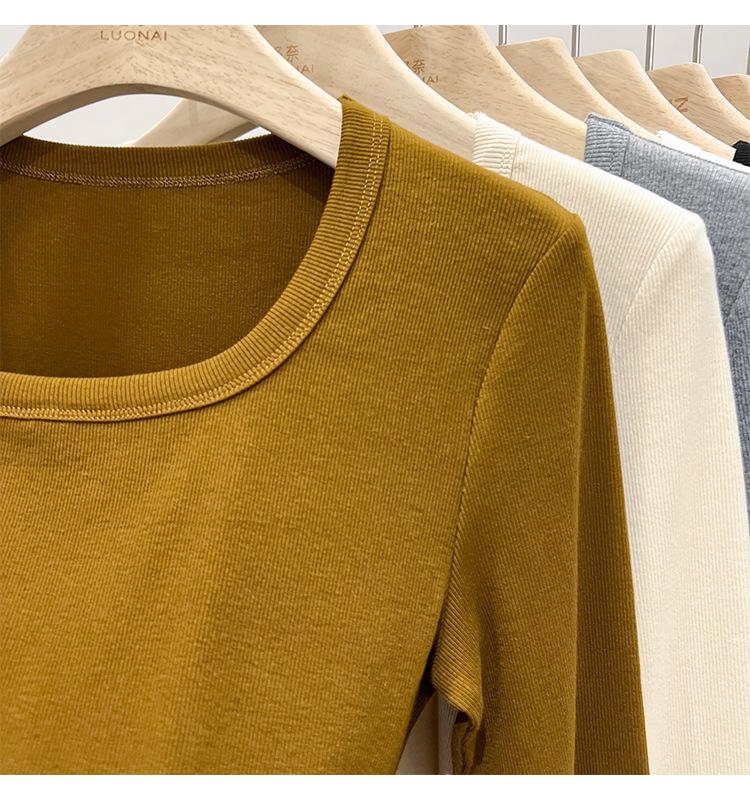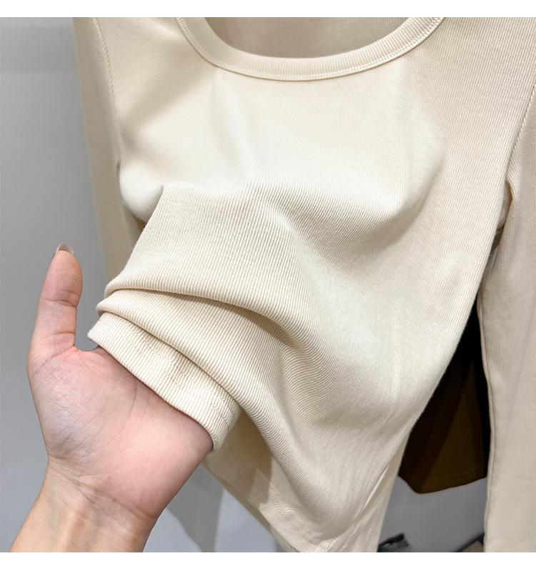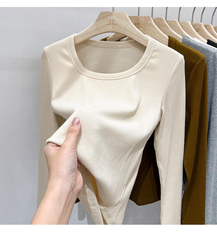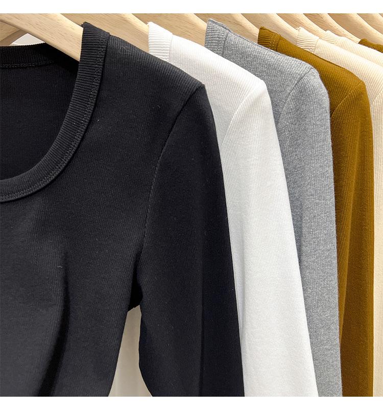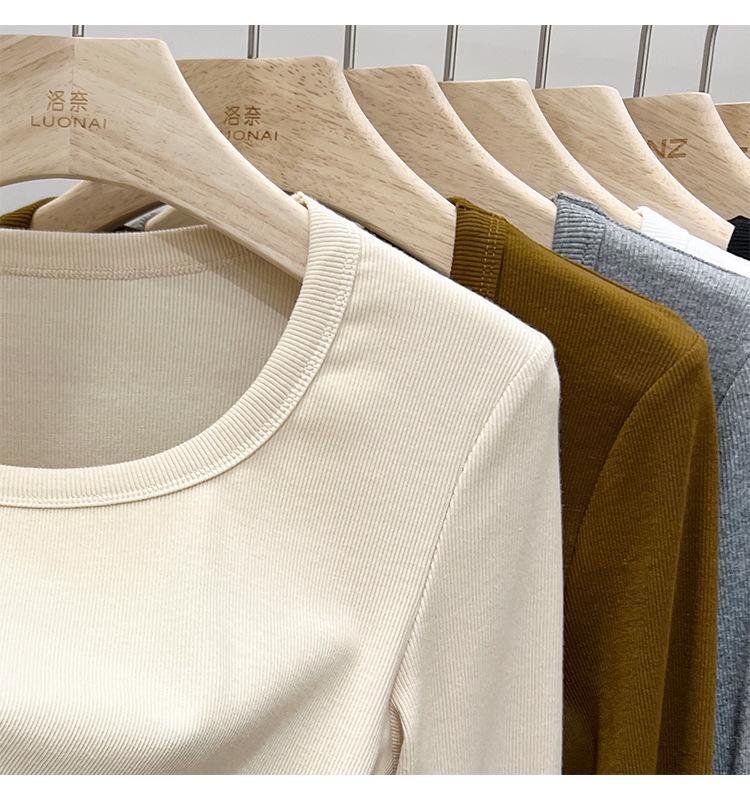 Playera Sexy de Cuello Cuadrado y Manga Larga 2023 Nuevo Diseño Slim Corta Interior Color Puro Camiseta Básica para Mujer