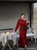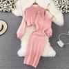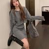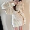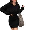 2025 Nuevo Otoño e Invierno Estilo Retro Sudadera de Punto Trenzado con Capucha Falda de Cadera Elástica de Cintura Alta Traje
