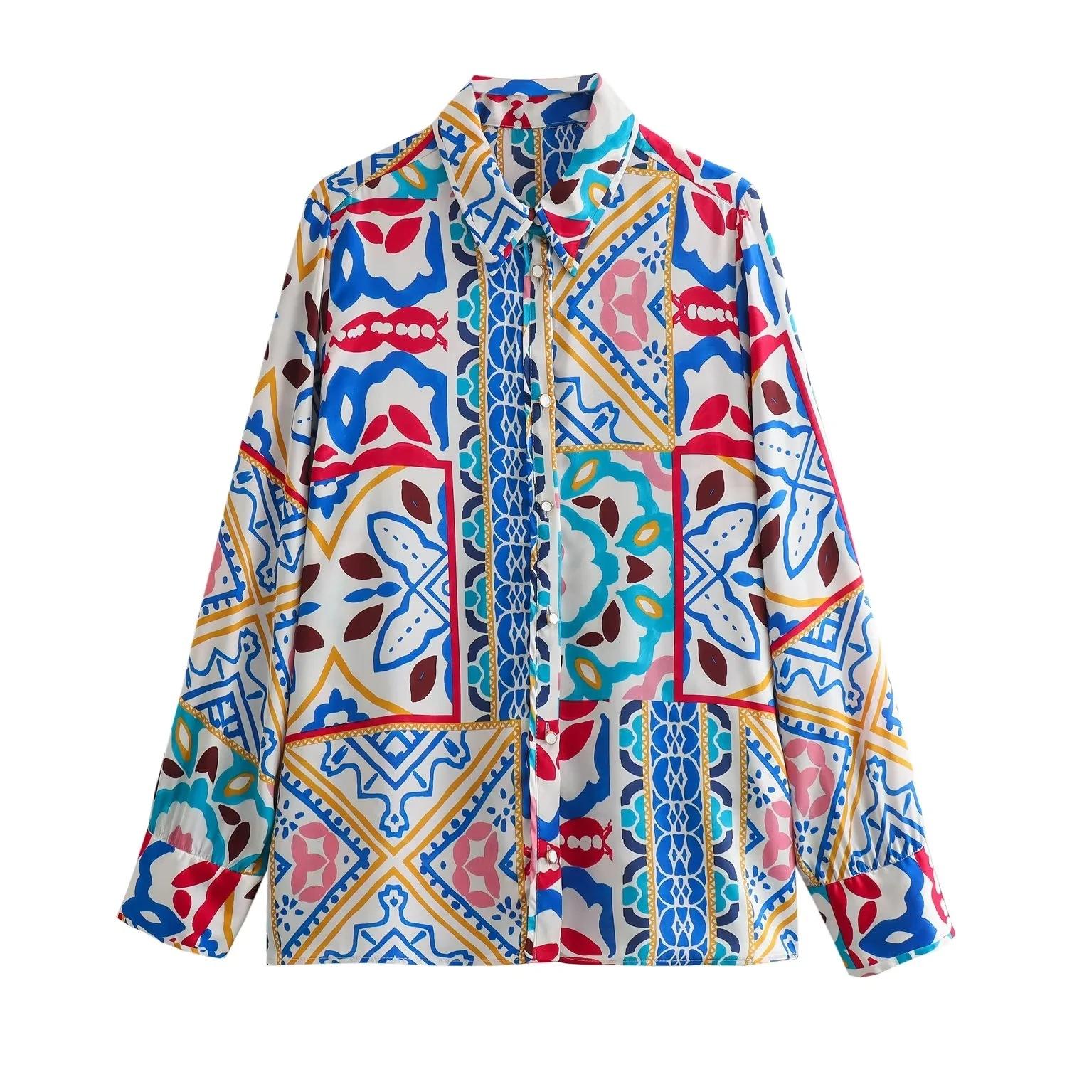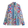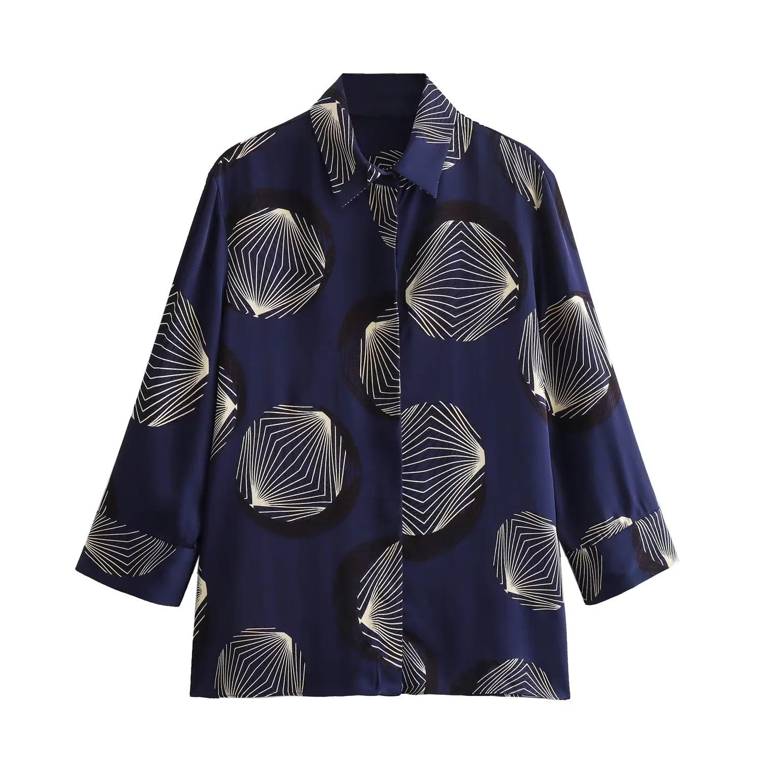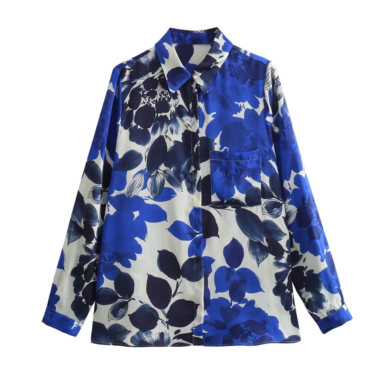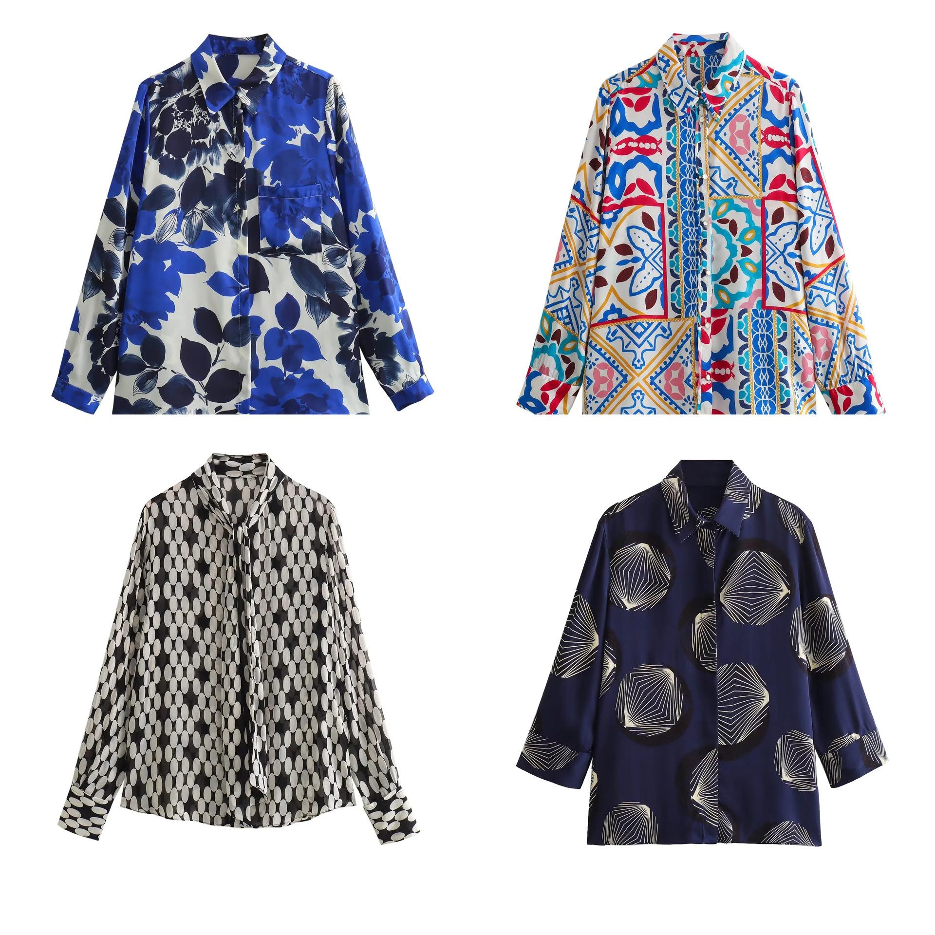 Estilo Europeo y Americano Exportación Ropa de Mujer al por Mayor 2024 Primavera Nueva Camisa Estampada Textura Satén de Seda Camisa de Manga Larga con Botonadura Simple