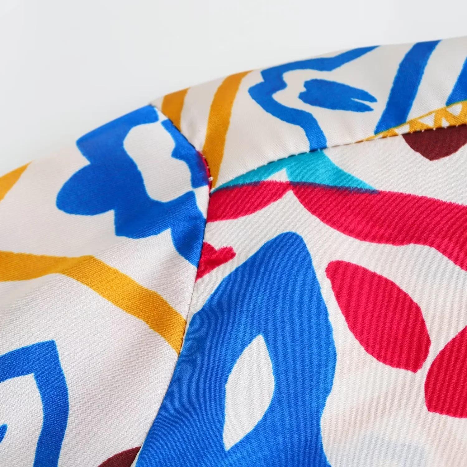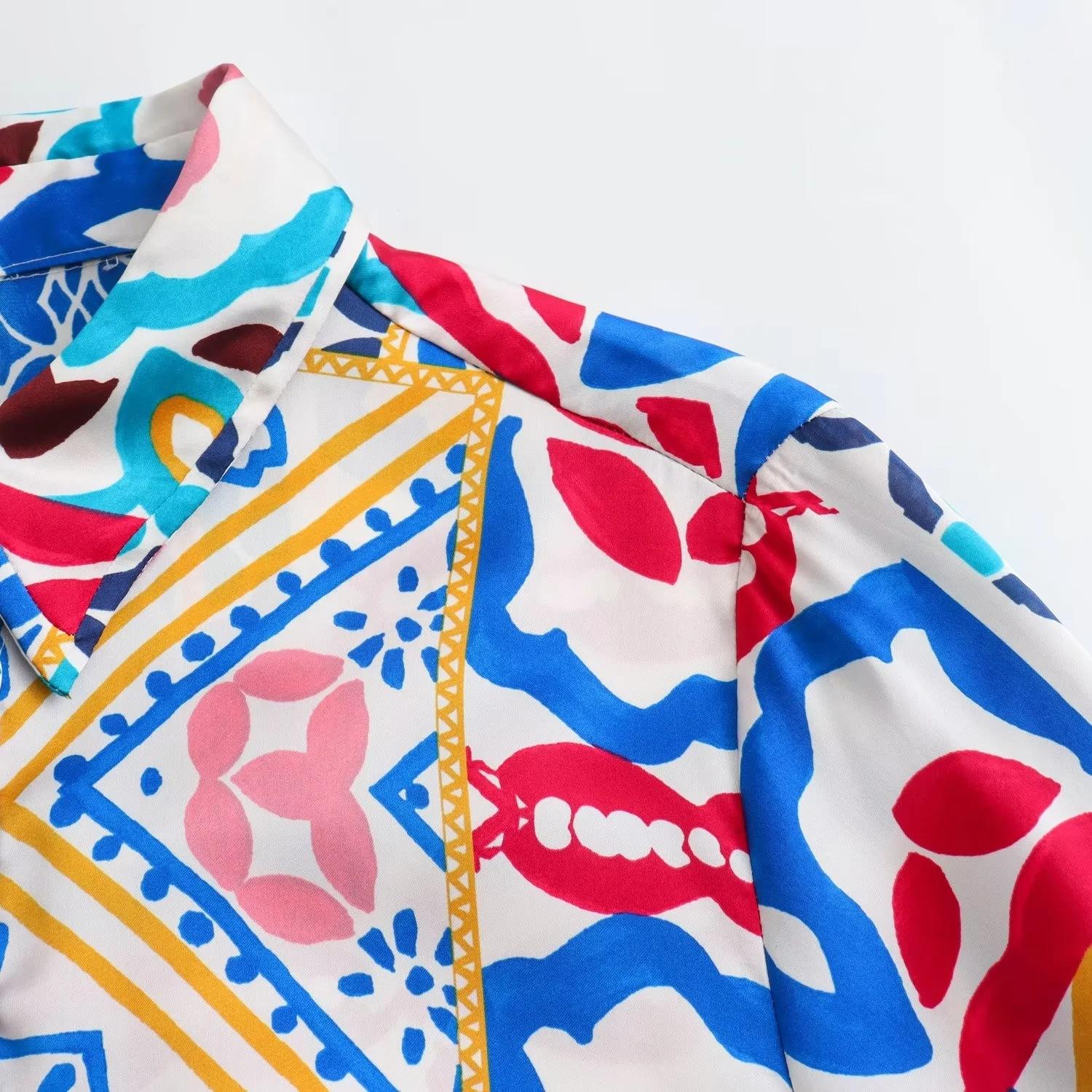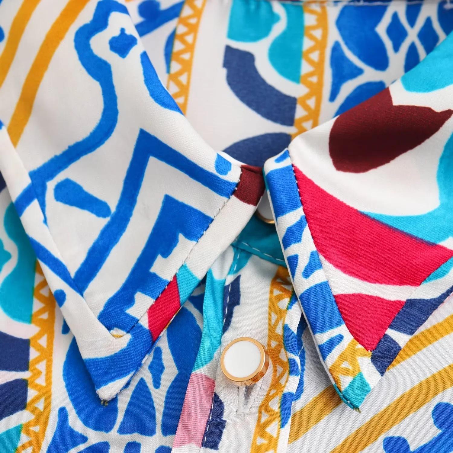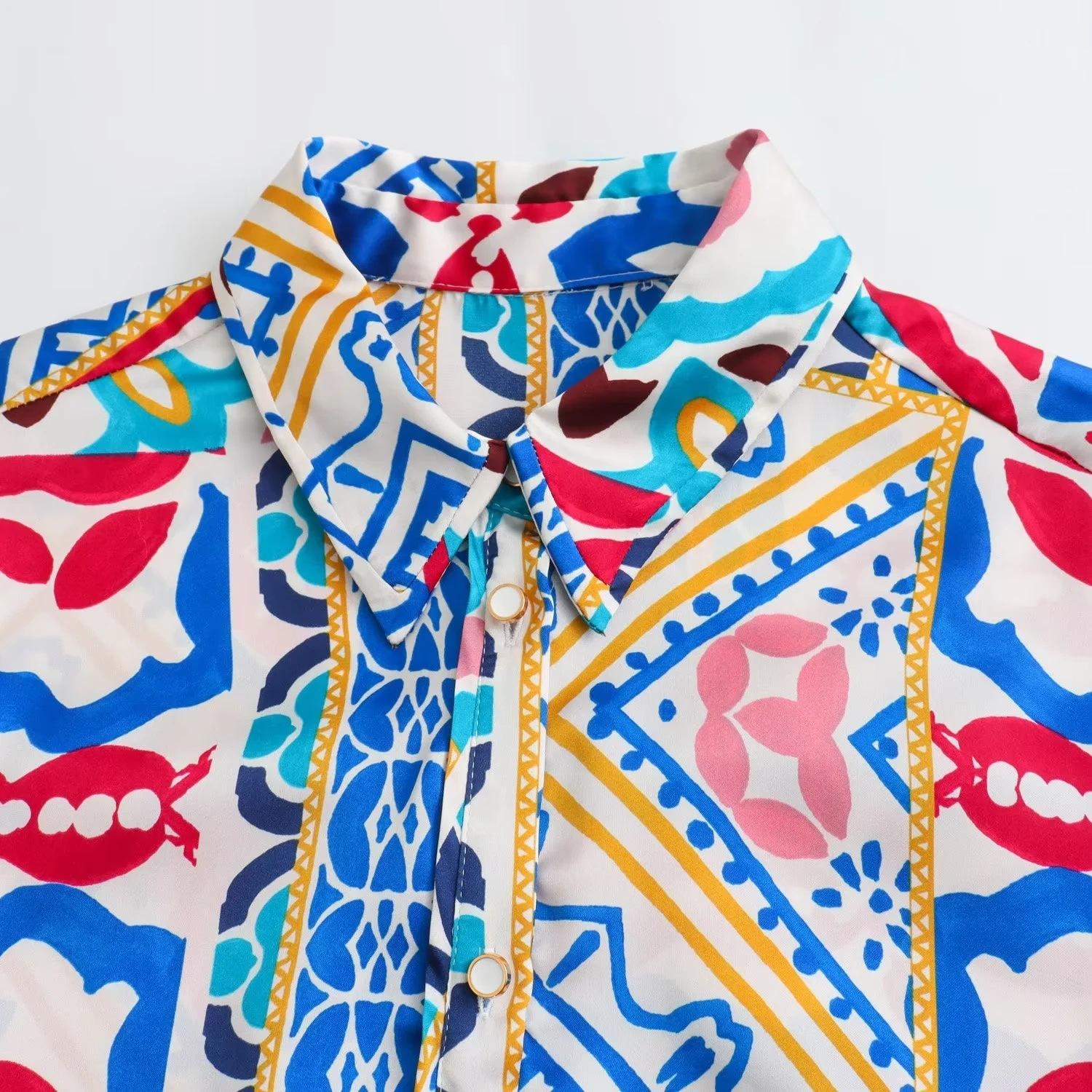 Estilo Europeo y Americano Exportación Ropa de Mujer al por Mayor 2024 Primavera Nueva Camisa Estampada Textura Satén de Seda Camisa de Manga Larga con Botonadura Simple