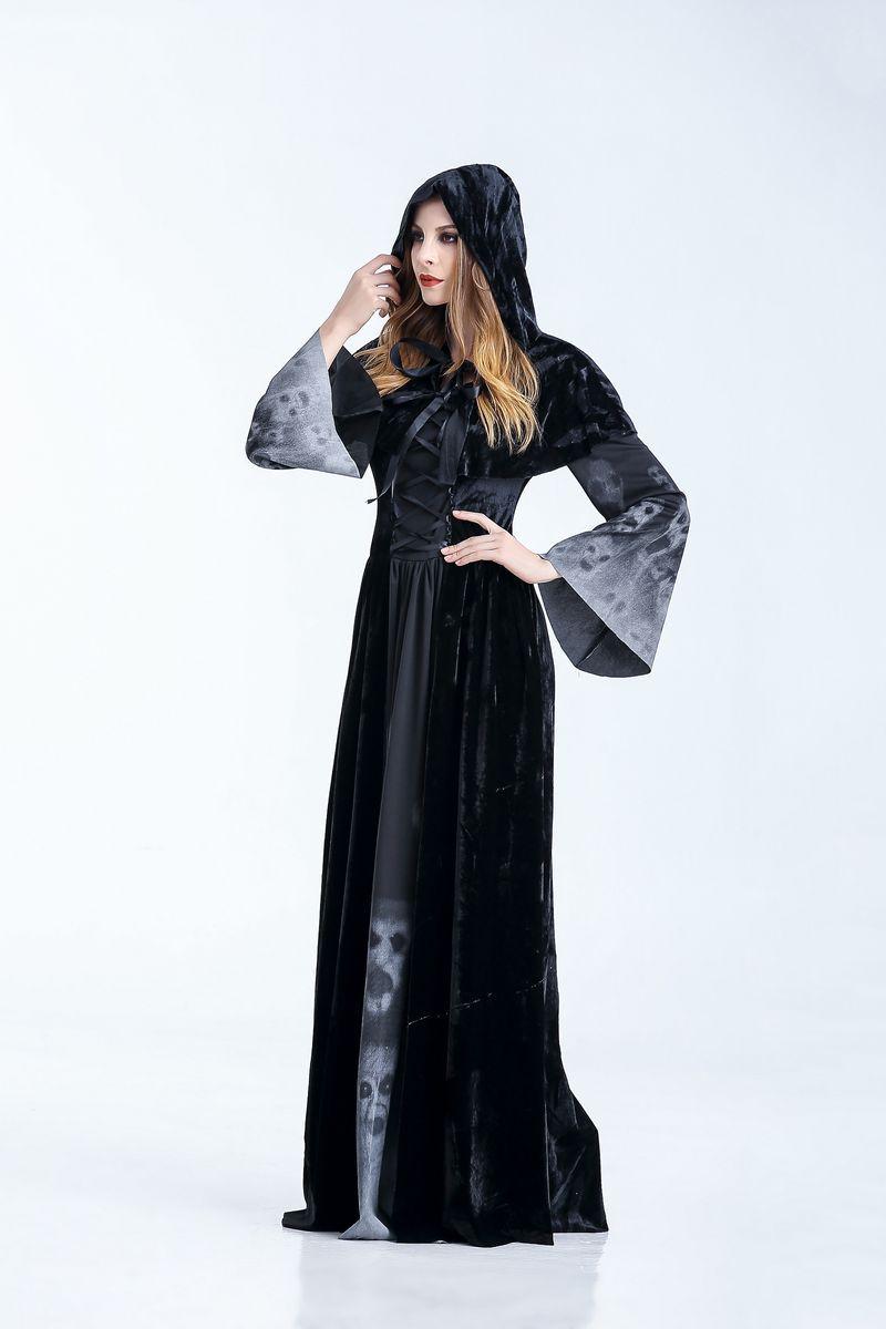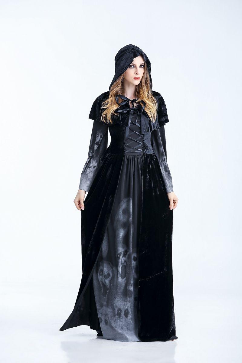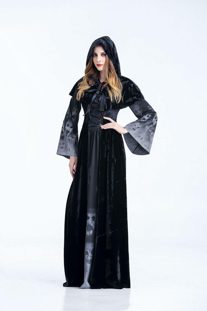 Halloween adulto femenino muerte vestido largo horror calavera vampiro disfraz de juego de roles disfraz de escenario de bar entrega