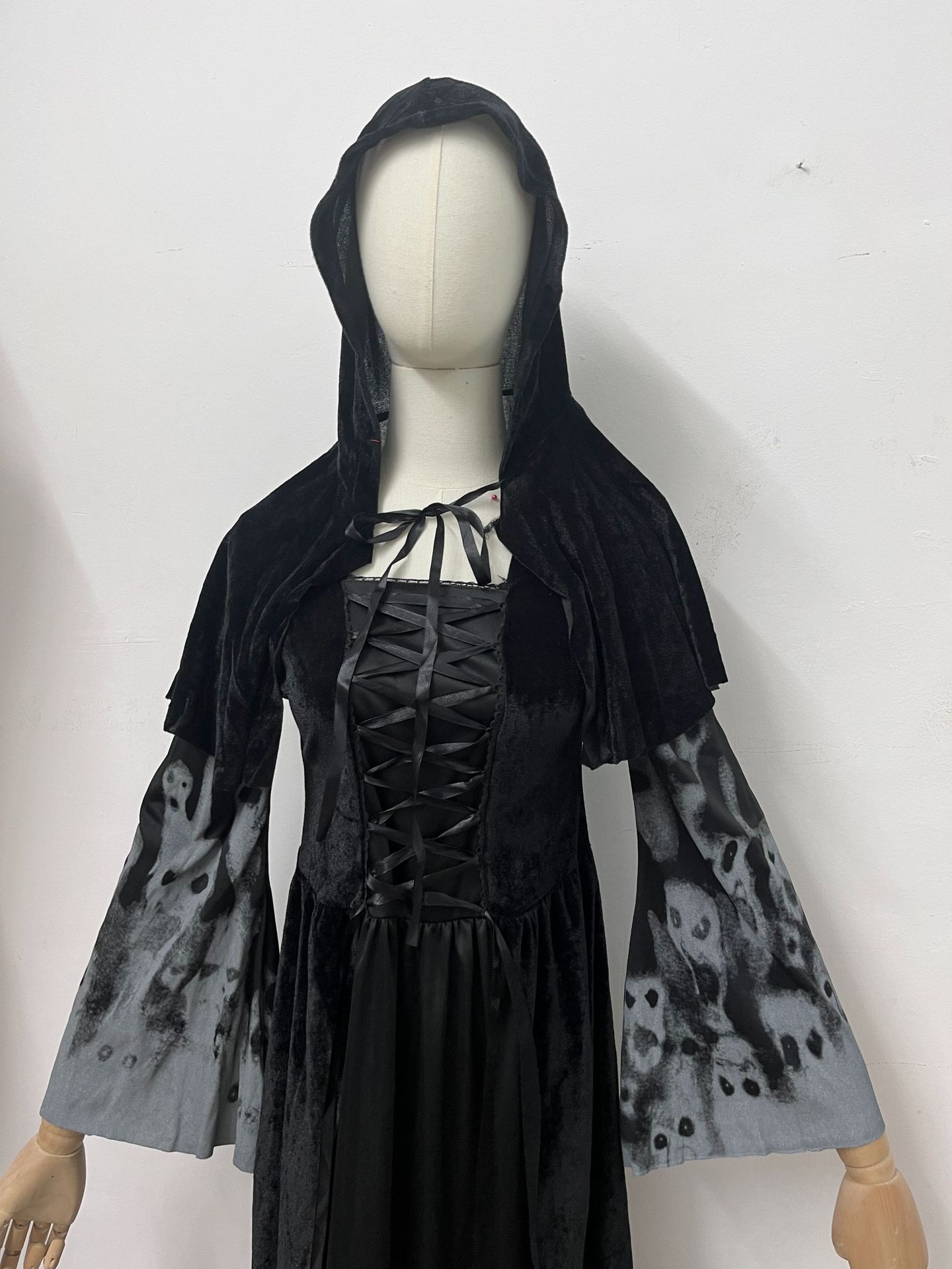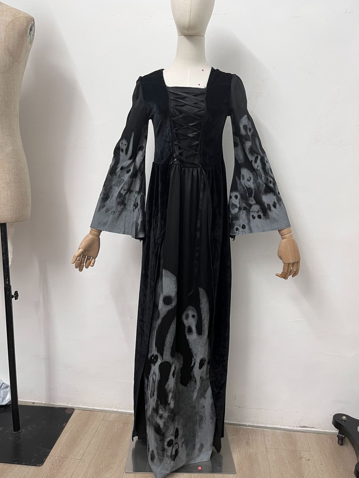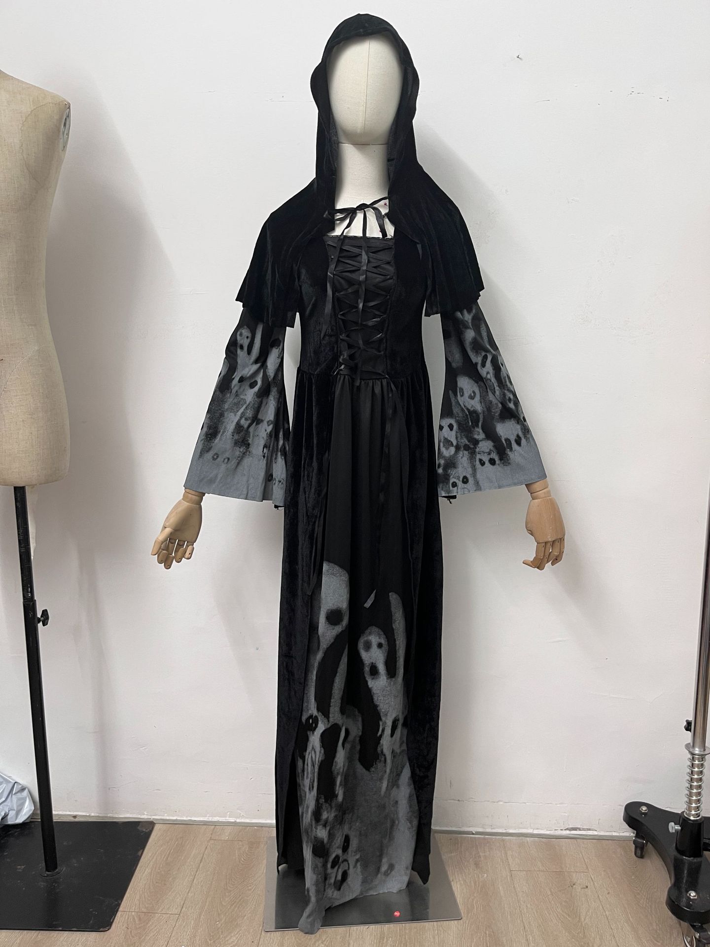 Halloween adulto femenino muerte vestido largo horror calavera vampiro disfraz de juego de roles disfraz de escenario de bar entrega