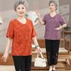 Trajes Nuevos de Primavera y Verano 2024, Ropa de Madre, Estampados Sueltos, Modernos, Camisetas con Solapa de Estilo Nacional para Personas de Mediana Edad y Mayores